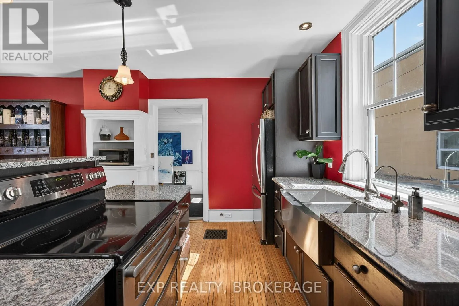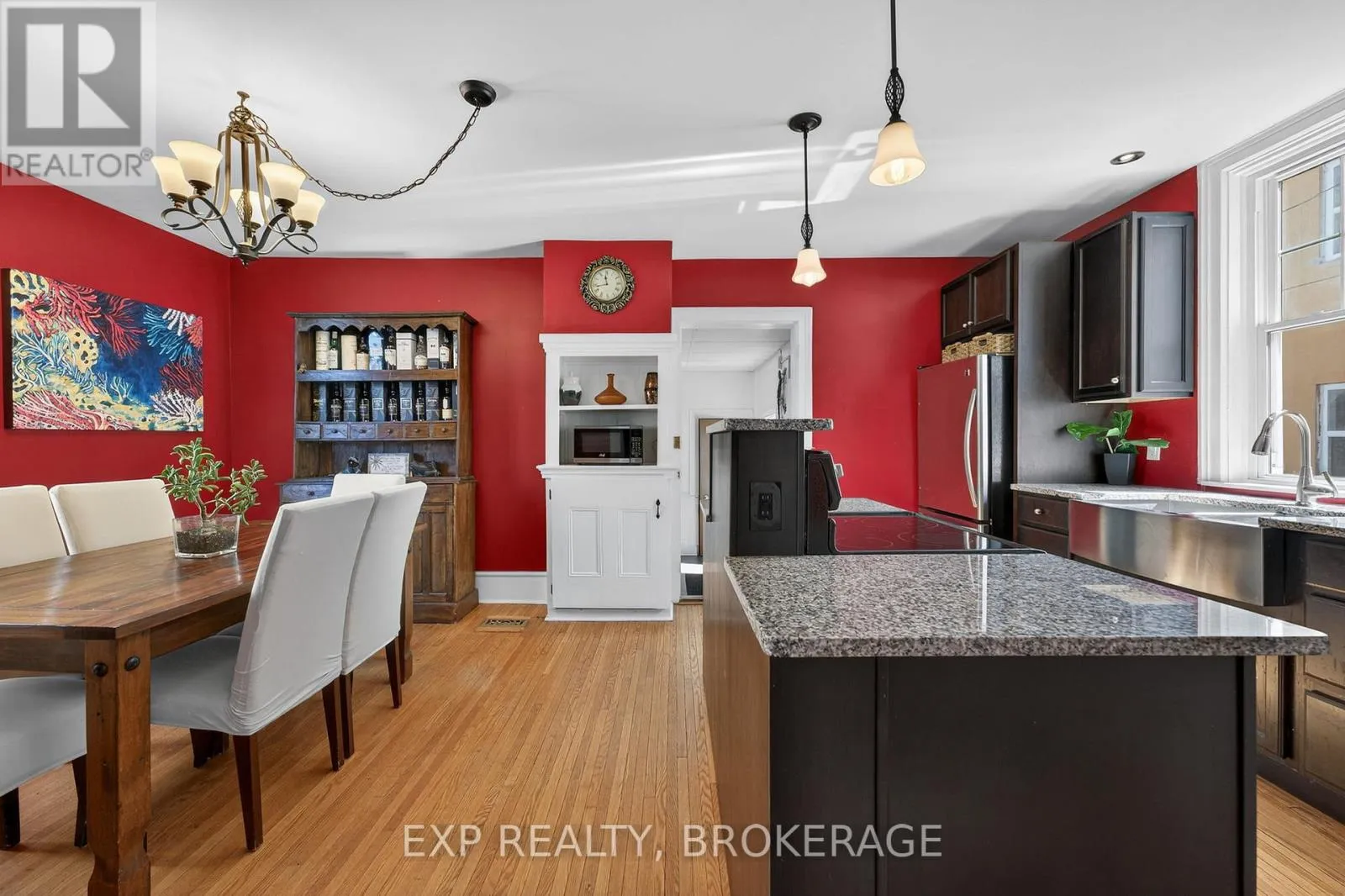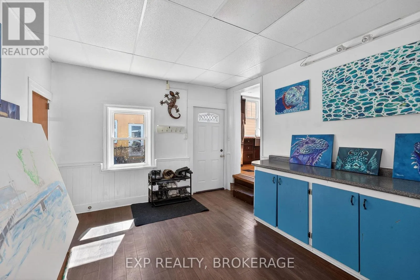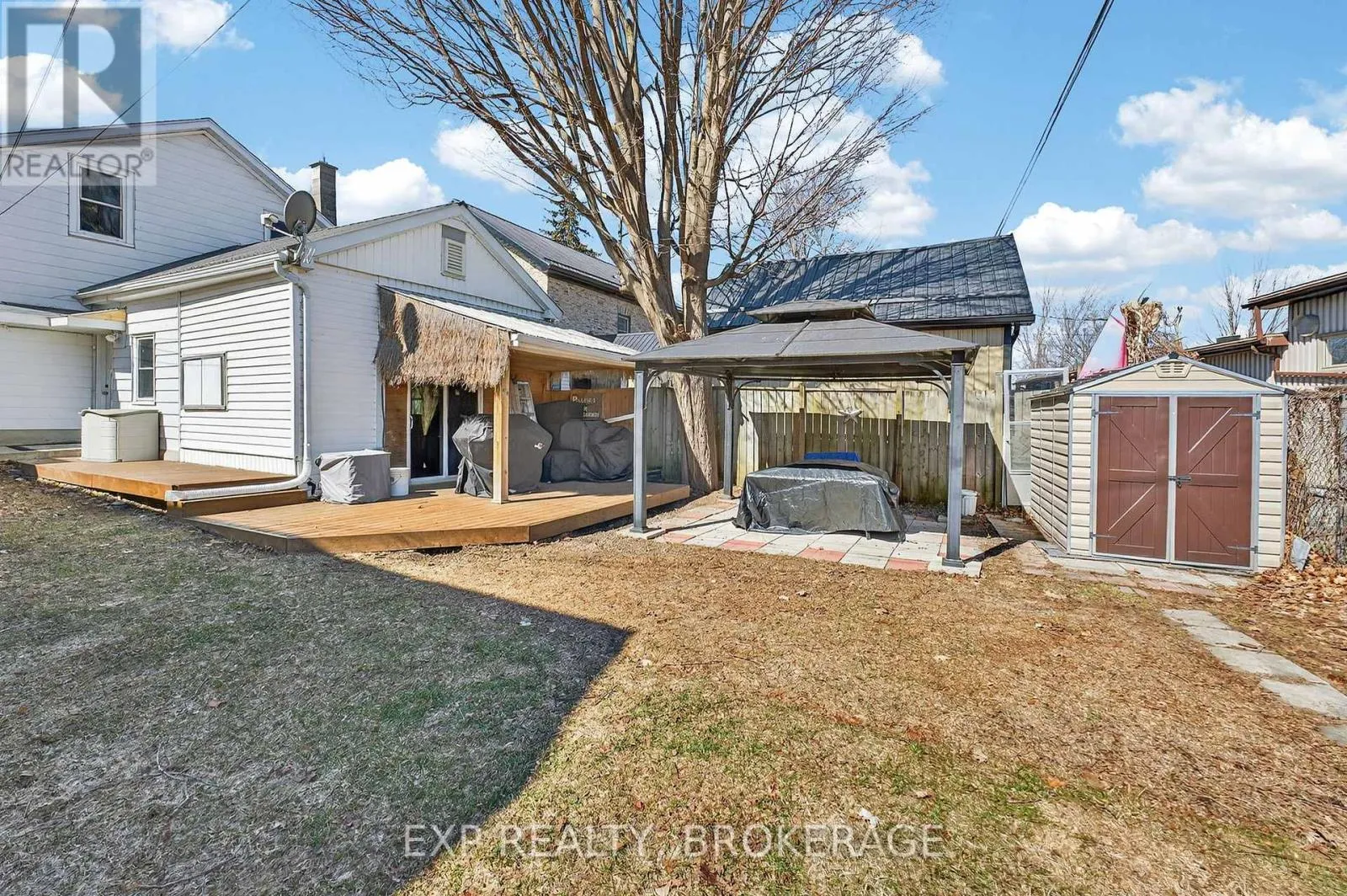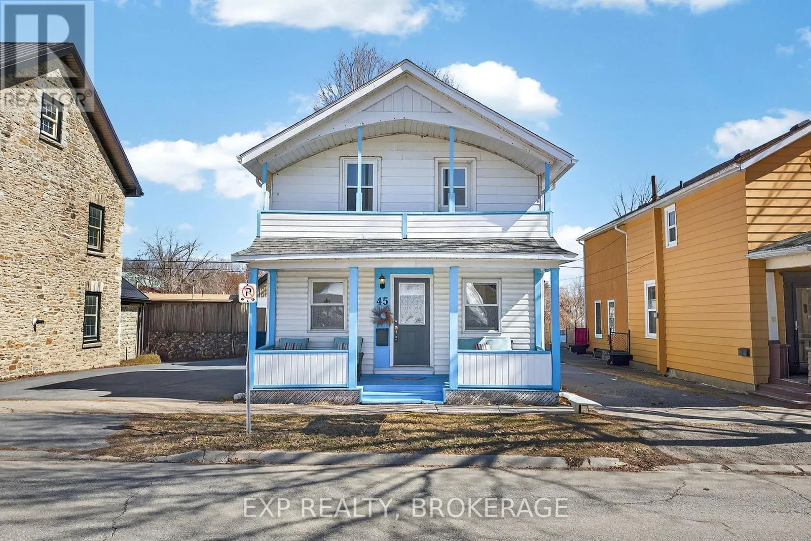 Cross Streets: King St. ** Directions: King St W to Main St. Welcome to 45 Main Street in the heart of Gananoque. A rare opportunity just steps from the scenic St. Lawrence River in the gateway to the Thousand Islands.This charming and versatile home welcomes you with a covered front porch and a bright, spacious main level featuring a generous living room, dining area, and an updated kitchen designed for both everyday living and entertaining. A flexible rear room with its own side entrance offers incredible potential-perfect for a home office, small business, or easily used as a main floor bedroom, along with a convenient 2-piece bath on the main floor. Just beyond, an additional bonus space with attic loft provides excellent flexibility for a workshop, hobby area, or extra storage-ideal for those needing room to create, build, or stay organized. Upstairs, you'll find three comfortable bedrooms and a full bathroom, offering ideal space for families or guests.Outside, enjoy a yard complete with a patio and deck-perfect for entertaining or relaxing. The unbeatable walkable location provides easy access to the marina, parks, shops, restaurants, and local attractions.Set in one of Eastern Ontario's most desirable waterfront communities, known for its vibrant lifestyle and proximity to major centres, this is your chance to own a character-filled home in a high-demand location. CR zoning allows for a variety of residential or commercial uses. A standout opportunity in an exceptional setting. (id:27476)