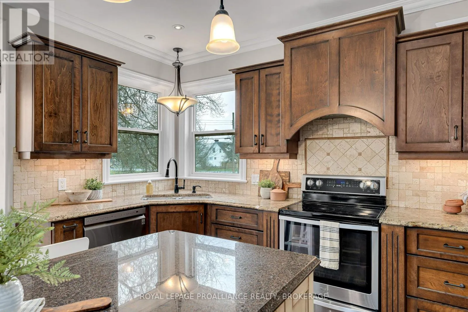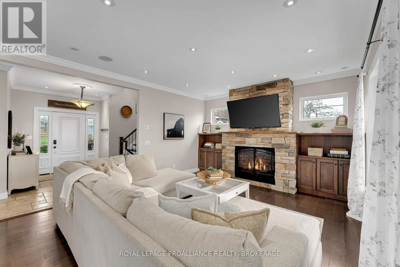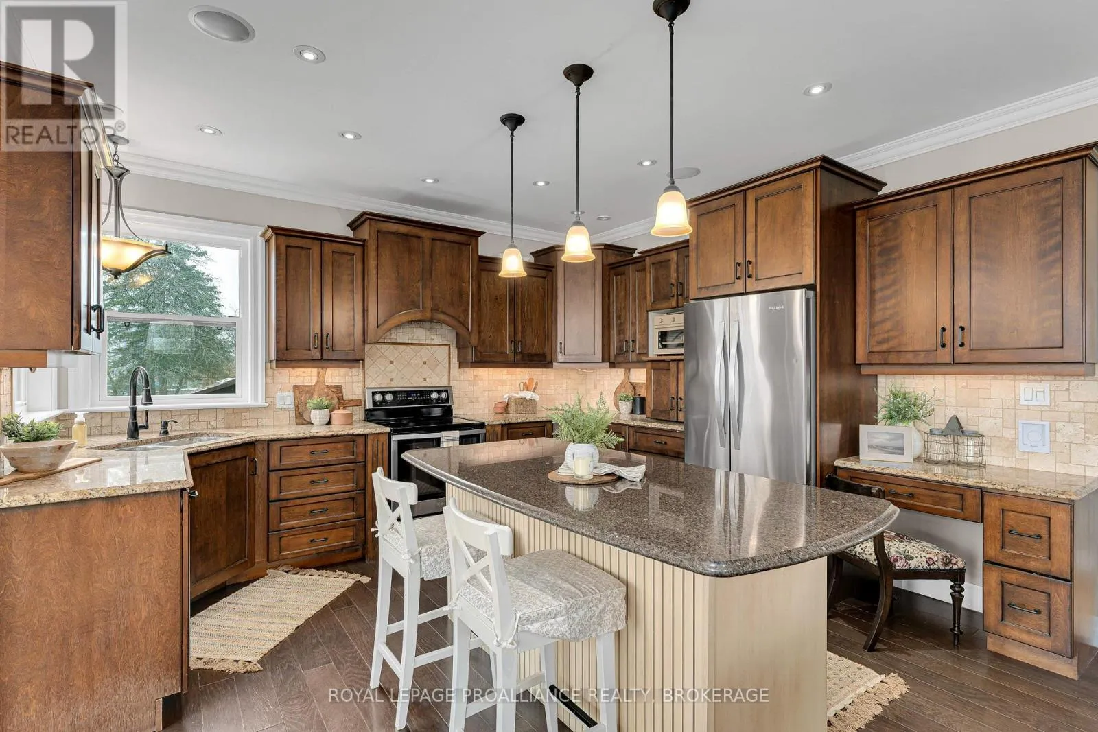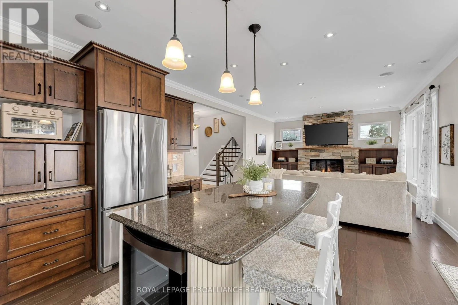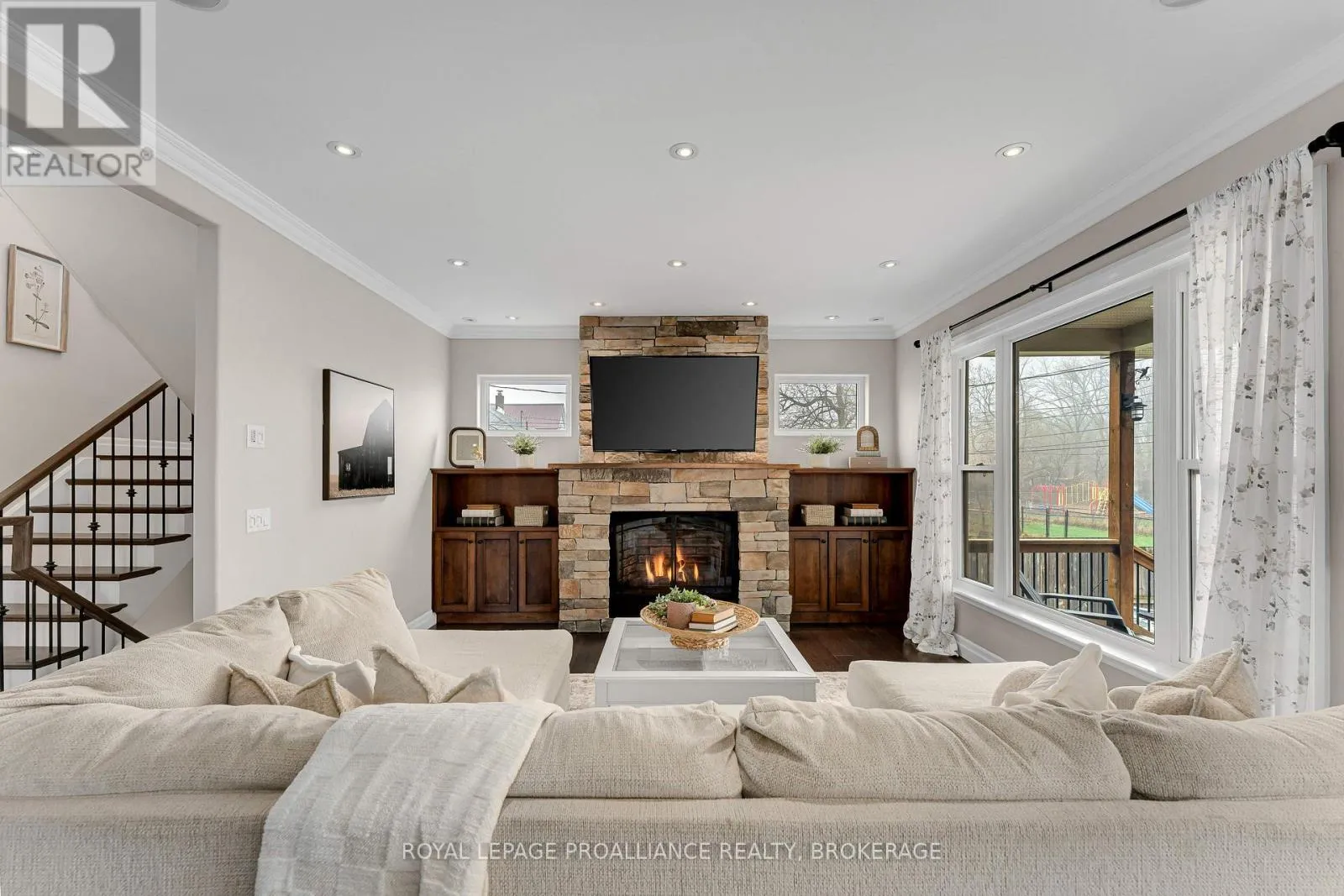 Cross Streets: William St N, Charles St N. ** Directions: From Stone St N/County Road 32 turn left onto Charles St N then turn left onto North St. Welcome to a truly one-of-a-kind home in the heart of Gananoque. Built in 2008 and thoughtfully designed for comfort and efficiency, this spacious detached property sits on a generous 60 x120 ft lot backing directly onto a school-an ideal setting for families. Fully finished on all three levels, this impressive home offers 3+1 bedrooms and 3.5 bathrooms, along with a double attached garage. The carpet-free interior features a bright, open-concept layout highlighted by a chef's kitchen with a central island (granite counters) that flows seamlessly into the inviting living room, complete with a cozy gas fireplace and custom built-ins. Upstairs, the spacious primary suite serves as a private retreat, featuring a walk-in closet and a luxurious ensuite with an oversized, spa-like walk-in shower. The fully finished basement expands your living space with a large rec room, wet bar, additional bedroom, and full bathroom-perfect for entertaining, guests or in-law capability. Designed for efficiency and comfort, the home has an ICF foundation and in-floor radiant heating. This system offers separate zones for all three levels as well as the garage-yes, even the garage features heated radiant floors. Hardwired surround sound throughout the home adds to the elevated living experience. Step outside to enjoy the beautifully designed outdoor space, which features a covered deck leading to the hot tub and a fully fenced backyard-perfect for relaxing or entertaining. With all appliances included, this exceptional family home is truly move-in ready. (id:27476)