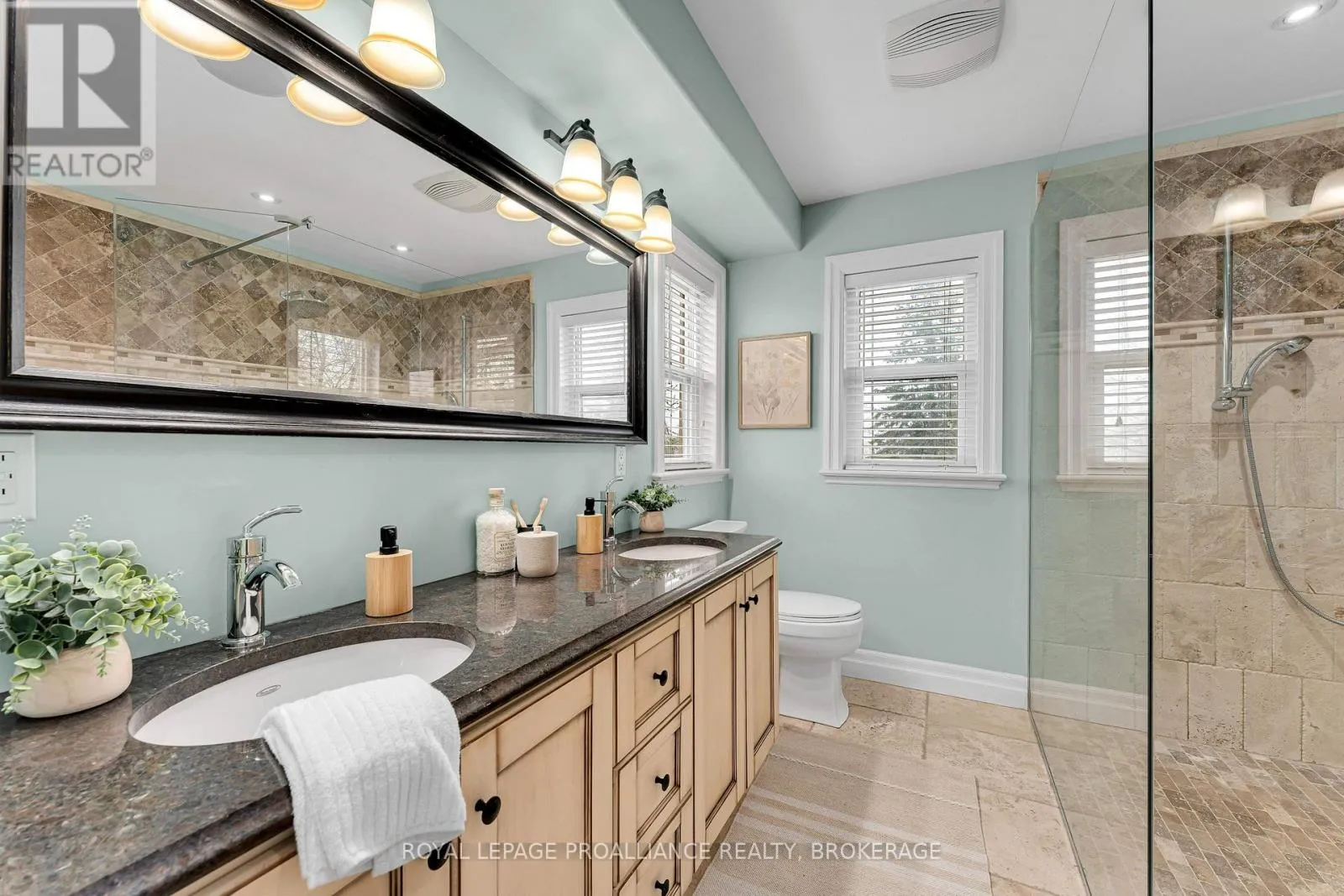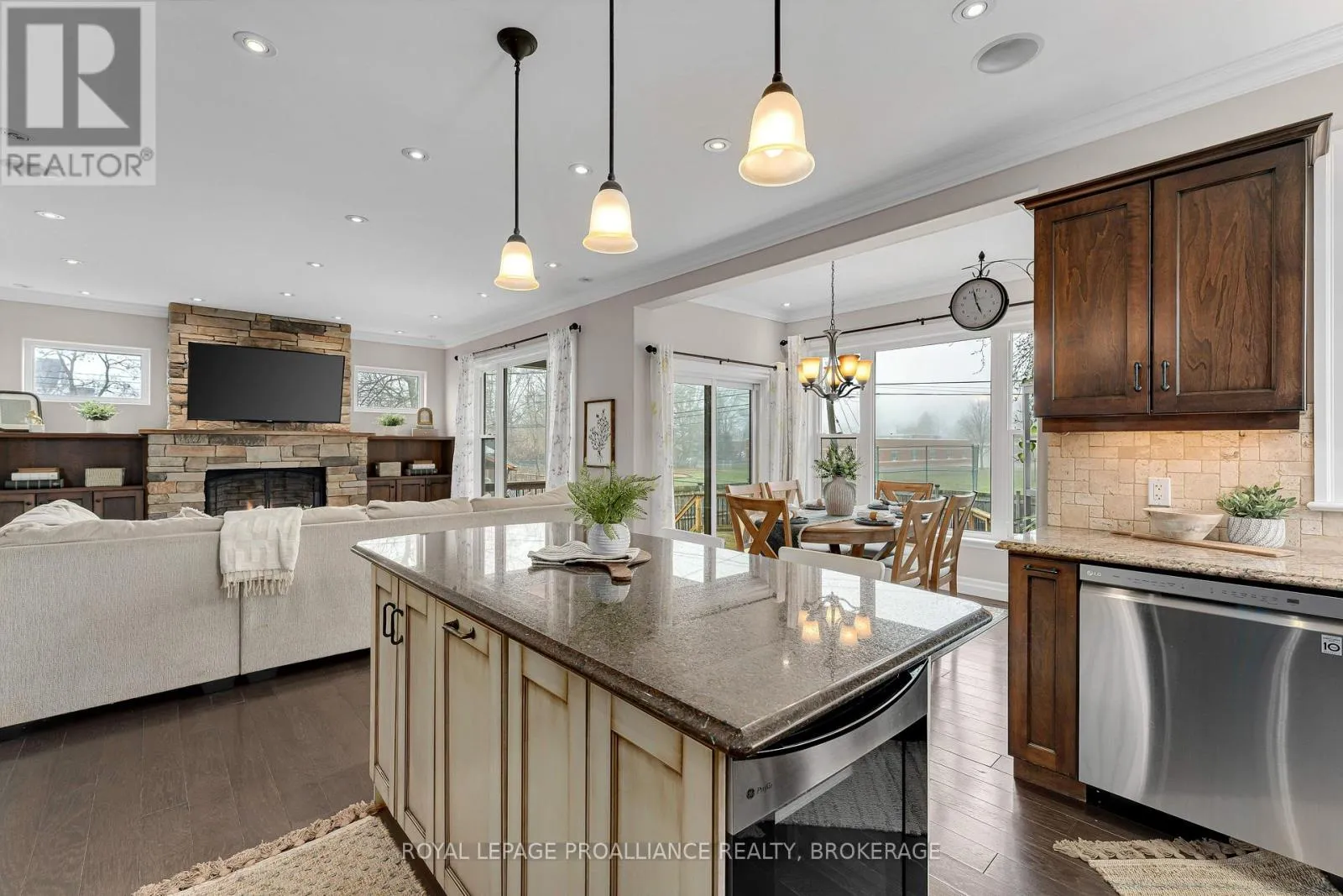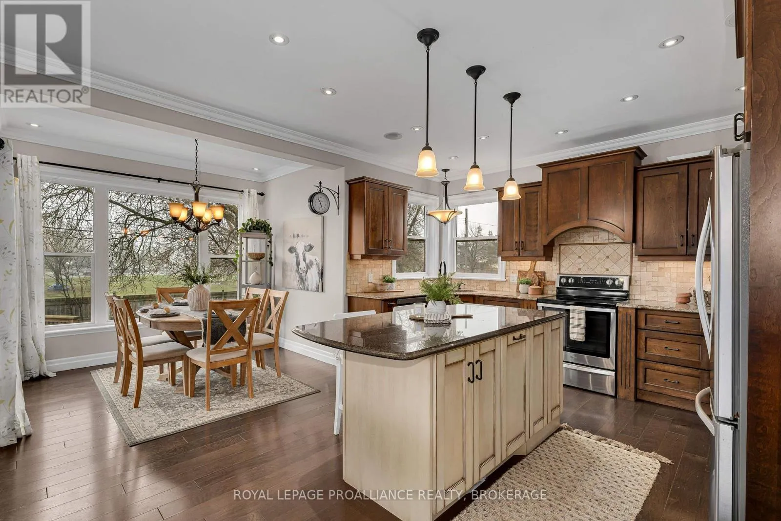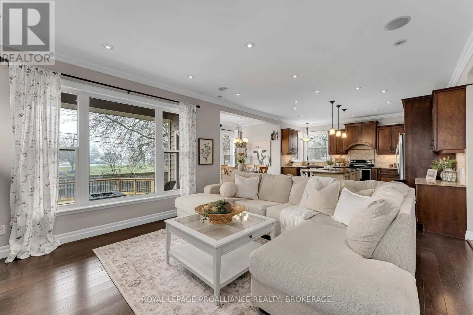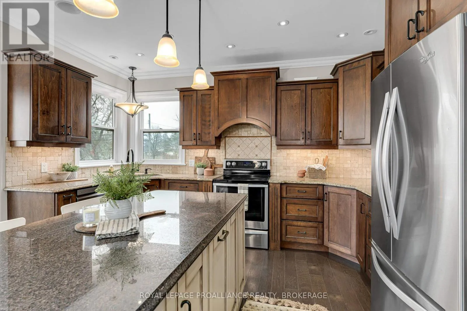 Cross Streets: William St N, Charles St N. ** Directions: From Stone St N/County Road 32 turn left onto Charles St N then turn left onto North St. Welcome to a truly one-of-a-kind home in the heart of Gananoque. Built in 2008 and thoughtfully designed for comfort and efficiency, this spacious detached property sits on a generous 60 x120 ft lot backing directly onto a school-an ideal setting for families. Fully finished on all three levels, this impressive home offers 3+1 bedrooms and 3.5 bathrooms, along with a double attached garage. The carpet-free interior features a bright, open-concept layout highlighted by a chef's kitchen with a central island (granite counters) that flows seamlessly into the inviting living room, complete with a cozy gas fireplace and custom built-ins. Upstairs, the spacious primary suite serves as a private retreat, featuring a walk-in closet and a luxurious ensuite with an oversized, spa-like walk-in shower. The fully finished basement expands your living space with a large rec room, wet bar, additional bedroom, and full bathroom-perfect for entertaining, guests or in-law capability. Designed for efficiency and comfort, the home has an ICF foundation and in-floor radiant heating. This system offers separate zones for all three levels as well as the garage-yes, even the garage features heated radiant floors. Hardwired surround sound throughout the home adds to the elevated living experience. Step outside to enjoy the beautifully designed outdoor space, which features a covered deck leading to the hot tub and a fully fenced backyard-perfect for relaxing or entertaining. With all appliances included, this exceptional family home is truly move-in ready. (id:27476)