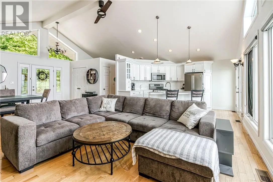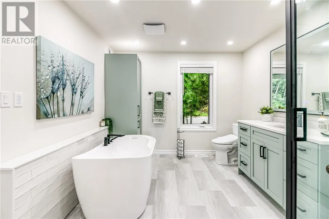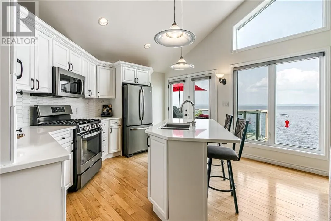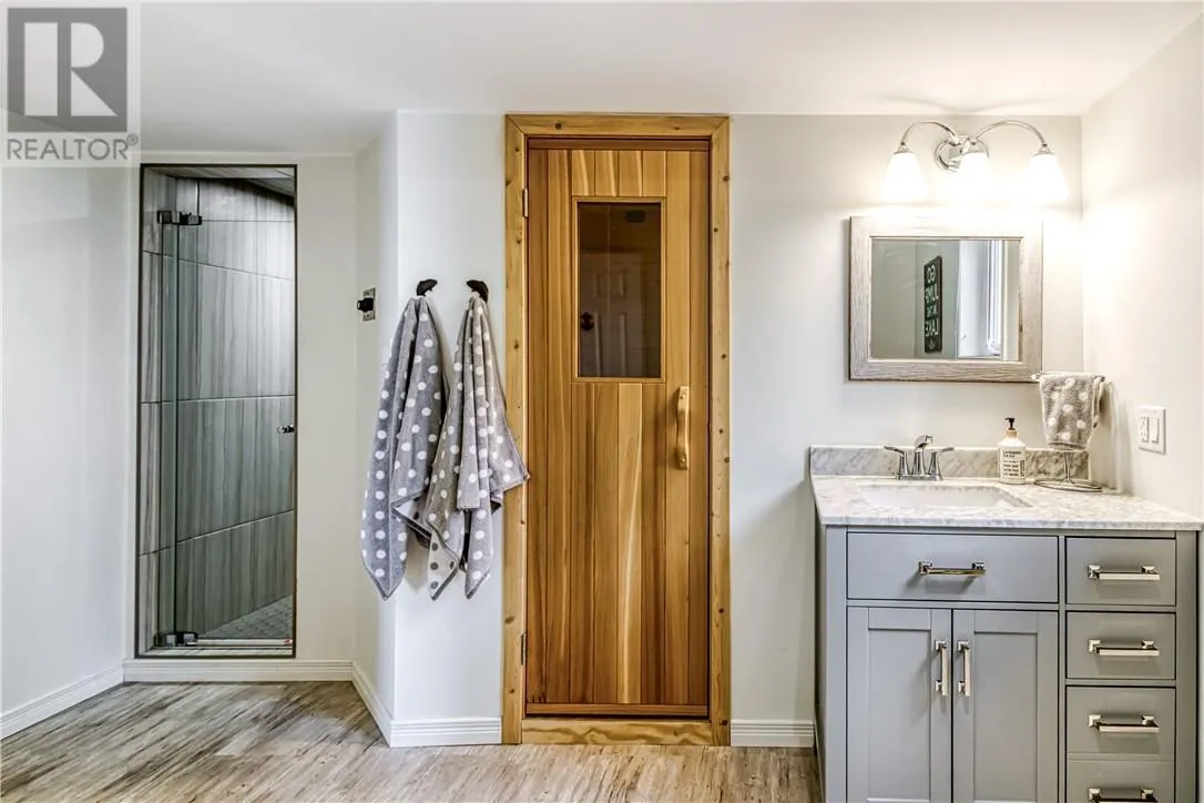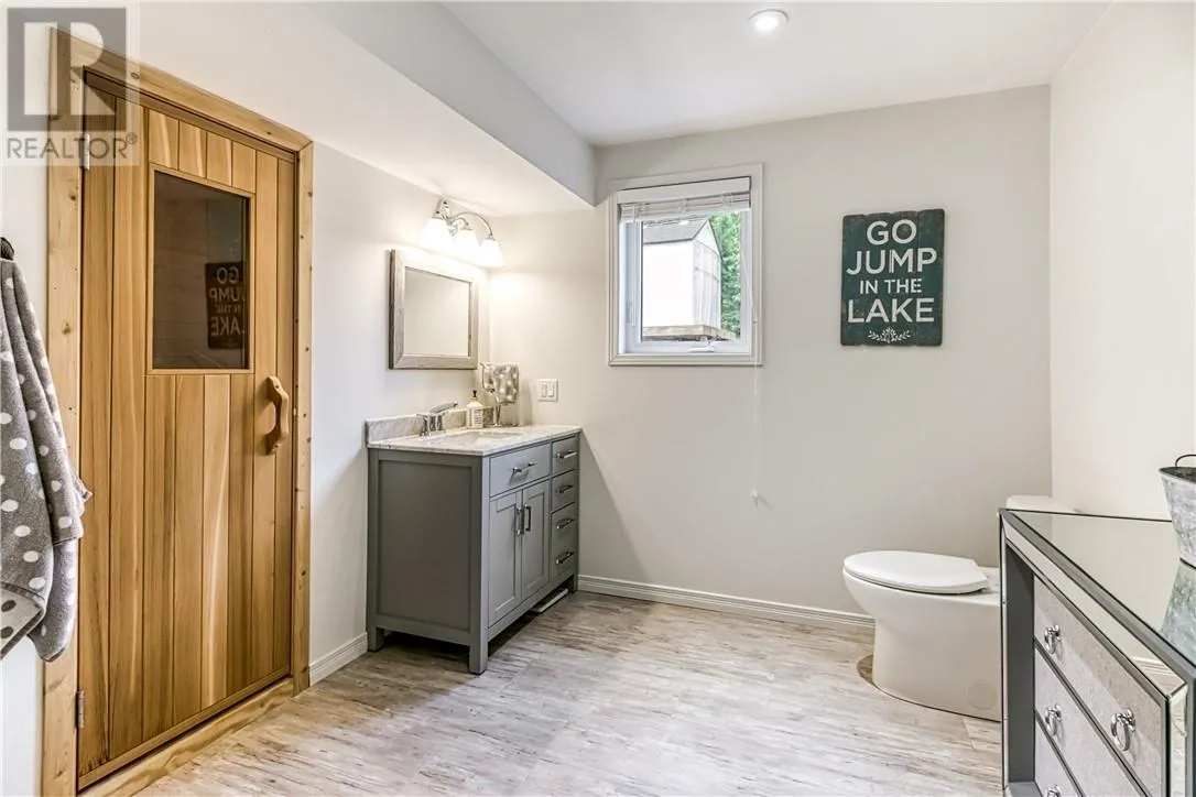 Welcome to this custom-built 1400 square foot bungalow on beautiful Lake Wanapitei. This waterfront gem boasts a true open-concept layout with soaring cathedral ceilings and breathtaking lake views from the moment you walk in. The main level great room is a space you will never want to leave. The primary bedroom has a generous walk in closet and also a walkout to the deck. The main level bathroom has been meticulously updated and feels like a spa get away. The fully finished walkout lake level offers an additional 1,400 square feet of living space, which features 2 lake view bedrooms, in-floor heating, a sauna, and two storage spaces suitable for an additional bedroom or office. With 2 new bathrooms, a new dock, a $7,000 water system, new (2025) in lake water pump, new 25-year shingles in 2022 and 120 feet of pristine frontage, this turnkey home is ready for your family to enjoy. Additional highlights include wood and luxury vinyl flooring, a double-deep garage with woodstove, paved driveway that could fit 6 cars, school buses to the door and close proximity to the airportâmaking it as convenient as it is stunning. Go to this link for a 3D tour: https://my.matterport.com/show/?m=YfQeexb8oXP (id:27476)