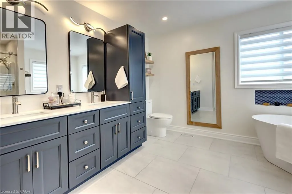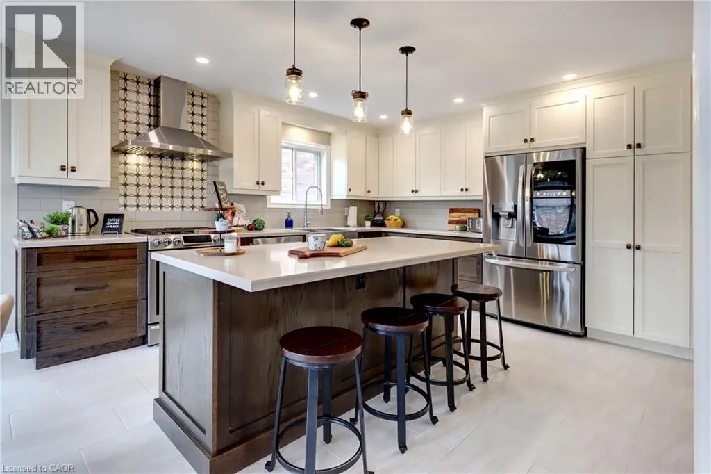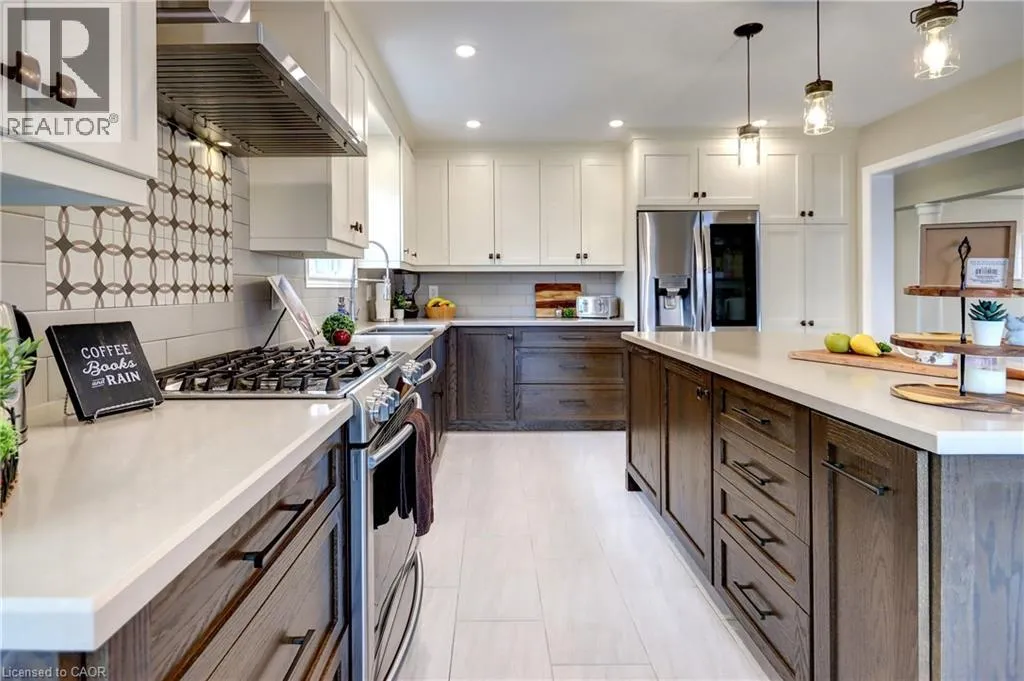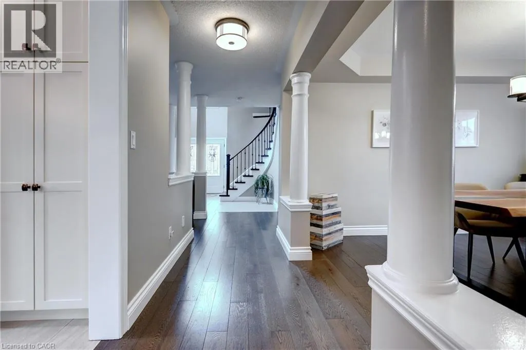 HWY 7 TO TRAFALGAR RD TO BERTON BLVD Renovated and Move in Home in the Trafalgar Country neighbourhood is close to trails, schools, parks and major roads to highways. The GO Station is less than 10 mins away. This 4+1 Bed, 3+1 Bath has over 4,000 sf of living space. The grand foyer is 2 storeys high with tons of natural light streaming through the upper windows. The main floor has separate formal living/dining space as well as a spacious family room. The fantastic kitchen has taller uppers, crown moulding, quartz counter tops, built in appliances, pantry and island that seats 4 comfortably. The main floor has gleaming hardwood and the second floor has been updated with brand new laminate. Design features of this home are the neutral colours, the modern lighting, 9 ceilings on the main floor, spa-like ensuite and main baths and gas fireplace. The open concept basement is fully finished and has a 2-pc bath and guest room. The vacant property down the street is slated for a Catholic School. Parking for 4 cars. (id:27476)