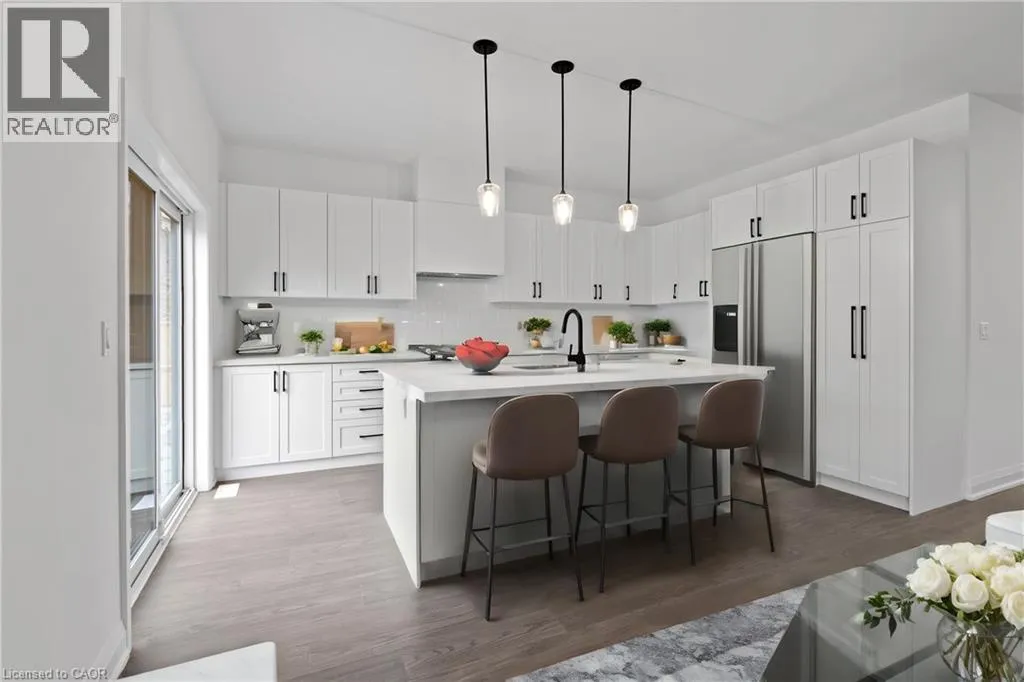 Mountainview Rd N to Santa Barbara Step into refined living with this beautifully built bungalow townhome, offering 1,716 square feet of thoughtfully designed space in an exclusive enclave of just nine residences. Completed in 2023, this end-unit home blends modern farmhouse elegance with premium finishes, including quartz countertops, engineered hardwood flooring, and soaring 9-foot ceilings throughout. Designed to impress and built for versatility, the layout features three spacious bedrooms plus a generous office or formal dining roomâperfect for professionals working from home, downsizers seeking single-level luxury, or families who love to entertain. The walk-out design adds natural light and seamless indoor-outdoor flow, enhancing the home's livability. Nestled in a peaceful pocket just a short stroll from the historic village of Glen Williams, you'll enjoy the charm of artisan shops and riverside cafes, with convenient access to top-rated schools, shopping, dining, and recreation centres. Whether you're seeking tranquility, community, or connectivity, this location delivers. *Some photos have been virtually staged. (id:27476)