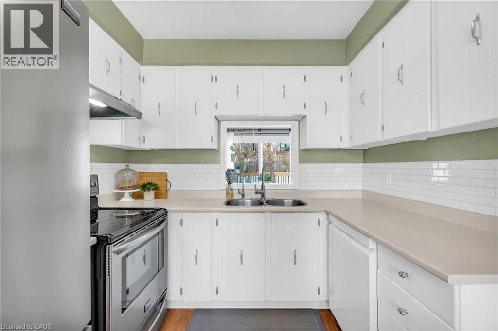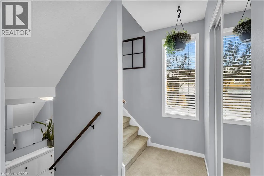 River Drive & Lynden Circle Welcome to this beautifully maintained END UNIT 3 bedroom, 2 bathroom condo townhome in a quiet, family-friendly neighbourhood. With neighbours on only one side, this home offers added privacy and a well-designed layout that balances comfort and function. The bright living and dining area is the heart of the home, perfect for everyday living and easy entertaining. The kitchen features a thoughtful pass-through to the dining area, making it ideal for hosting guests or enjoying everyday meals with ease. Both bathrooms have been tastefully renovated with modern, timeless finishes. Upstairs, three spacious bedrooms provide flexibility for families, guests, or a home office. The finished lower level adds exceptional versatility, perfect for a playroom, games room, hobby space, or even an additional bedroom, the choice is yours. The gardens are a true highlight, come spring, they burst into colour with beautiful perennials, creating a gardener's dream setting. A large deck offers the perfect space to enjoy warm summer evenings or a quiet morning coffee. Ideally situated near the Georgetown GO Station, this home offers effortless commuting and convenient access to schools and everyday essentials, including grocery stores, restaurants, and local services. Complete with exclusive parking and situated in a desirable community, this inviting townhome is ready to welcome you home. (id:27476)