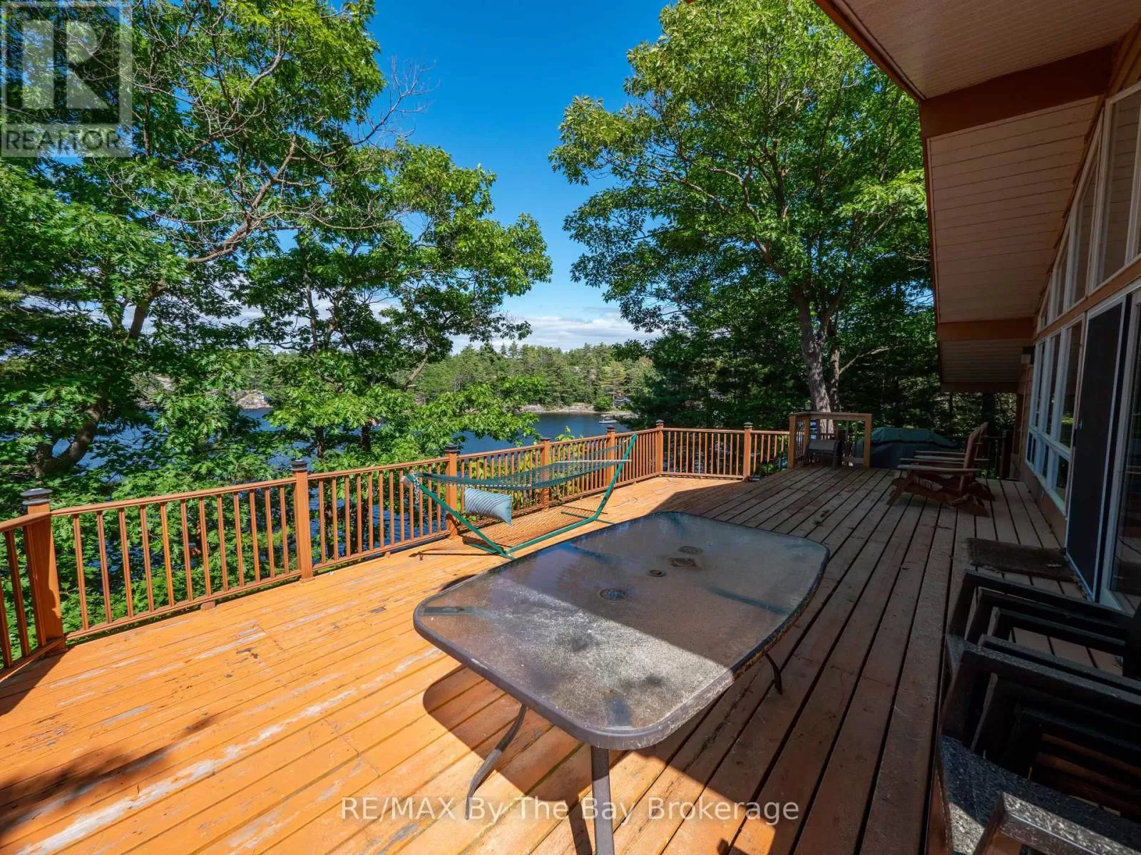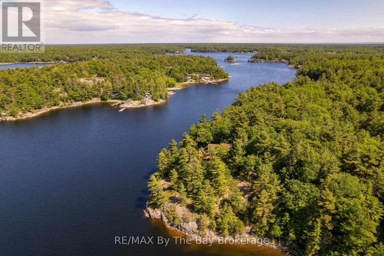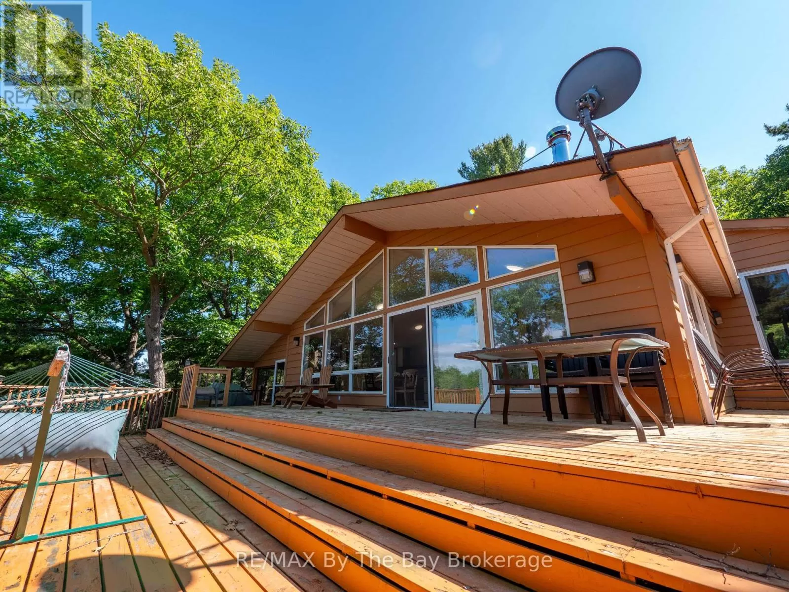 By boat to North side of Bone Island/Island 1810 Escape to your exclusive waterfront sanctuary on Bone Island. This boat-access-only retreat is nestled on a spacious 3 -acre lot with 400 feet of mesmerizing water frontage, offering you the ultimate getaway from the hustle and bustle of daily life. Enjoy relaxing on the wrap-around deck and immerse yourself in the essence of cottage life. Gather around the firepit for cozy evenings under the stars, or retreat to the enclosed patio for added privacy. Inside, the charm continues with interior windows that frame picturesque water views, while a fireplace in the main living area adds the perfect warming touch. With 3 bedrooms and 2 full bathrooms, this cottage offers ample space for hosting and entertaining. Located just a 20-minute boat ride from Honey Harbour, this private property provides the perfect blend of seclusion and accessibility. (id:27476)