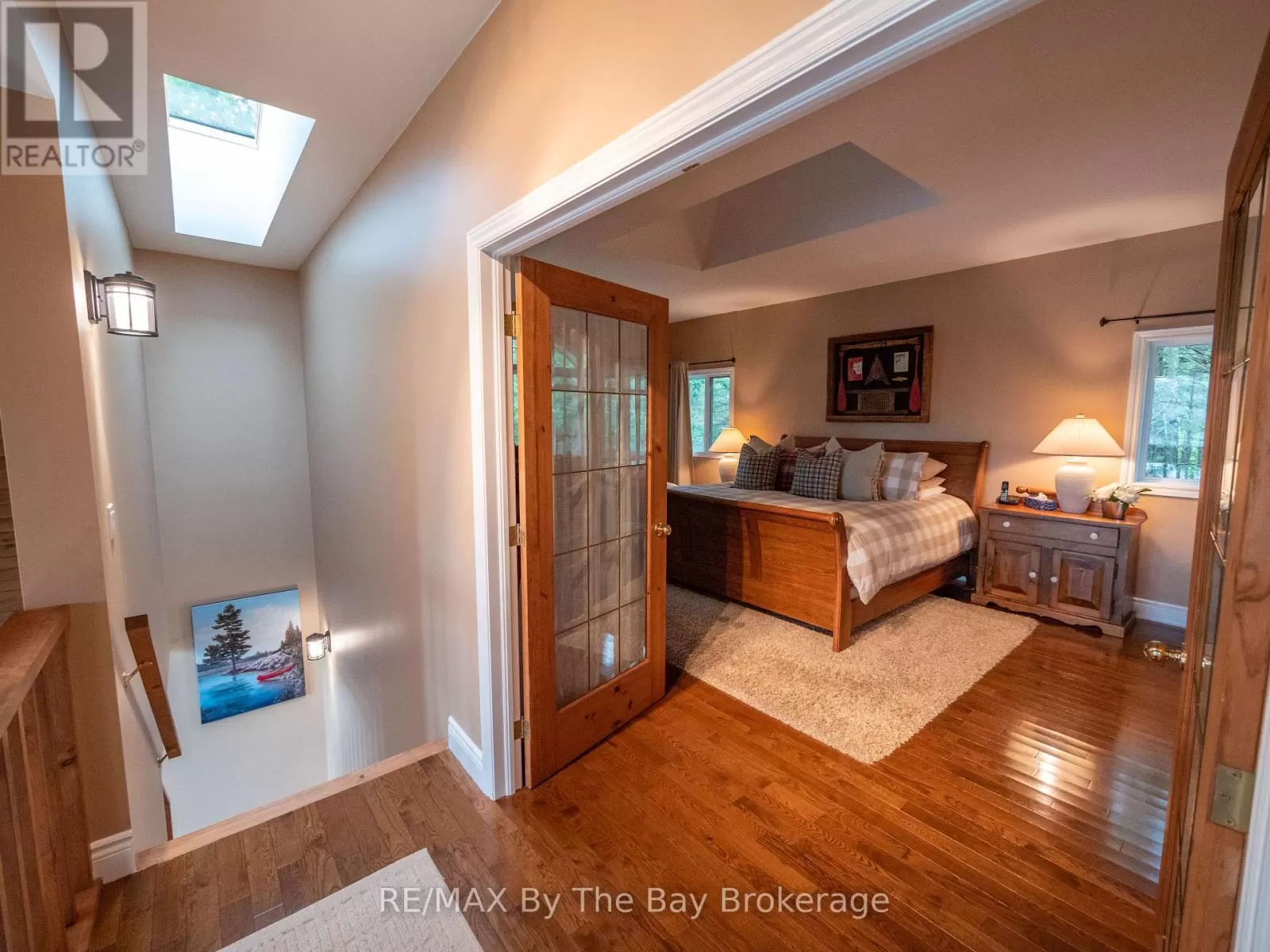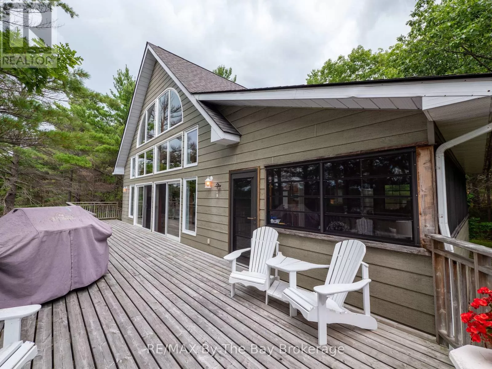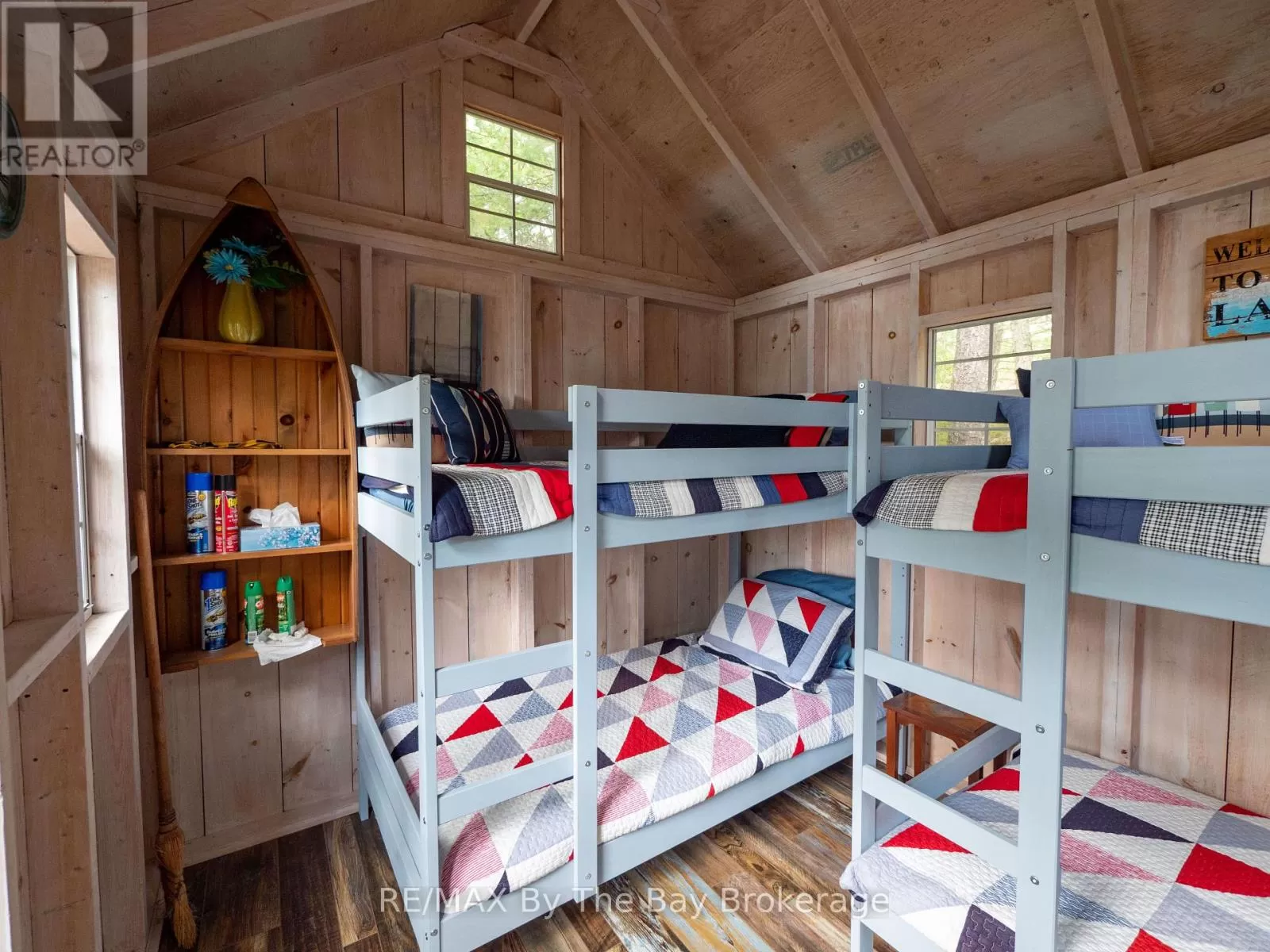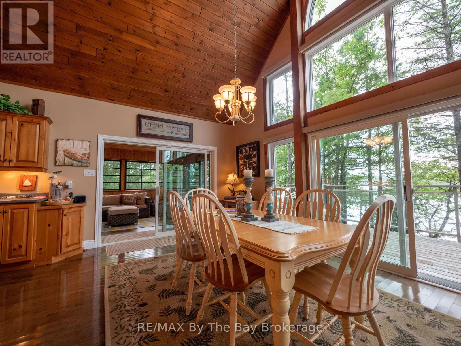 By Boat. 15 minute boat ride to Palisade Bay to #17470. Life's perfect in Palisade Bay! West exposure, crystal clean deep water...331 feet of rocky shore and a pristine 3 bedroom cottage with professionally built bunkie, are all good reasons why you'll love this property! Large dock and deck offer plenty of space for waterside viewing and relaxation beside the beautiful, family oriented bay. The main cottage has a massive and well appointed great room with wood burning stove and vaulted ceilings. Spacious kitchen provides plenty of room for meal prepping and entertaining while looking out the floor to ceiling windows that frame the bay. Gorgeous sunroom was completely updated in 2015 . Upstairs, enjoy the elegant, loft primary bedroom with ensuite when you need to relax in your own space. A split system ductless Mitsubishi Heating/Air Conditioning system allows for use of the cottage in summer or winter if one wishes. A short kayak ride to the wonderful McCrae Lake Conservation Reserve and only a 15 minute boat ride from closest marina. Boat Access Only. (id:27476)