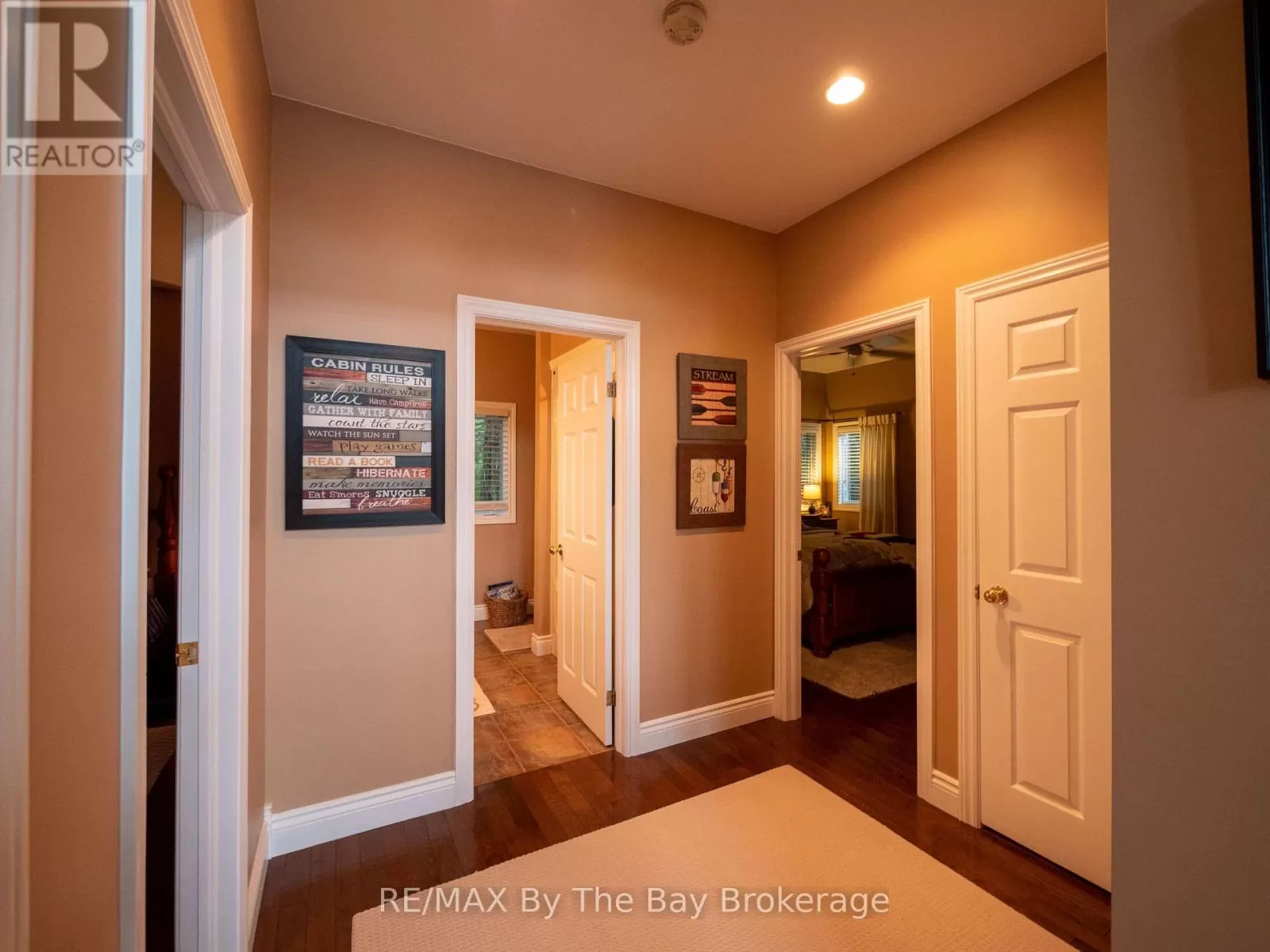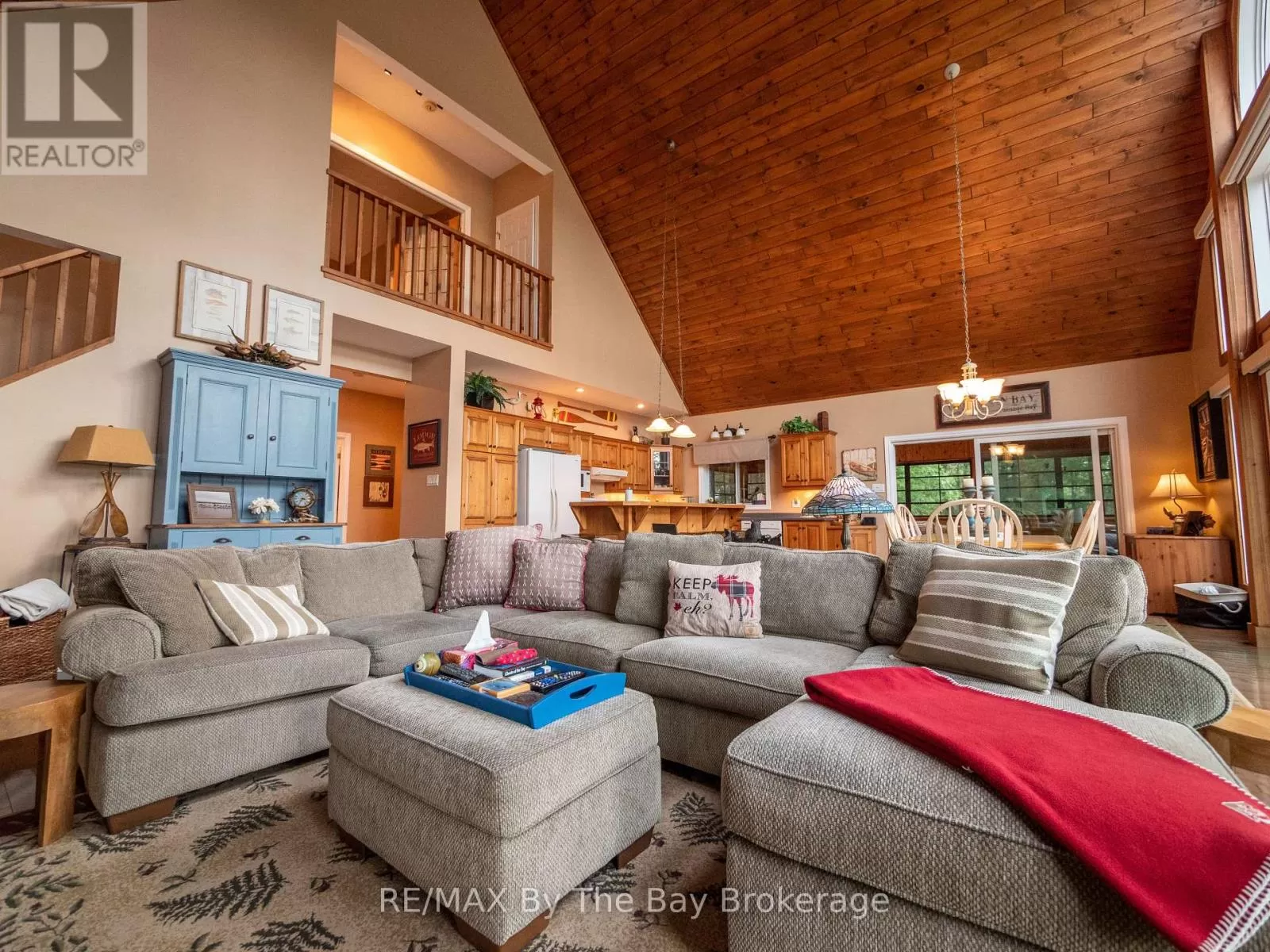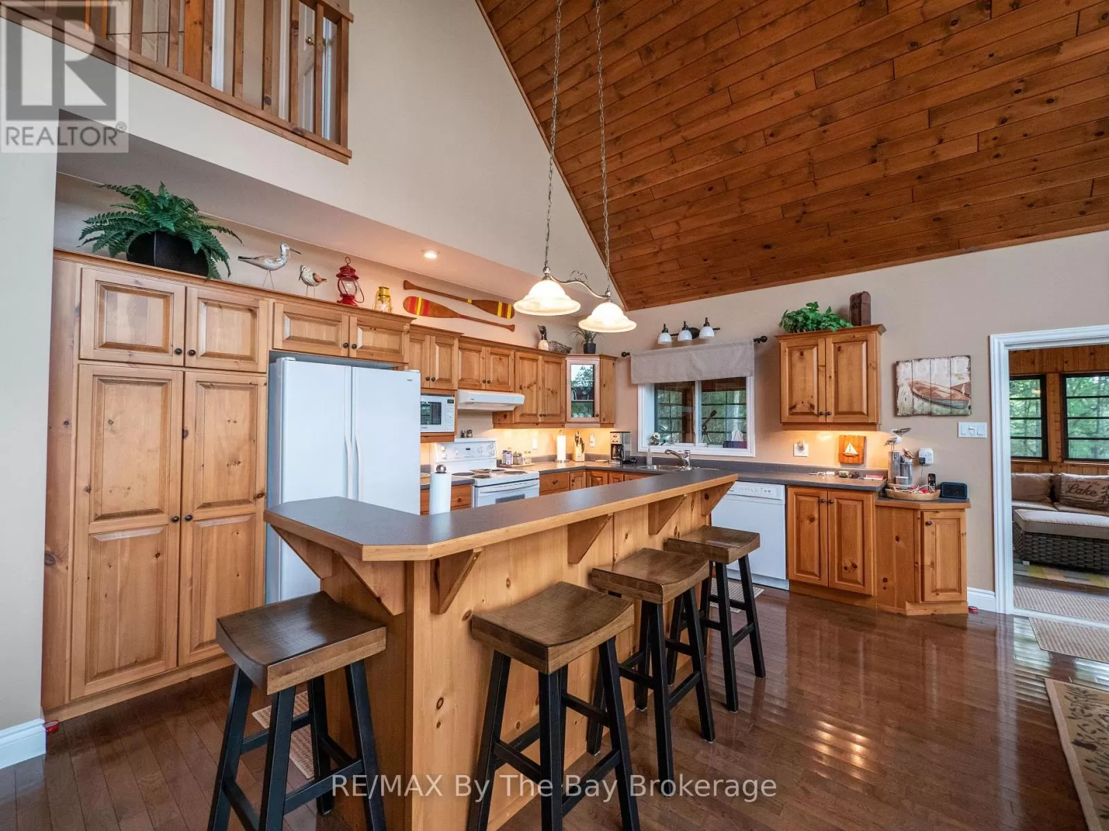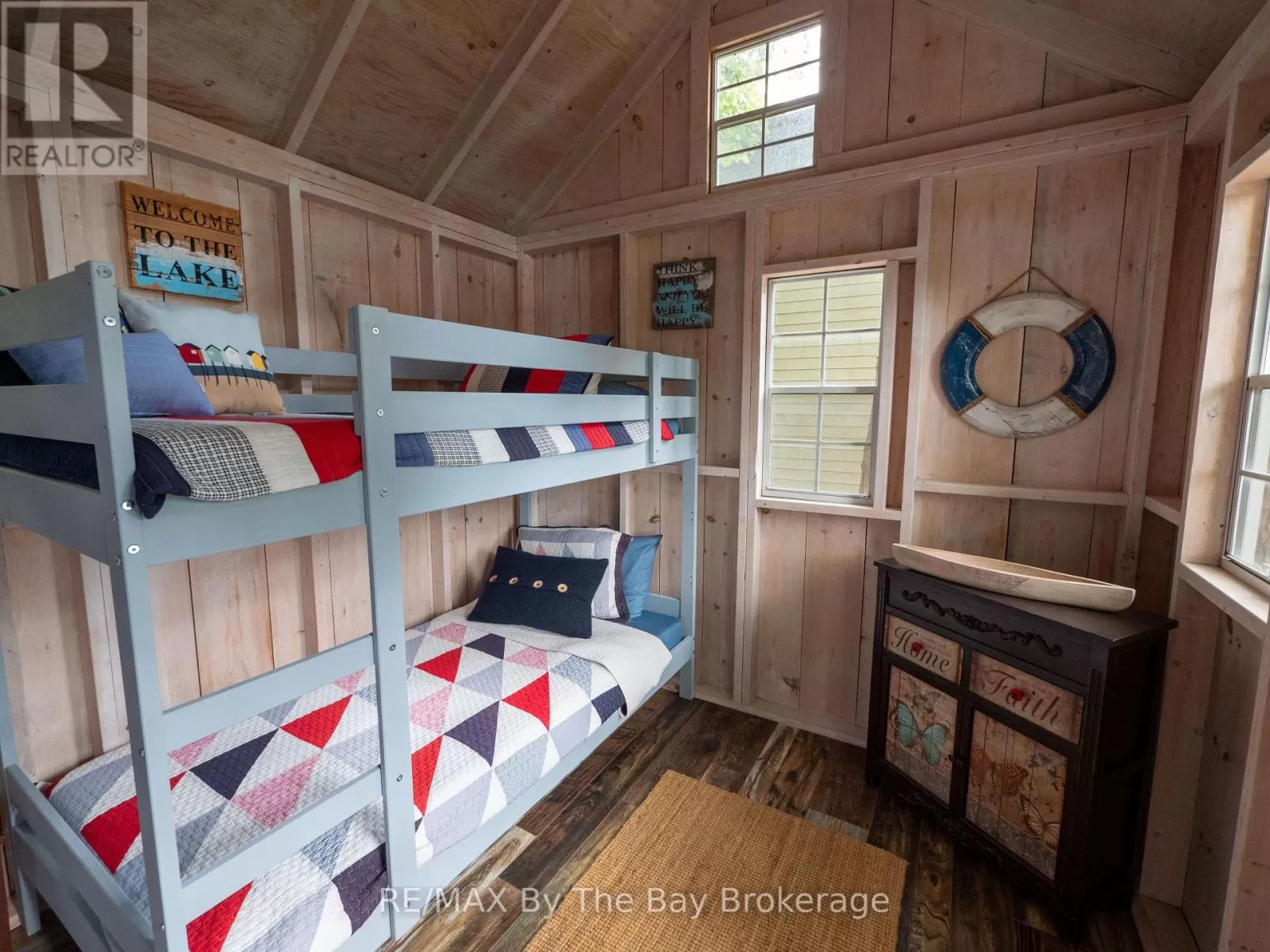 By Boat. 15 minute boat ride to Palisade Bay to #17470. Life's perfect in Palisade Bay! West exposure, crystal clean deep water...331 feet of rocky shore and a pristine 3 bedroom cottage with professionally built bunkie, are all good reasons why you'll love this property! Large dock and deck offer plenty of space for waterside viewing and relaxation beside the beautiful, family oriented bay. The main cottage has a massive and well appointed great room with wood burning stove and vaulted ceilings. Spacious kitchen provides plenty of room for meal prepping and entertaining while looking out the floor to ceiling windows that frame the bay. Gorgeous sunroom was completely updated in 2015 . Upstairs, enjoy the elegant, loft primary bedroom with ensuite when you need to relax in your own space. A split system ductless Mitsubishi Heating/Air Conditioning system allows for use of the cottage in summer or winter if one wishes. A short kayak ride to the wonderful McCrae Lake Conservation Reserve and only a 15 minute boat ride from closest marina. Boat Access Only. (id:27476)