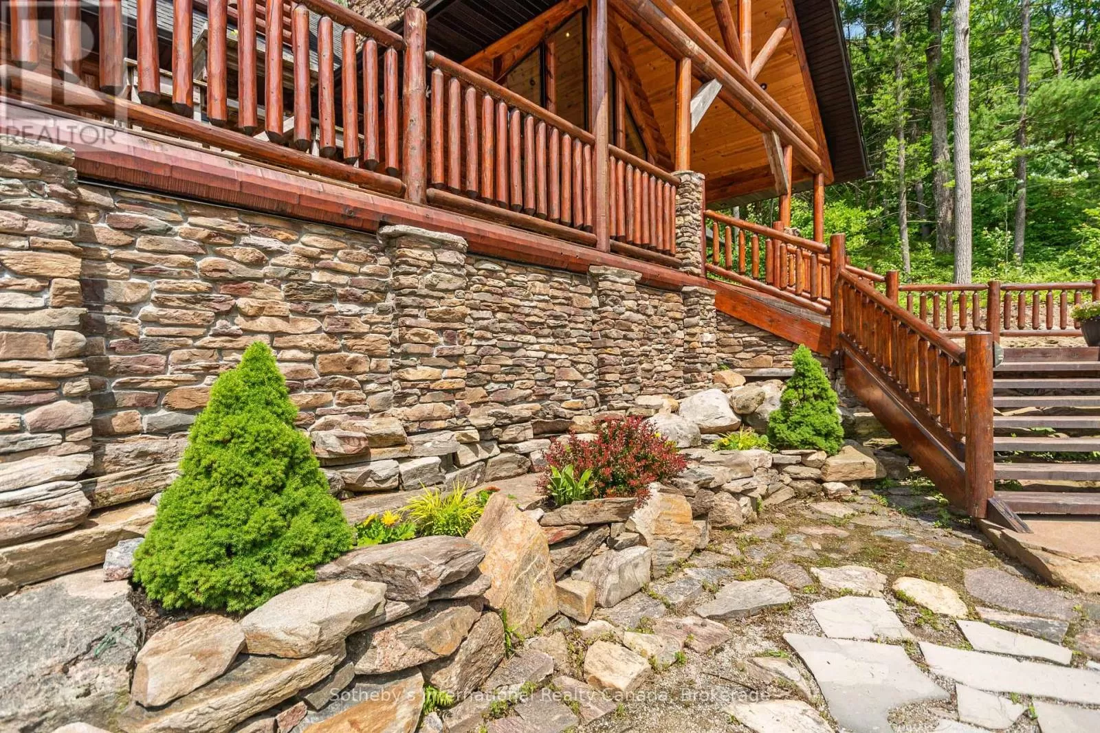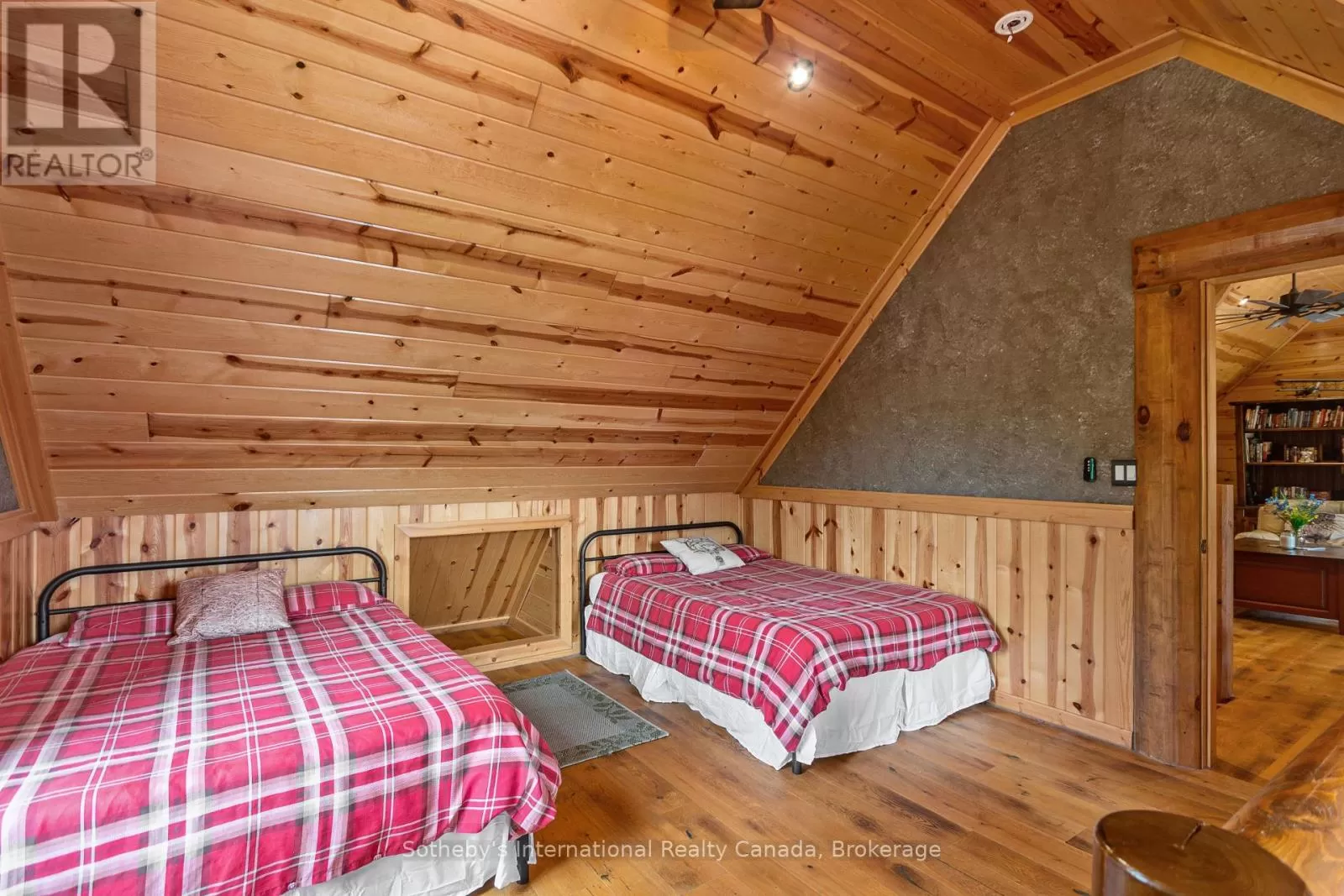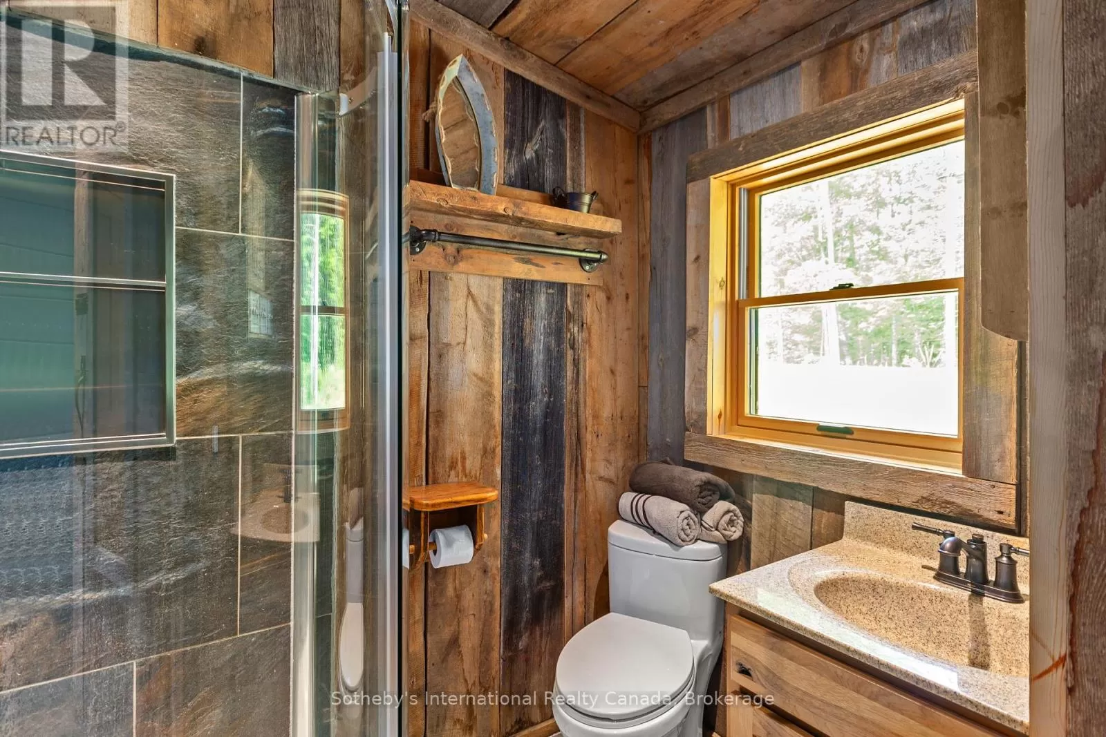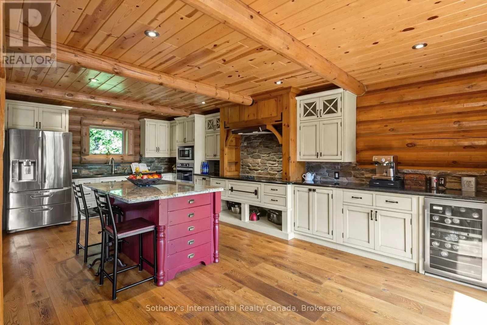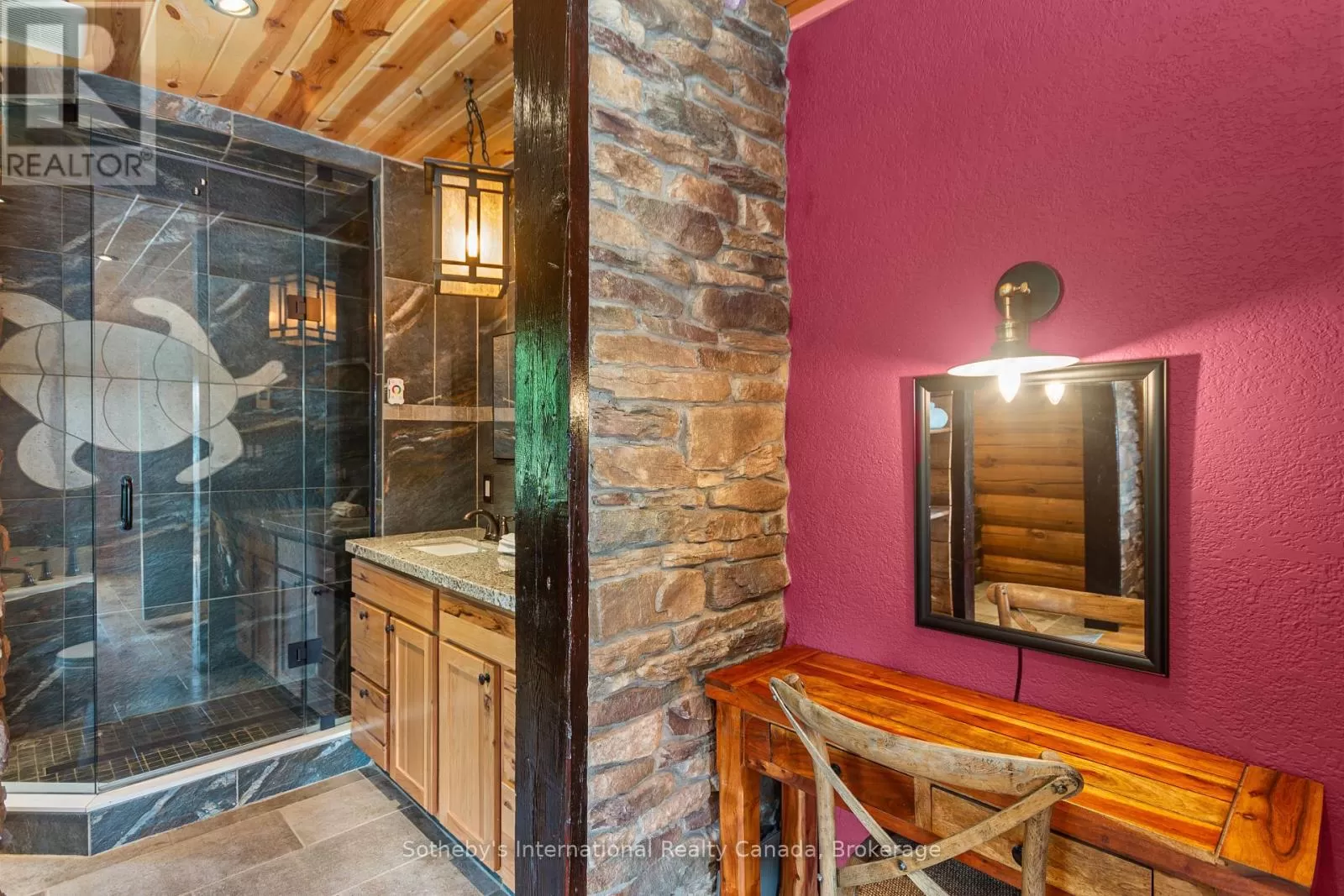 Cross Streets: HWY400/EXIT 177/GHLMarina/Boat. ** Directions: Hwy 400 to Exit 177. Then go Home Lake Road to Go Home Lake Marina. By Boat to Crystal Bay. Welcome to your dream waterfront retreat in Crystal Bay on Go Home Lake! This stunning winterized Golden Eagle log home boasts 3 bedrooms, 3 bathrooms, and 2,642 square feet of luxurious living space. Step inside and be captivated by the beauty of the 10" white Wisconsin pine logs that frame the home. Accessed by boat, you are under 10 minutes from the marina. Enjoy the serene ambiance with 558 feet of water frontage, set on a spacious 1.56-acre lot. The southeast exposure fills the home with natural light, creating a warm and inviting atmosphere. The main floor features a stunning ledge rock fireplace in the spacious living room while the dining room offers ample seating for gatherings. The gourmet kitchen is a chef's delight, equipped with stainless steel appliances, a moveable island, granite countertops, and a beautiful stone backsplash. The spacious primary suite boasts a walk-out to the deck, complete with an ensuite that includes a jacuzzi tub, custom granite shower, and double sink. The attention to detail is evident with custom stonework throughout. Rounding out this level is a bathroom designed to resemble an outhouse, adding a unique touch to the home and a convenient stackable laundry pair. Upstairs, the loft area overlooks floor-to-ceiling windows, creating a cozy retreat. Here you will also find two generously sized bedrooms with vaulted ceilings and a 4-piece bath that provides comfortable accommodations for family and guests. This home is beautifully furnished throughout, showcasing quality furniture and log beds that perfectly complement the rustic charm. Outside, the tastefully landscaped property features a flagstone front yard, a tiki bar on the dock, and a sand beach area creating the ideal space for outdoor entertaining. Relax and enjoy the soothing sounds of your own personal waterfall. The adjacent property is also for sale, offering the potential for a family compound, complete with a spacious 3 bedroom log home (see MLS # X12016866). (id:27476)