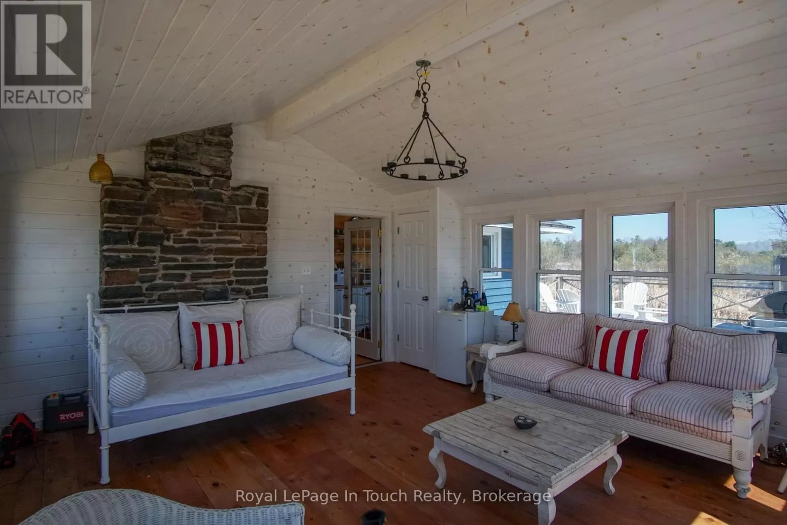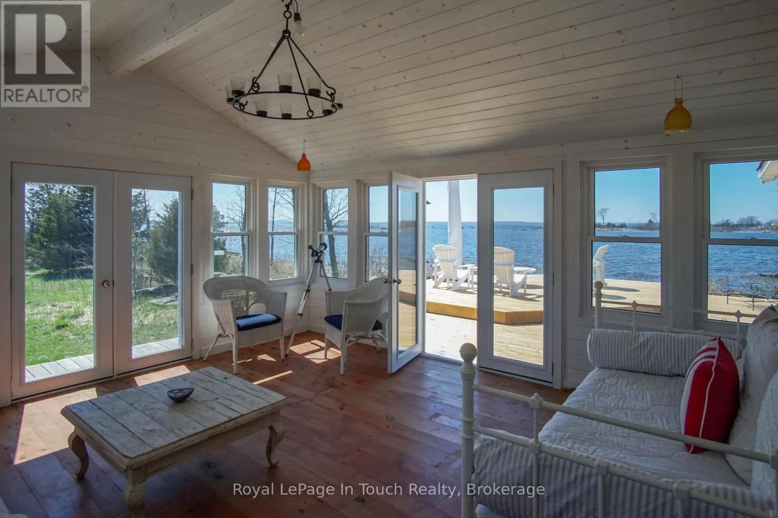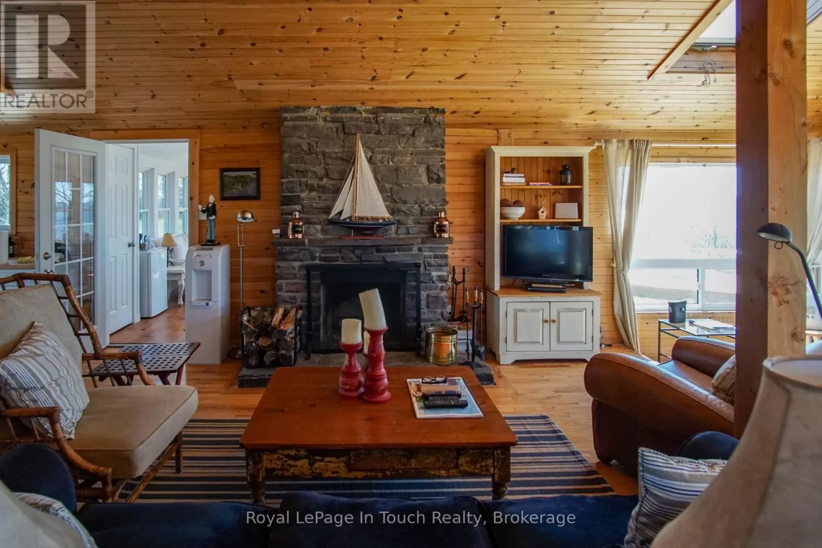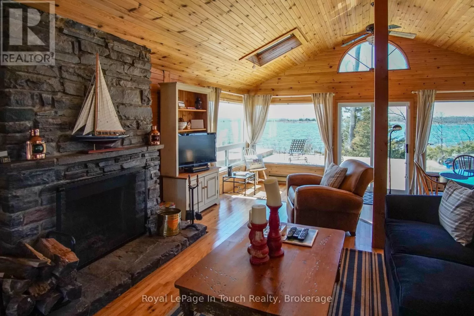 Cross Streets: N/A. ** Directions: By boat from marina to Island 130 near Potato Island Channel. Own your own private island with expansive views over southern Georgian Bay. Most of the cottage & bunkie have been renovated & everything has been done beautifully. The large front deck offers a perfect vantage point to take in the sunsets, while the rear deck gives you sheltered area to sit and enjoy the sun on breezier days. If you would rather camp out inside, you'll love the bright sunroom or the large open living room with stone fireplace. Other recent updates include a new bath with walk-in shower and great bunkie with 2 sets of bunks and its own bath complete with shower and laundry. (id:27476)