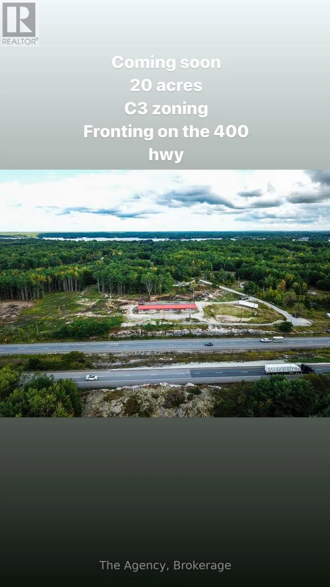 Cross Streets: Lone Pine Rd & Pine Valley Rd. ** Directions: North side of pine valley, east of hwy 400. Unbelievable Opportunity With 2000 Feet Of Frontage On The 400 Hwy. Think Of The Signage! The GatewayTo Muskoka! 20 Acres Zoned For Commercial Development. Amazing Potential For Business Park, Dealers,Warehousing, Restaurant, Outdoor Storage! Building Is Usable Aprox 8000 Sqft Slab Floor Construction WithSteel Roof. Serviced W/ 600 Volts, Property Has A Well. Recently Lot Cleared. Potential. Owner WouldConsider A Vendor Take Back With Approved Buyer. (id:27476)