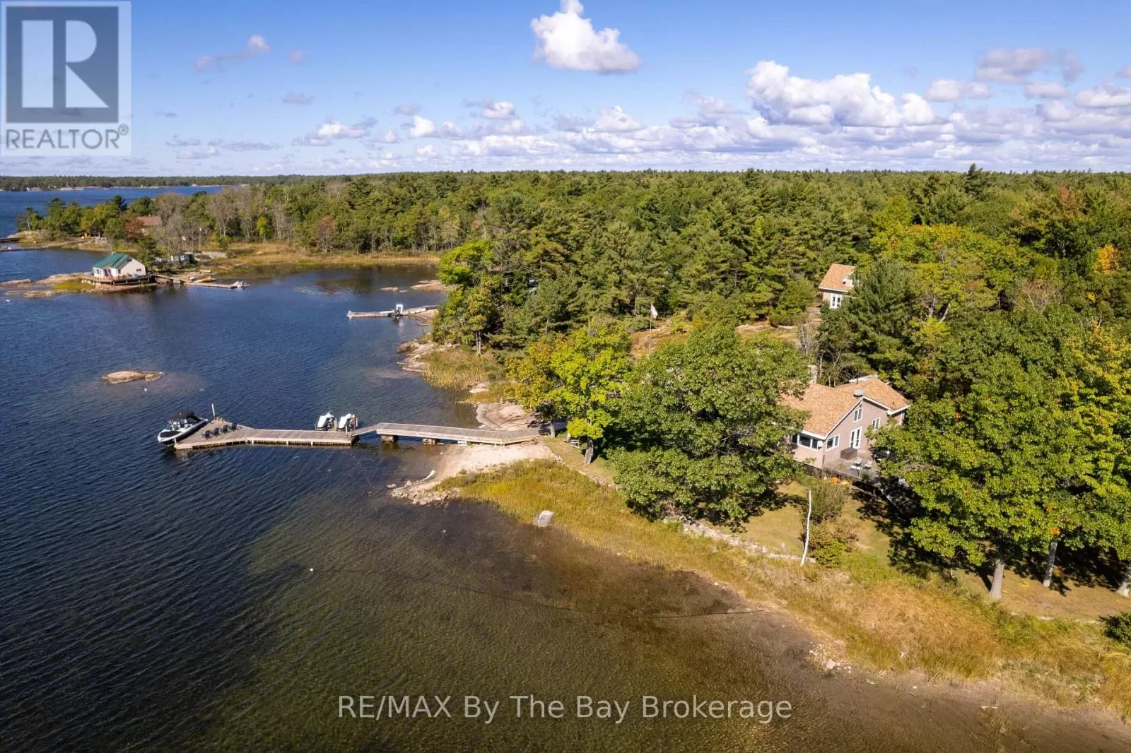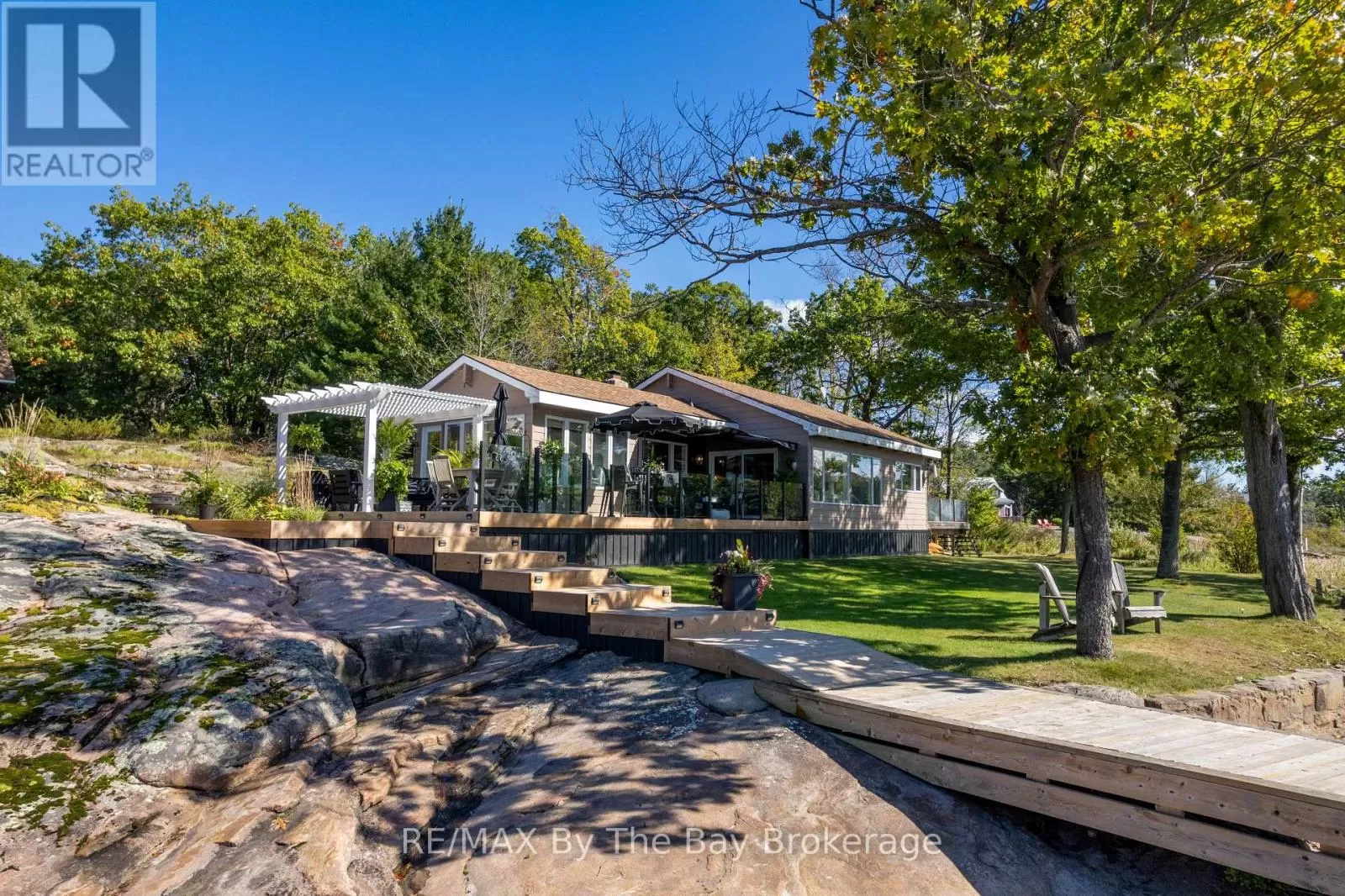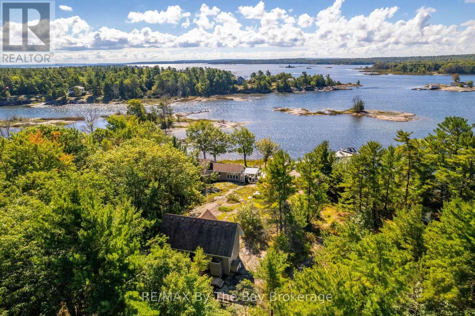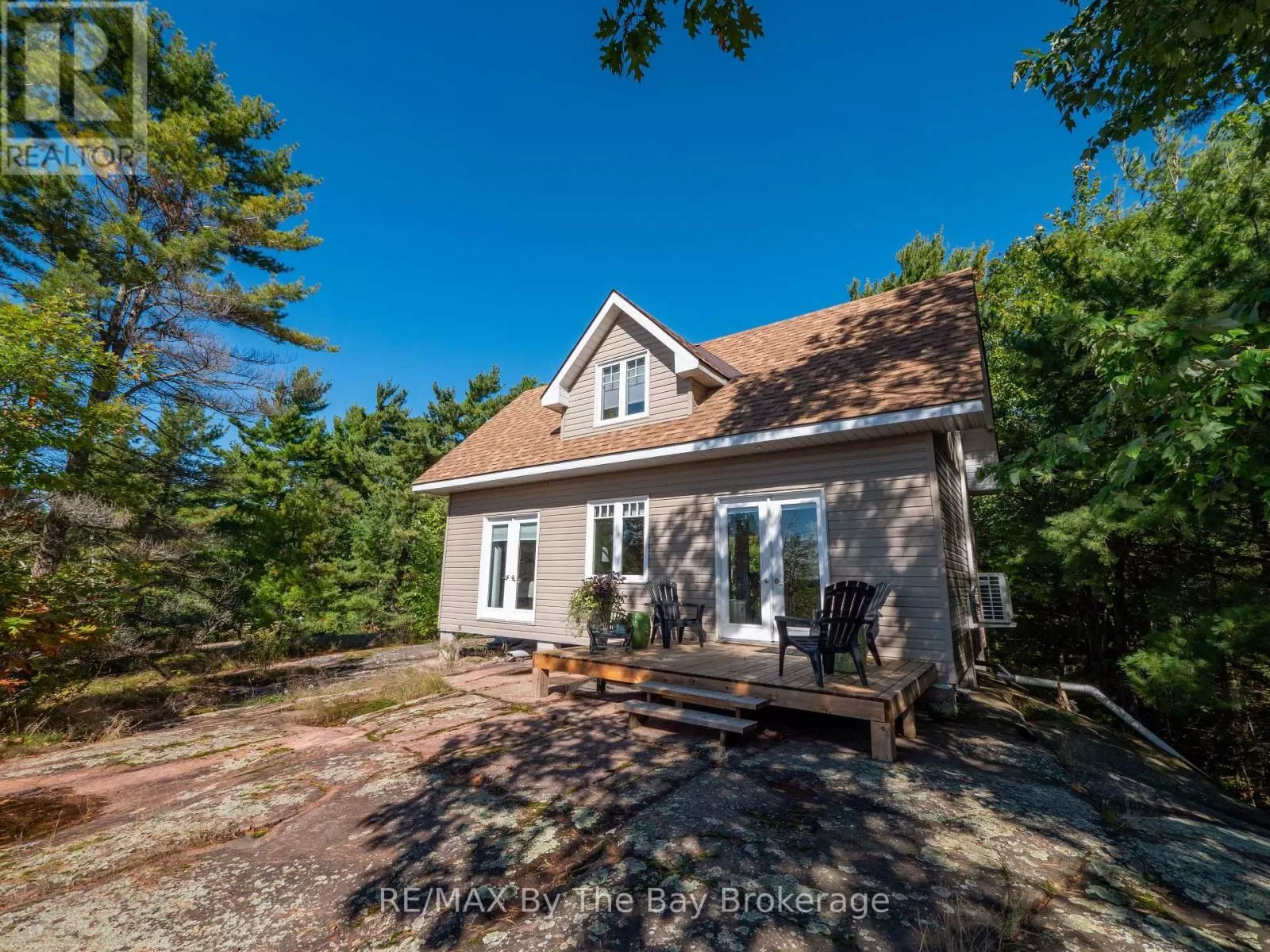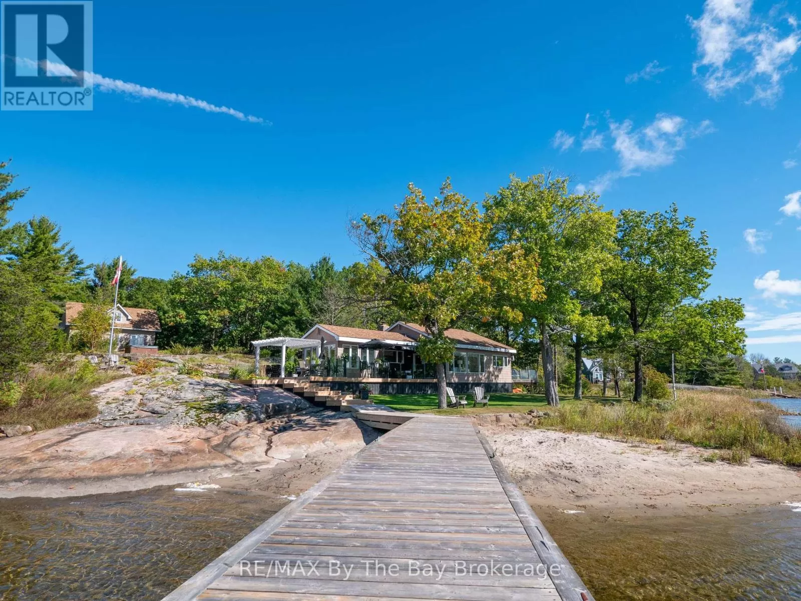 Cross Streets: By Boat. ** Directions: BY BOAT from Honey Harbour marinas, to the West end of Big Dog Channel to #4476 IS 1040, known as Little Beausoleil Island. NO sign on property. The breathtaking view of Georgian Bay, Beausoleil Island, and Roberts Island render this property an exceptional retreat.. With 295 feet of water frontage, the property features a small sandy beach, a gentle shoreline, and an extended dock that reaches deeper waters, ensuring endless enjoyment for family and friends. A well-lit path meanders from the shore to the cottage, traversing beautifully landscaped gardens and natural Georgian Bay granite outcroppings.Upon reaching the cottage, one can relax and unwind on the deck, soaking up the sun or enjoying the shade provided by the pergola. The main cottage spans 1,376 square feet and has been recently renovated, offering two bedrooms, a sleeping loft, a bathroom, and a freestanding stone fireplace. The vaulted ceilings and large windows enhance the space with abundant natural light.The kitchen is a chef's dream, featuring updated countertops, stainless steel appliances, ample storage, and exposed wooden beam ceilings. Adjacent to the kitchen, the dining room doubles as a sunroom, boasting expansive windows and generous space for entertaining. For added convenience, there is a laundry room equipped with a washer, dryer, sink, shelves, and cupboards. Additionally, a one-bedroom bunkie with a powder room and storage space provides privacy for guests, making this property an ideal getaway. (id:27476)