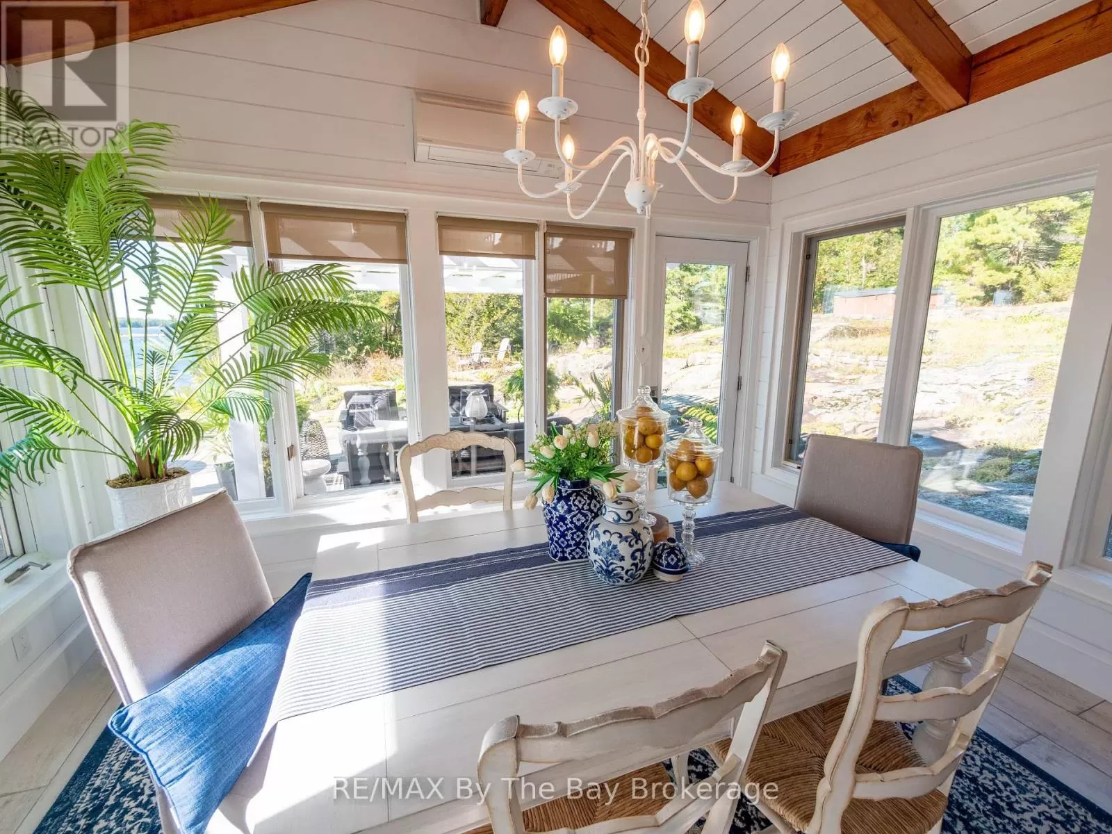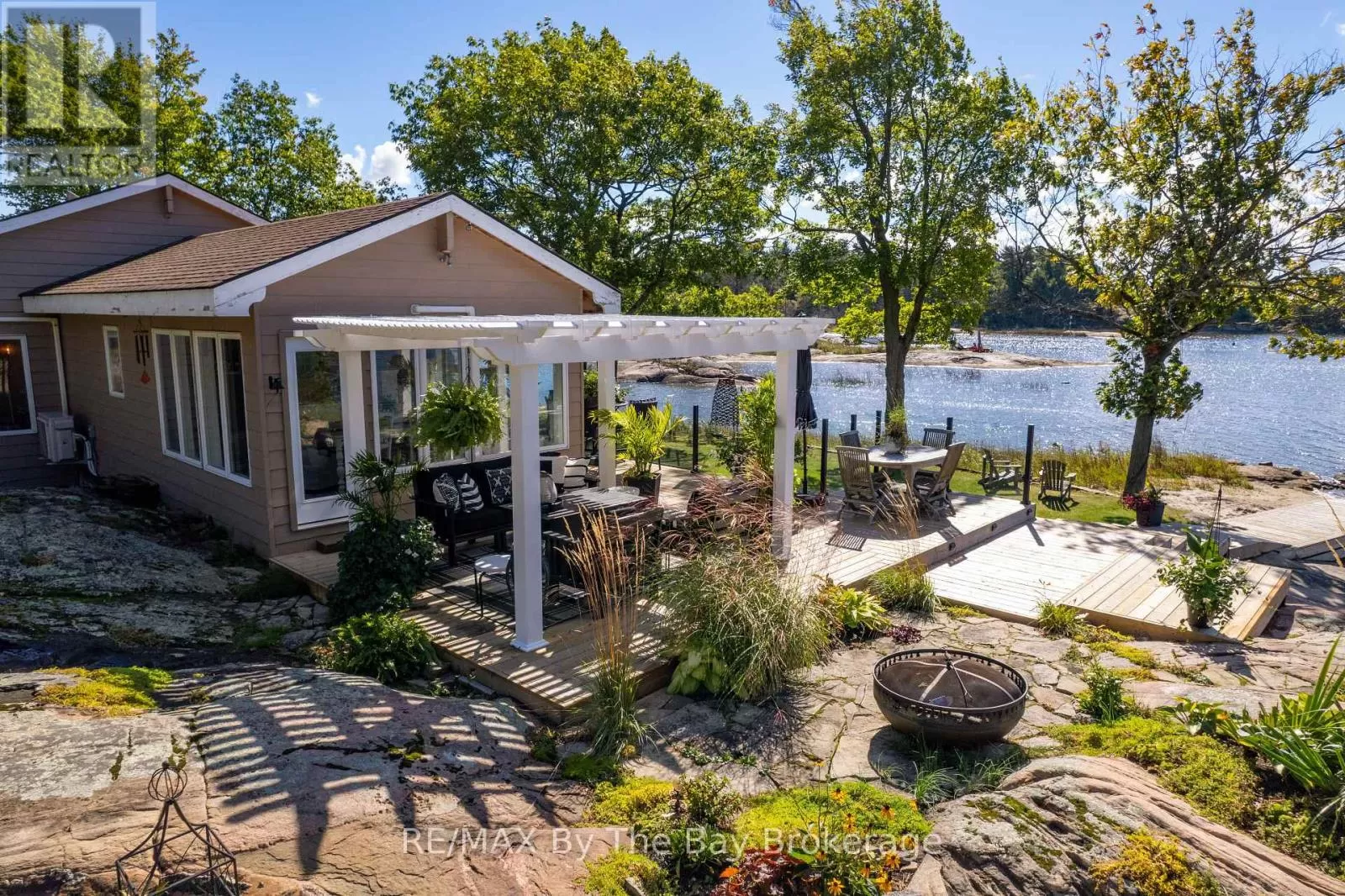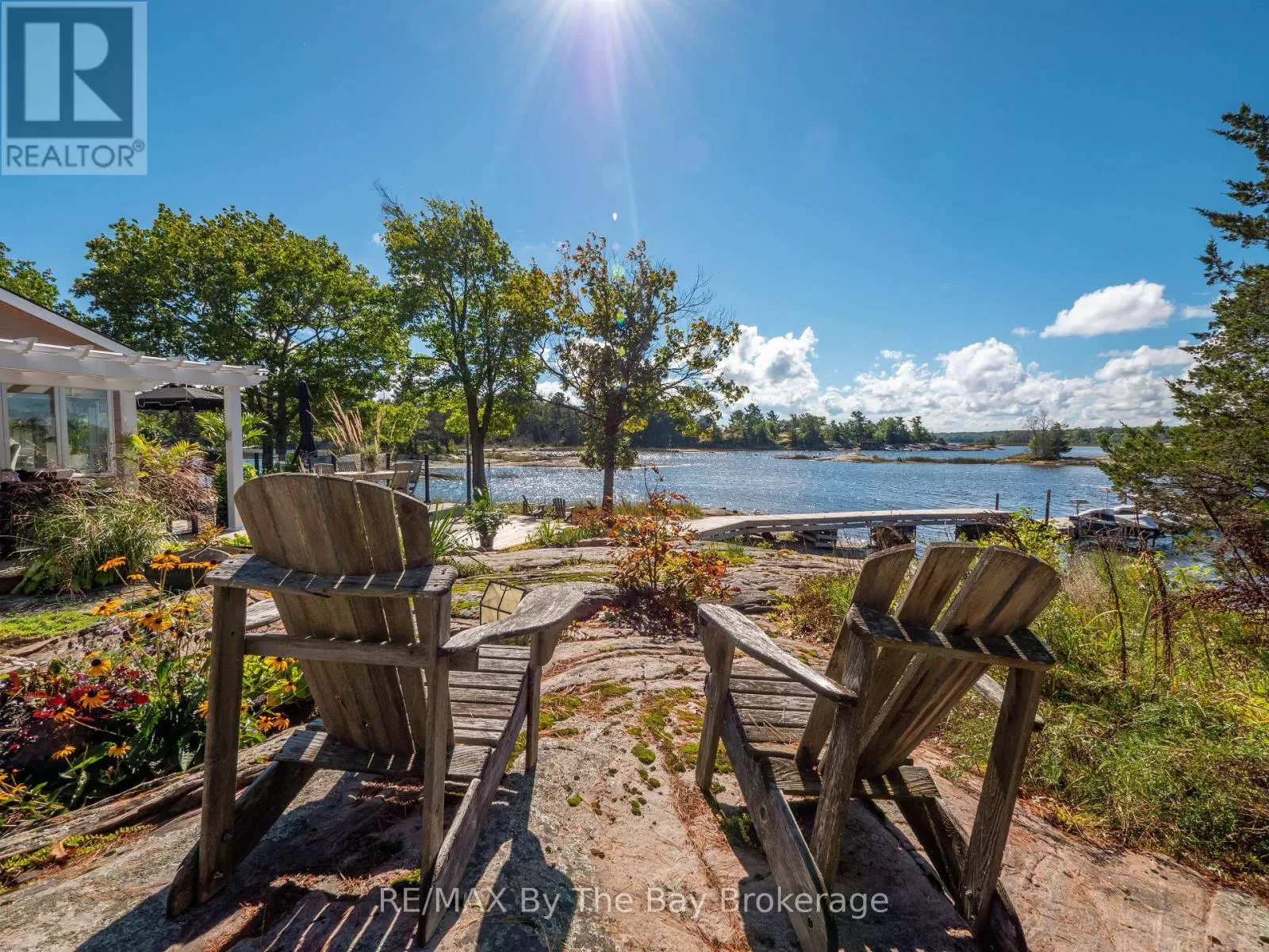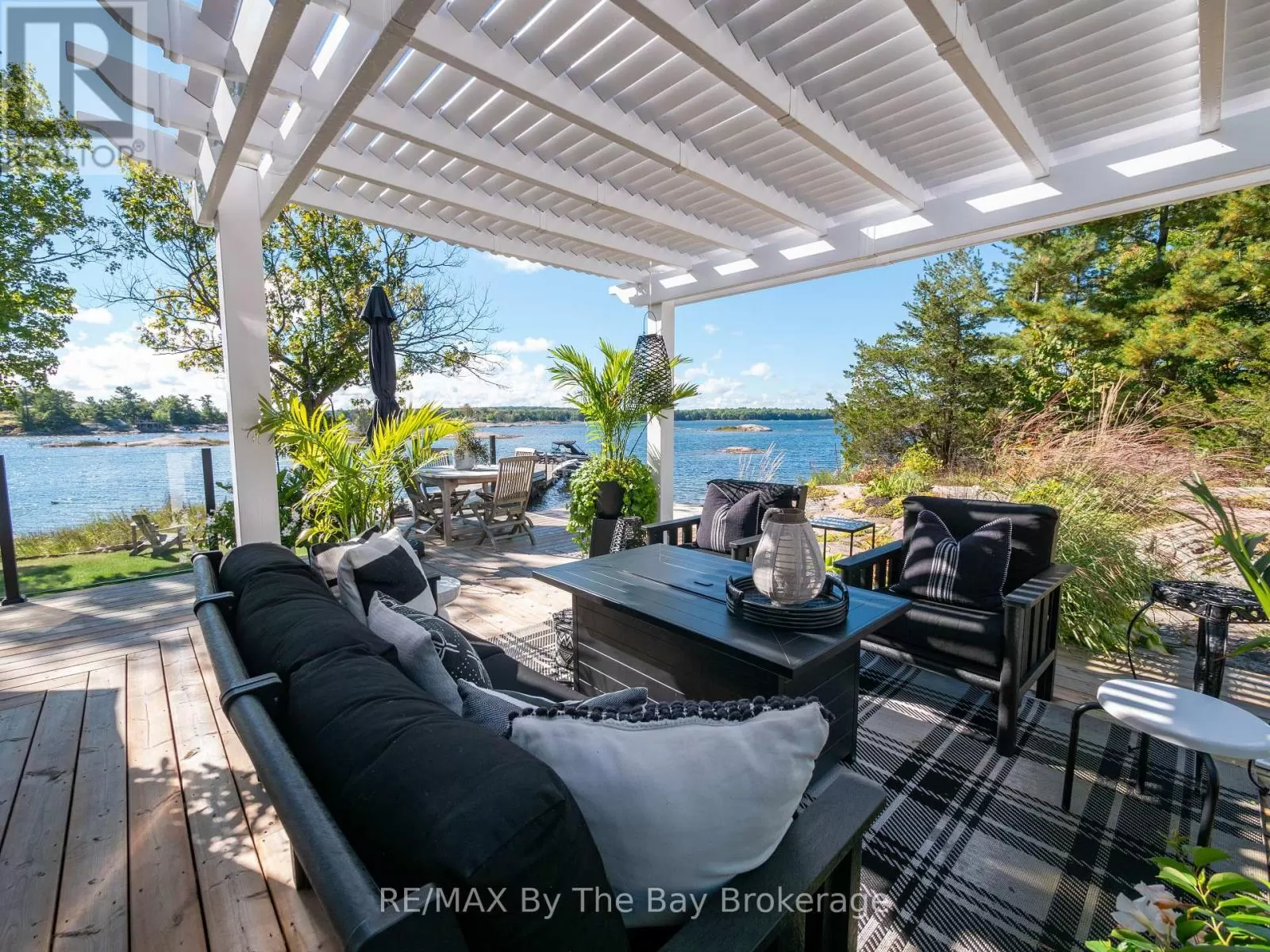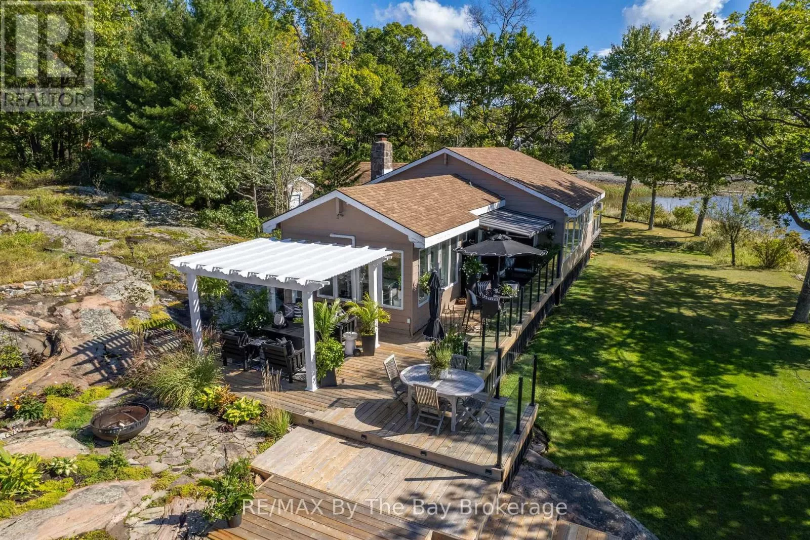 Cross Streets: By Boat. ** Directions: BY BOAT from Honey Harbour marinas, to the West end of Big Dog Channel to #4476 IS 1040, known as Little Beausoleil Island. NO sign on property. The breathtaking view of Georgian Bay, Beausoleil Island, and Roberts Island render this property an exceptional retreat.. With 295 feet of water frontage, the property features a small sandy beach, a gentle shoreline, and an extended dock that reaches deeper waters, ensuring endless enjoyment for family and friends. A well-lit path meanders from the shore to the cottage, traversing beautifully landscaped gardens and natural Georgian Bay granite outcroppings.Upon reaching the cottage, one can relax and unwind on the deck, soaking up the sun or enjoying the shade provided by the pergola. The main cottage spans 1,376 square feet and has been recently renovated, offering two bedrooms, a sleeping loft, a bathroom, and a freestanding stone fireplace. The vaulted ceilings and large windows enhance the space with abundant natural light.The kitchen is a chef's dream, featuring updated countertops, stainless steel appliances, ample storage, and exposed wooden beam ceilings. Adjacent to the kitchen, the dining room doubles as a sunroom, boasting expansive windows and generous space for entertaining. For added convenience, there is a laundry room equipped with a washer, dryer, sink, shelves, and cupboards. Additionally, a one-bedroom bunkie with a powder room and storage space provides privacy for guests, making this property an ideal getaway. (id:27476)