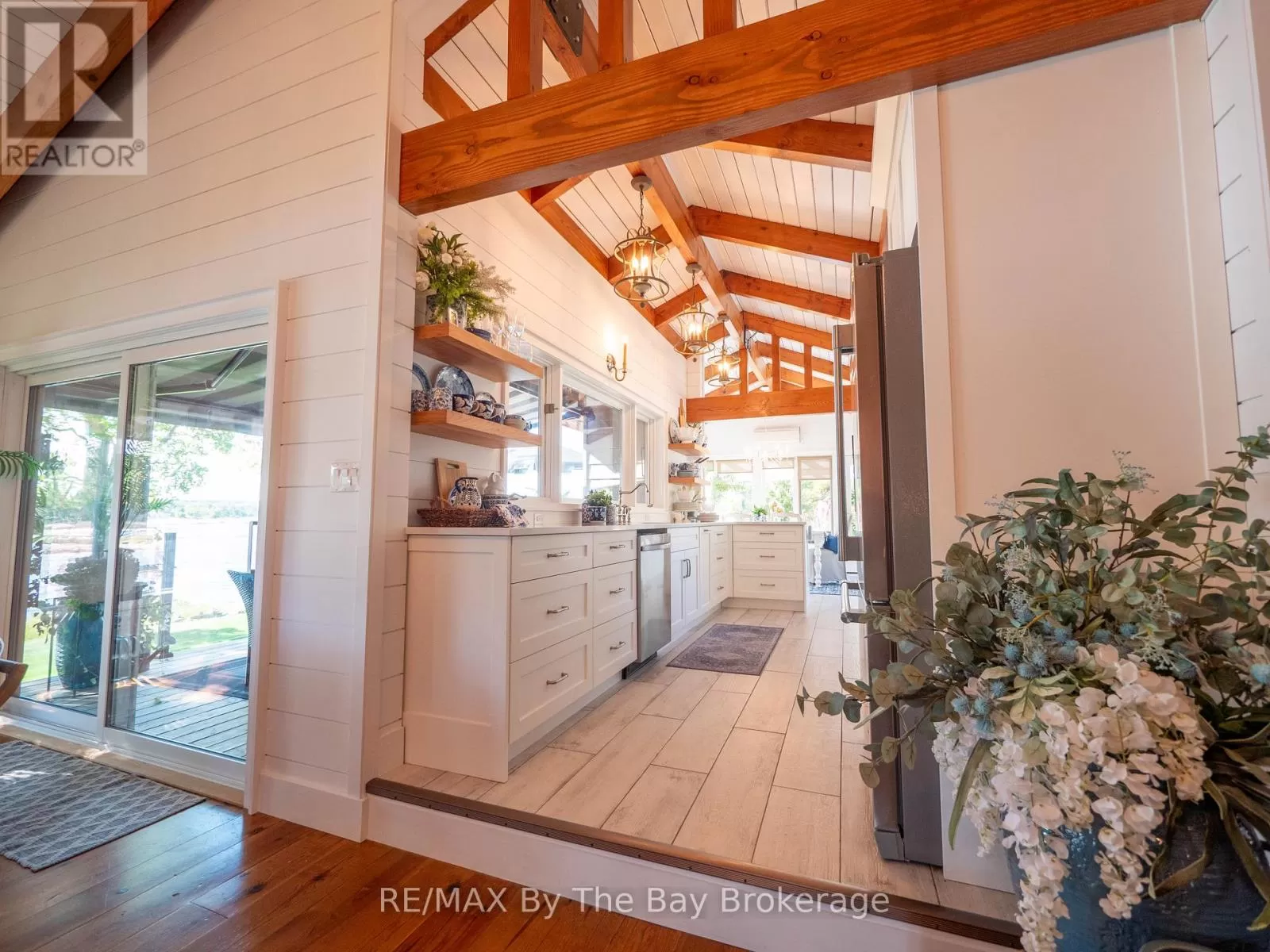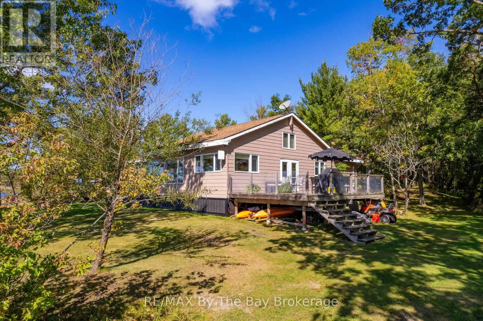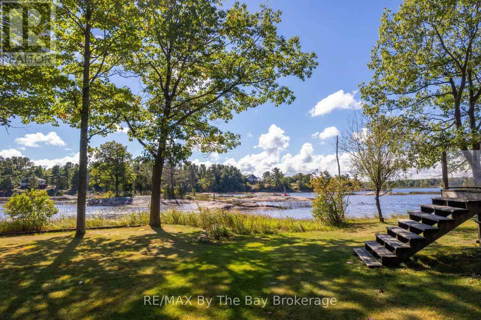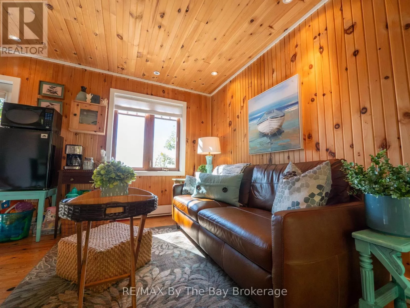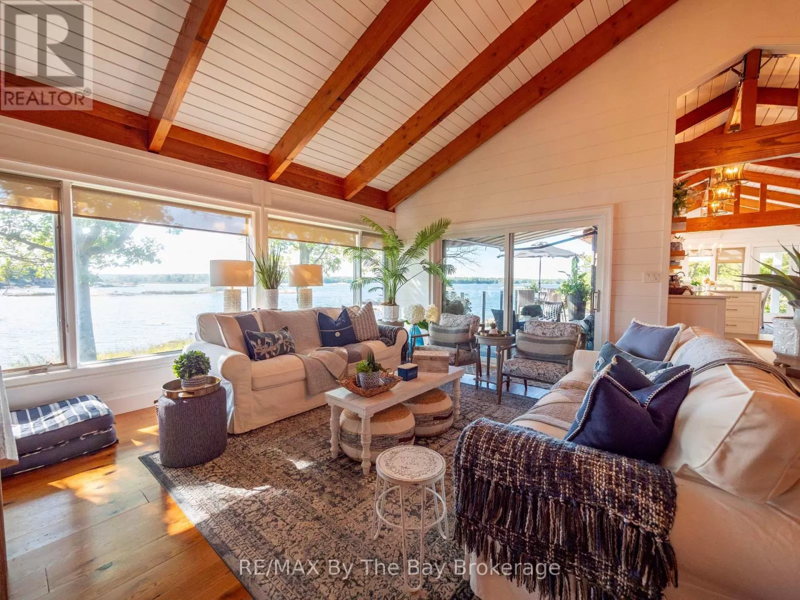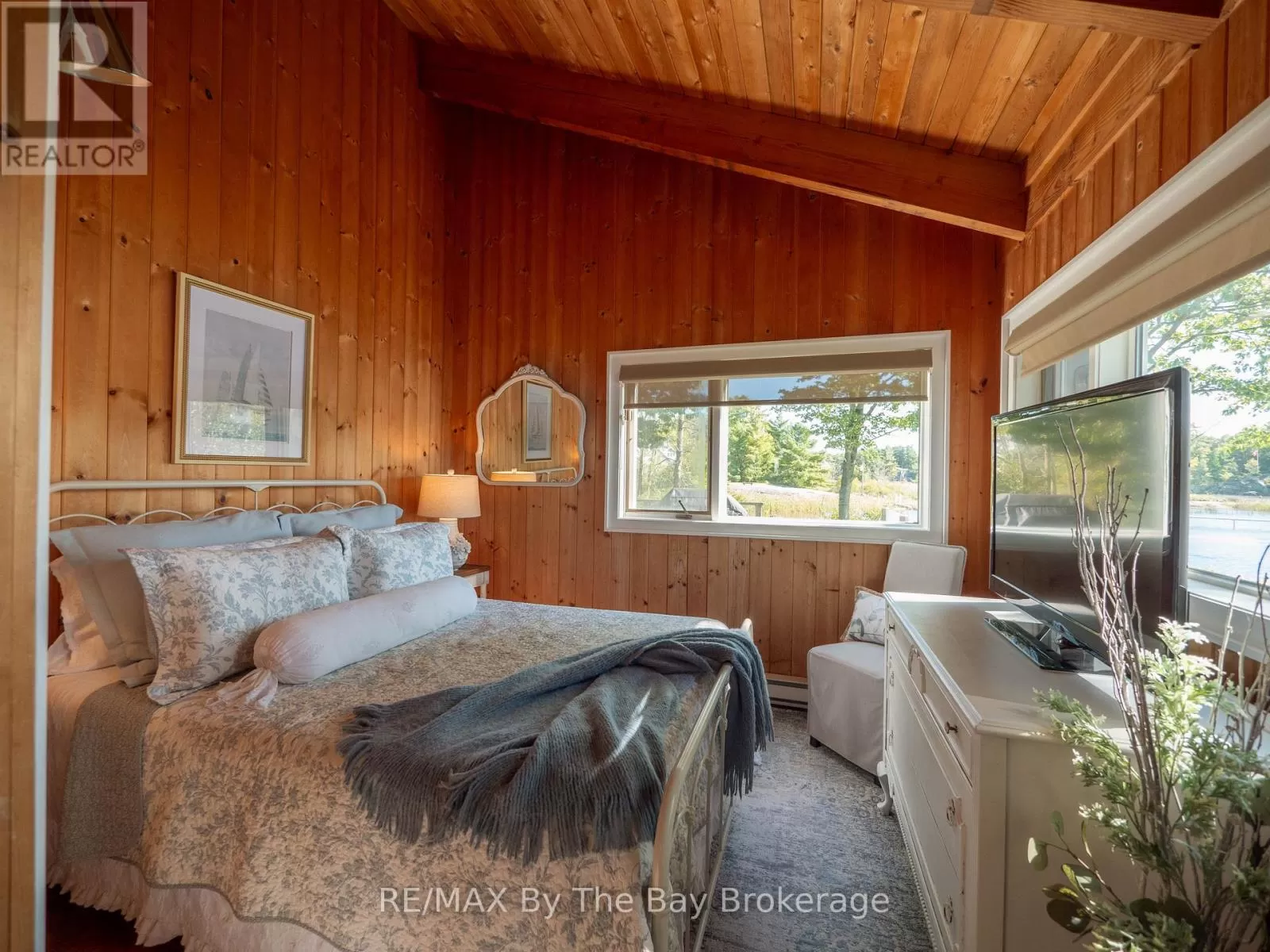 Cross Streets: By Boat. ** Directions: BY BOAT from Honey Harbour marinas, to the West end of Big Dog Channel to #4476 IS 1040, known as Little Beausoleil Island. NO sign on property. The breathtaking view of Georgian Bay, Beausoleil Island, and Roberts Island render this property an exceptional retreat.. With 295 feet of water frontage, the property features a small sandy beach, a gentle shoreline, and an extended dock that reaches deeper waters, ensuring endless enjoyment for family and friends. A well-lit path meanders from the shore to the cottage, traversing beautifully landscaped gardens and natural Georgian Bay granite outcroppings.Upon reaching the cottage, one can relax and unwind on the deck, soaking up the sun or enjoying the shade provided by the pergola. The main cottage spans 1,376 square feet and has been recently renovated, offering two bedrooms, a sleeping loft, a bathroom, and a freestanding stone fireplace. The vaulted ceilings and large windows enhance the space with abundant natural light.The kitchen is a chef's dream, featuring updated countertops, stainless steel appliances, ample storage, and exposed wooden beam ceilings. Adjacent to the kitchen, the dining room doubles as a sunroom, boasting expansive windows and generous space for entertaining. For added convenience, there is a laundry room equipped with a washer, dryer, sink, shelves, and cupboards. Additionally, a one-bedroom bunkie with a powder room and storage space provides privacy for guests, making this property an ideal getaway. (id:27476)