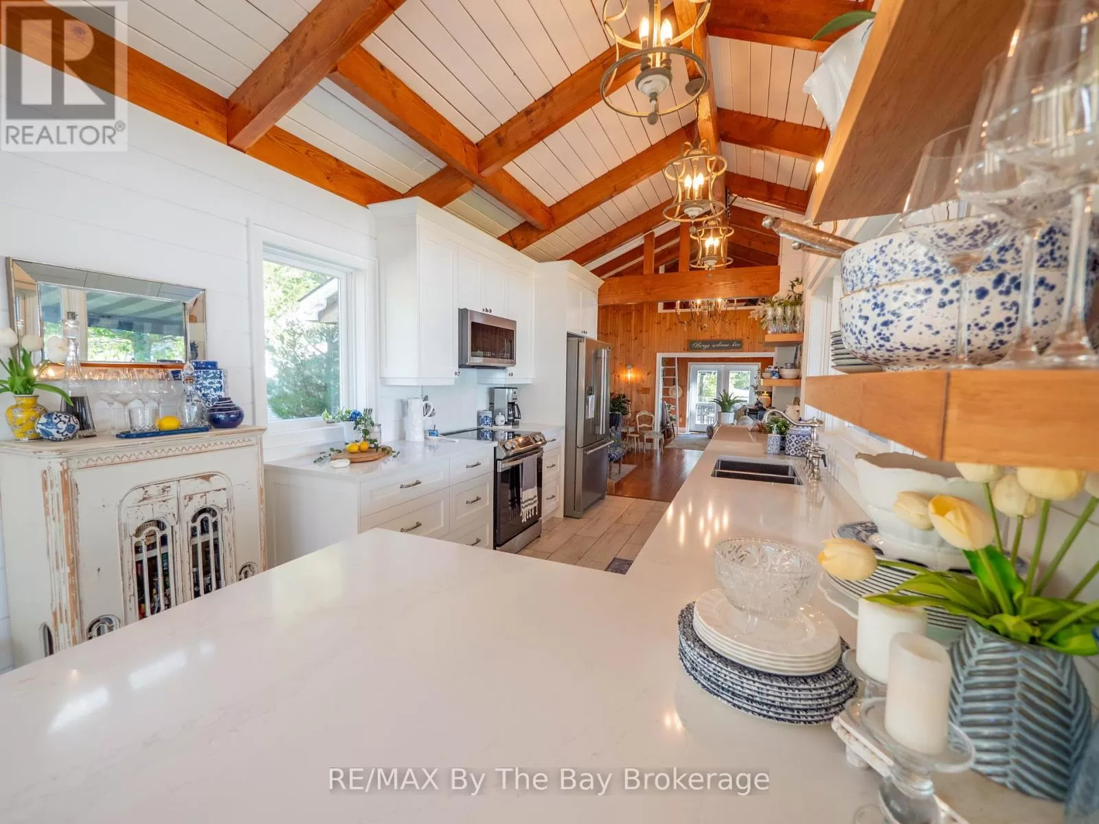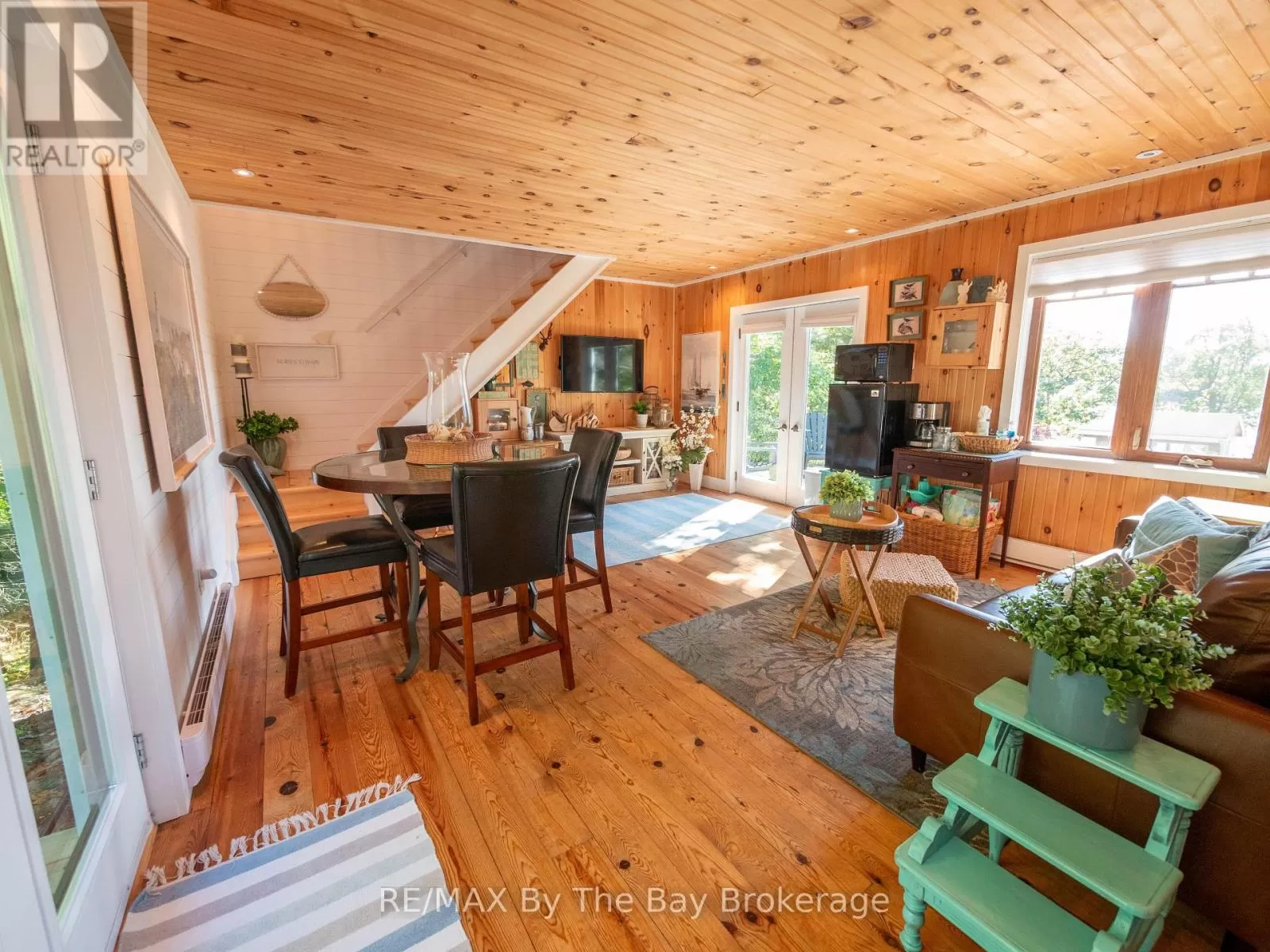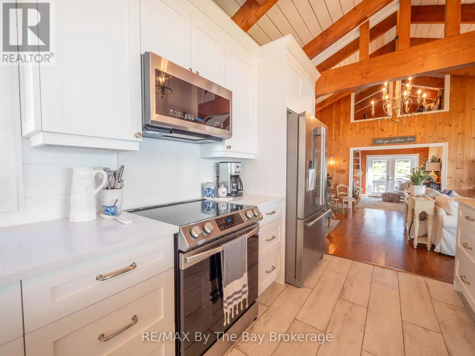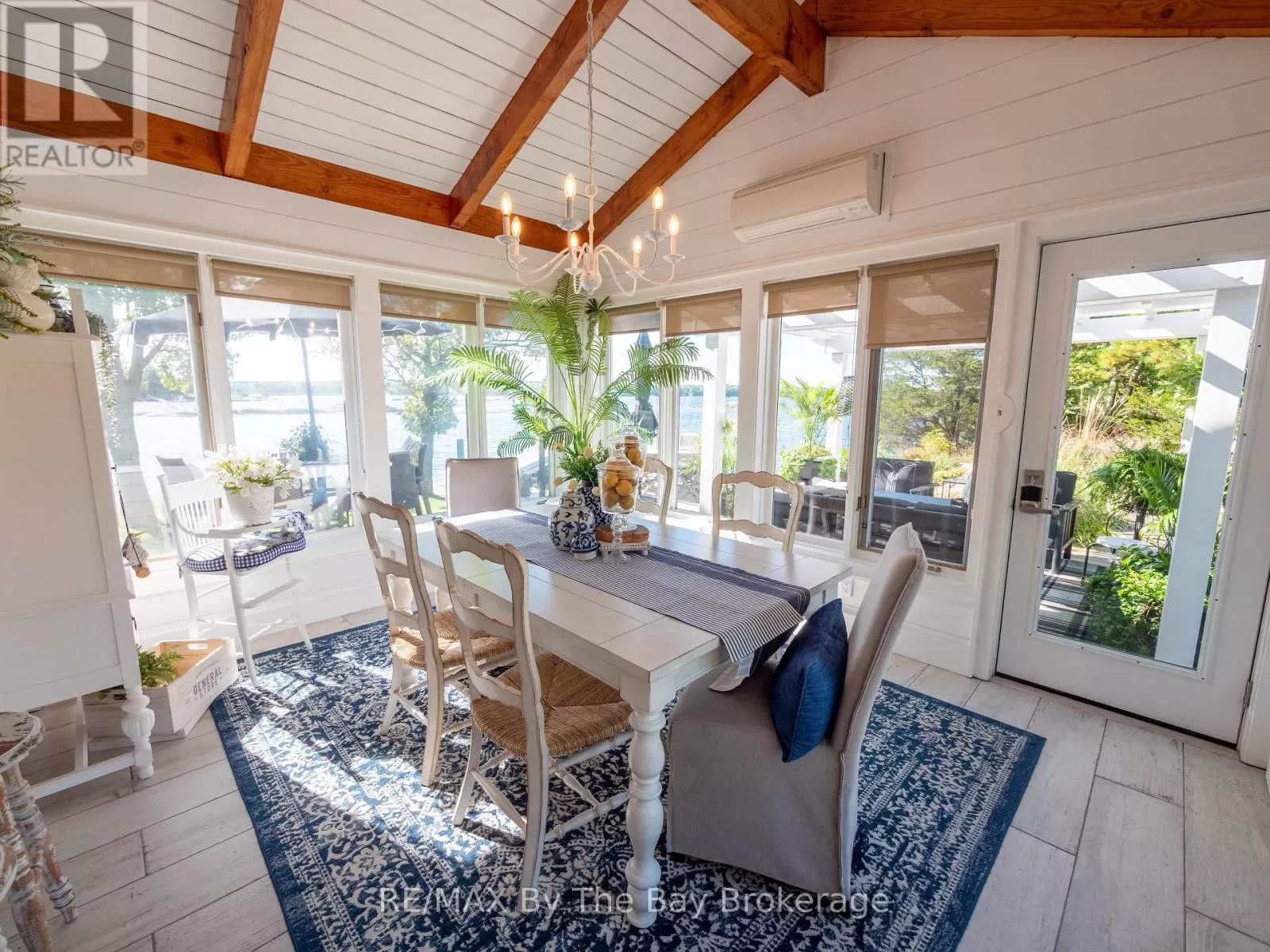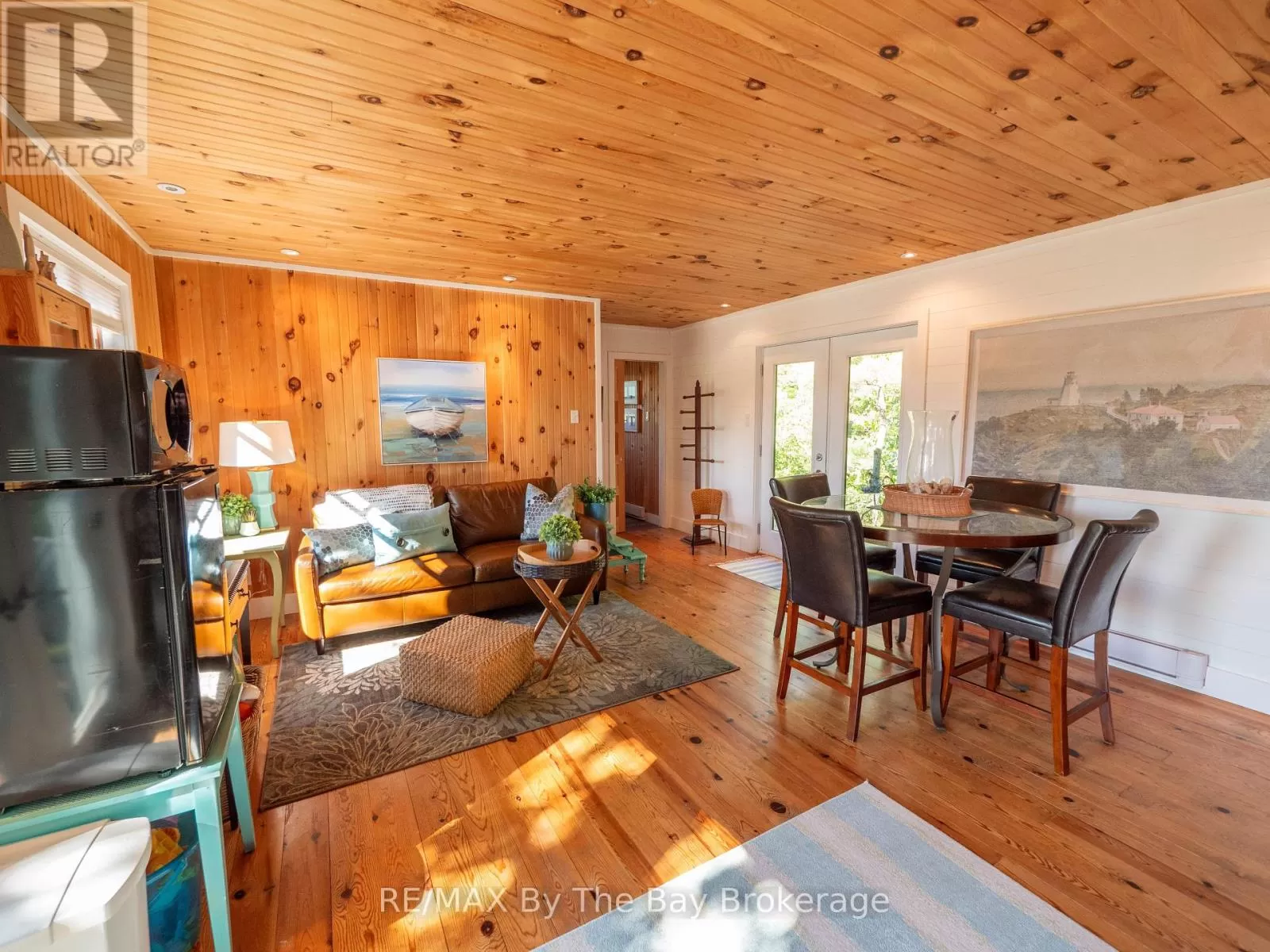 Cross Streets: By Boat. ** Directions: BY BOAT from Honey Harbour marinas, to the West end of Big Dog Channel to #4476 IS 1040, known as Little Beausoleil Island. NO sign on property. The breathtaking view of Georgian Bay, Beausoleil Island, and Roberts Island render this property an exceptional retreat.. With 295 feet of water frontage, the property features a small sandy beach, a gentle shoreline, and an extended dock that reaches deeper waters, ensuring endless enjoyment for family and friends. A well-lit path meanders from the shore to the cottage, traversing beautifully landscaped gardens and natural Georgian Bay granite outcroppings.Upon reaching the cottage, one can relax and unwind on the deck, soaking up the sun or enjoying the shade provided by the pergola. The main cottage spans 1,376 square feet and has been recently renovated, offering two bedrooms, a sleeping loft, a bathroom, and a freestanding stone fireplace. The vaulted ceilings and large windows enhance the space with abundant natural light.The kitchen is a chef's dream, featuring updated countertops, stainless steel appliances, ample storage, and exposed wooden beam ceilings. Adjacent to the kitchen, the dining room doubles as a sunroom, boasting expansive windows and generous space for entertaining. For added convenience, there is a laundry room equipped with a washer, dryer, sink, shelves, and cupboards. Additionally, a one-bedroom bunkie with a powder room and storage space provides privacy for guests, making this property an ideal getaway. (id:27476)
