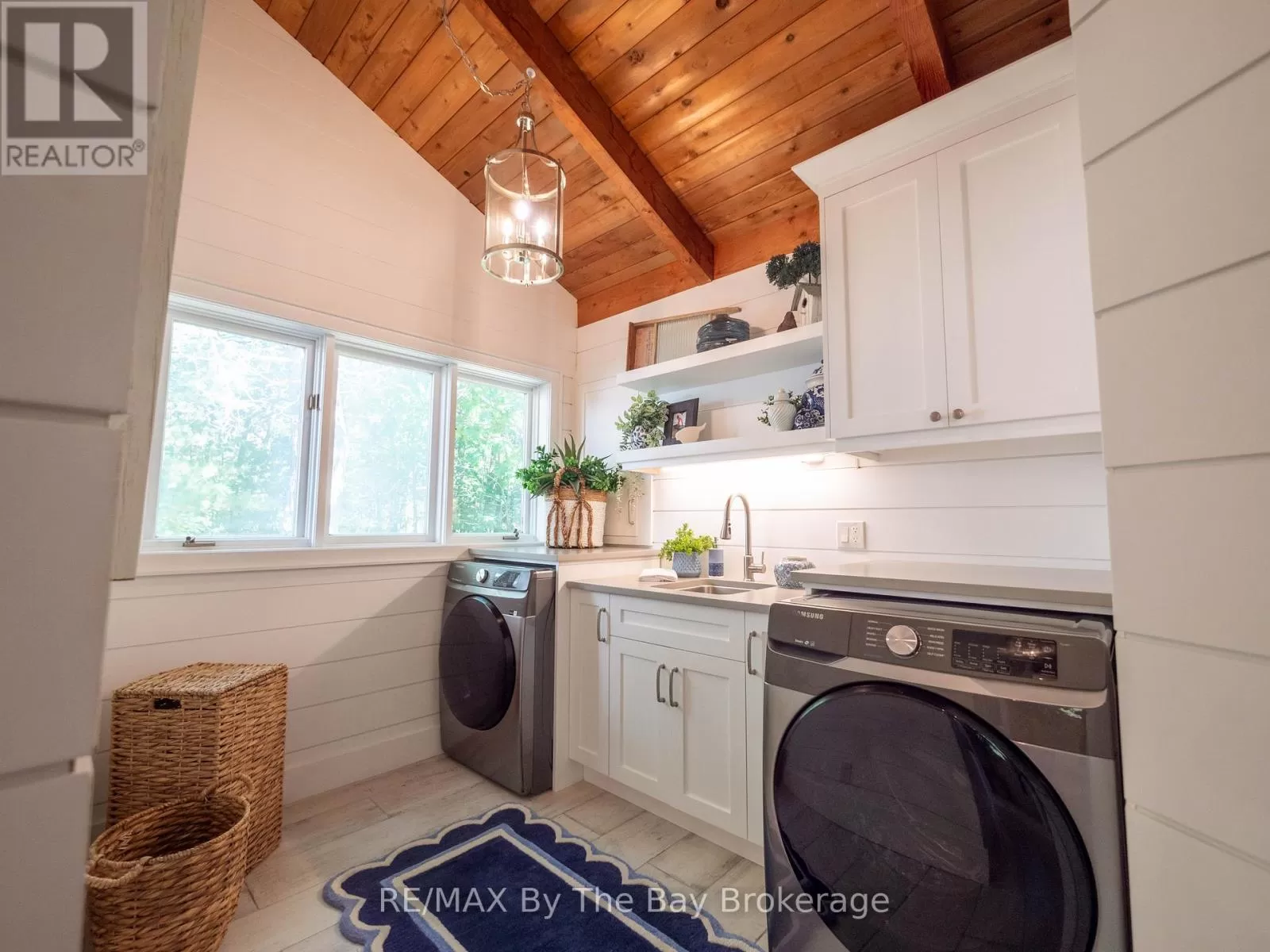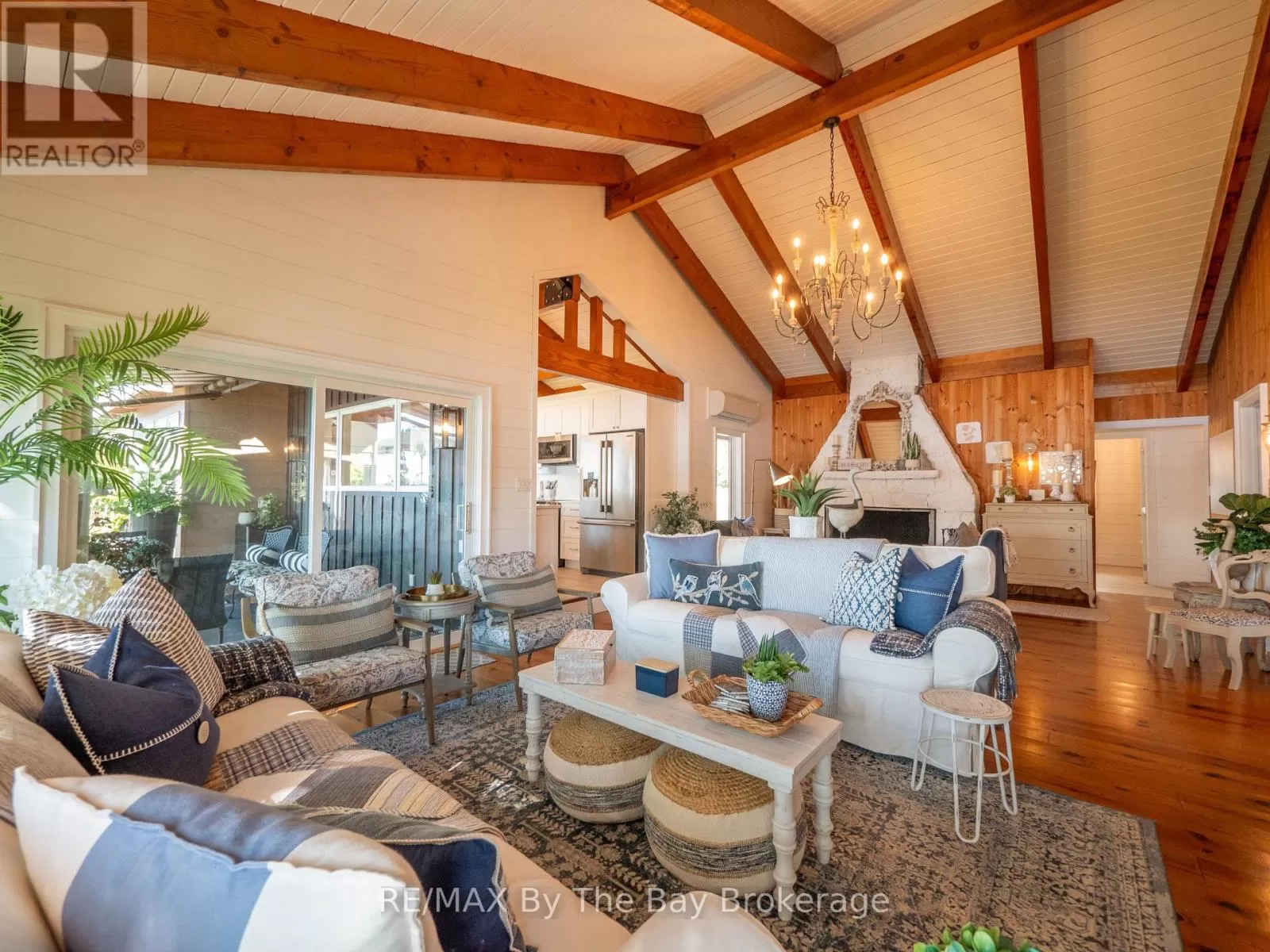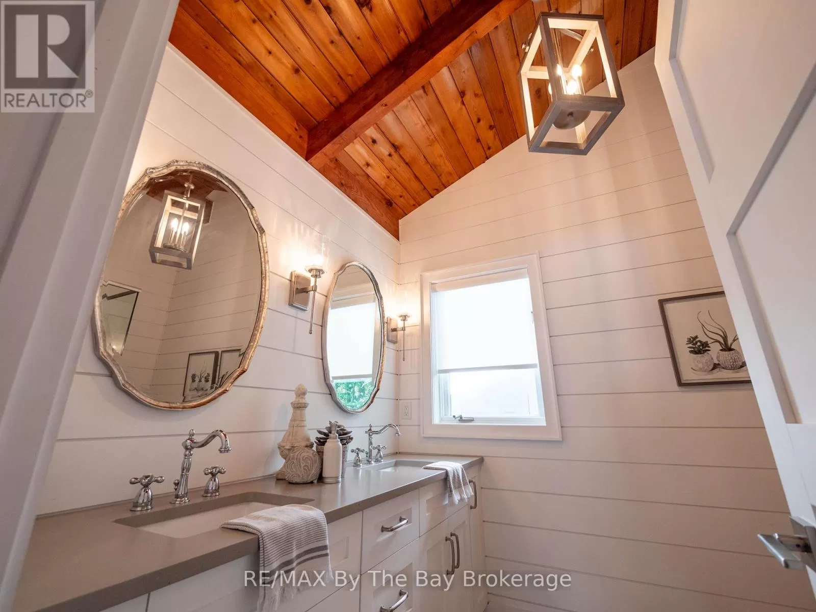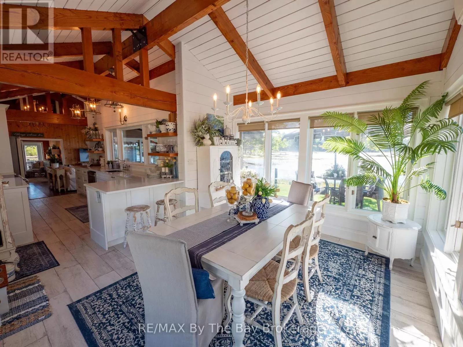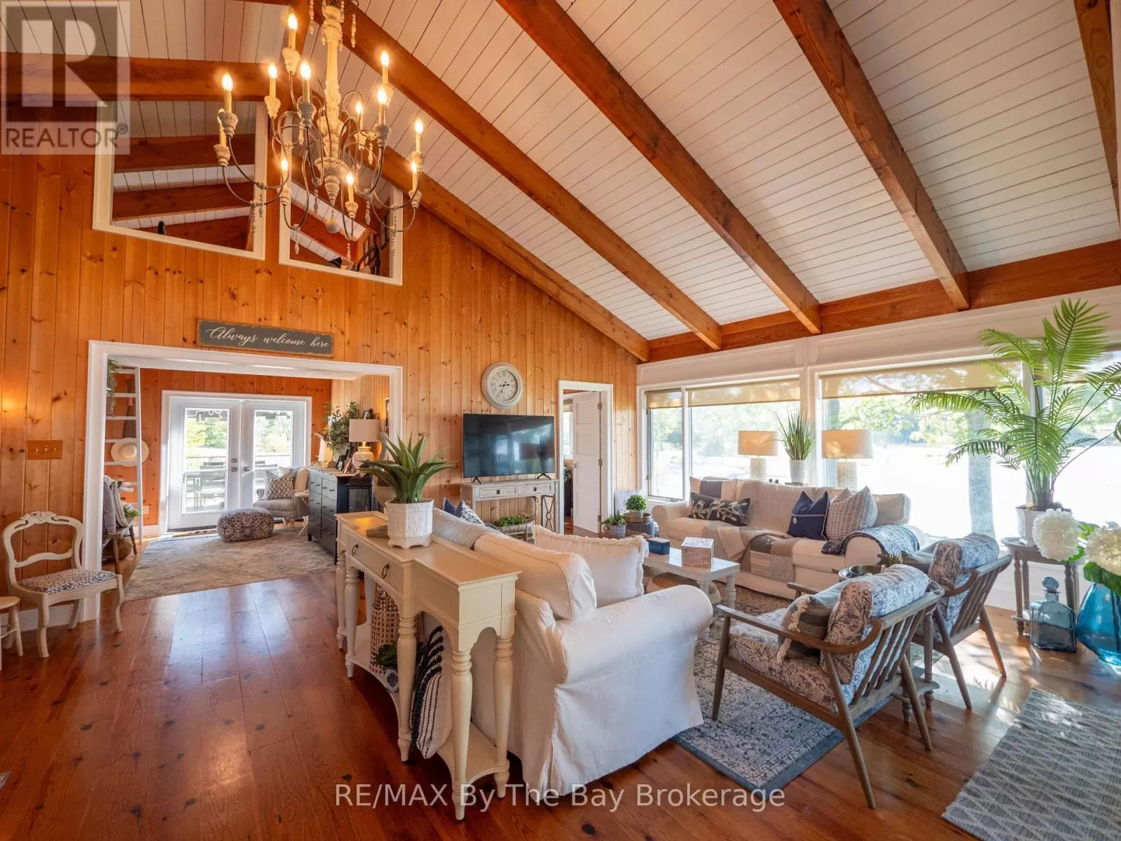 Cross Streets: By Boat. ** Directions: BY BOAT from Honey Harbour marinas, to the West end of Big Dog Channel to #4476 IS 1040, known as Little Beausoleil Island. NO sign on property. The breathtaking view of Georgian Bay, Beausoleil Island, and Roberts Island render this property an exceptional retreat.. With 295 feet of water frontage, the property features a small sandy beach, a gentle shoreline, and an extended dock that reaches deeper waters, ensuring endless enjoyment for family and friends. A well-lit path meanders from the shore to the cottage, traversing beautifully landscaped gardens and natural Georgian Bay granite outcroppings.Upon reaching the cottage, one can relax and unwind on the deck, soaking up the sun or enjoying the shade provided by the pergola. The main cottage spans 1,376 square feet and has been recently renovated, offering two bedrooms, a sleeping loft, a bathroom, and a freestanding stone fireplace. The vaulted ceilings and large windows enhance the space with abundant natural light.The kitchen is a chef's dream, featuring updated countertops, stainless steel appliances, ample storage, and exposed wooden beam ceilings. Adjacent to the kitchen, the dining room doubles as a sunroom, boasting expansive windows and generous space for entertaining. For added convenience, there is a laundry room equipped with a washer, dryer, sink, shelves, and cupboards. Additionally, a one-bedroom bunkie with a powder room and storage space provides privacy for guests, making this property an ideal getaway. (id:27476)