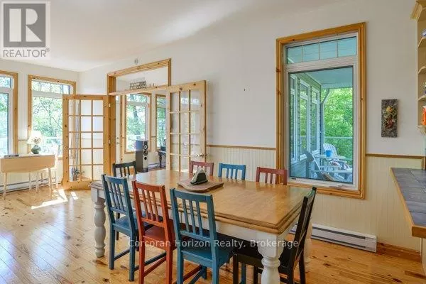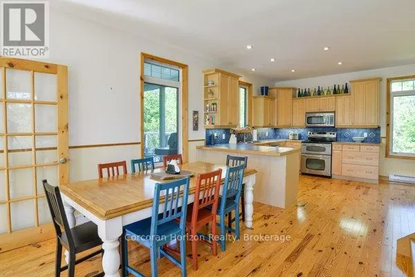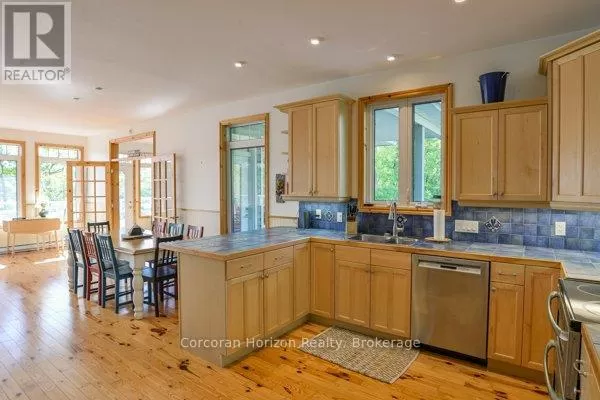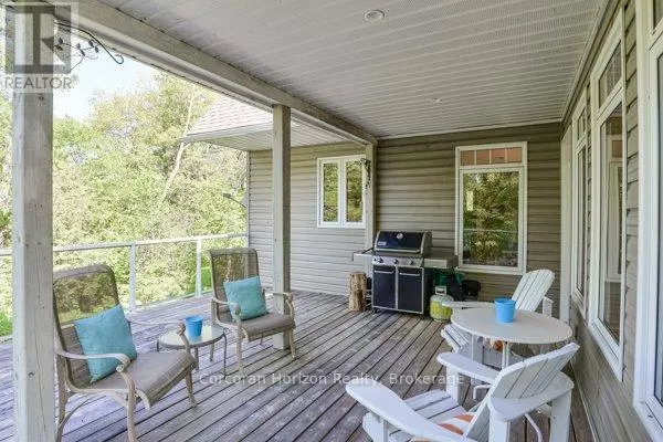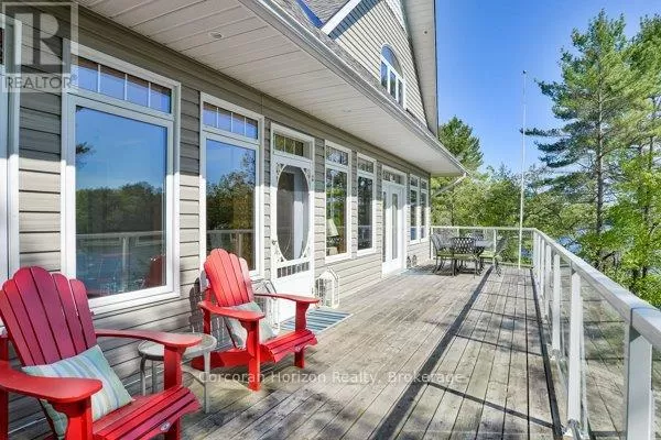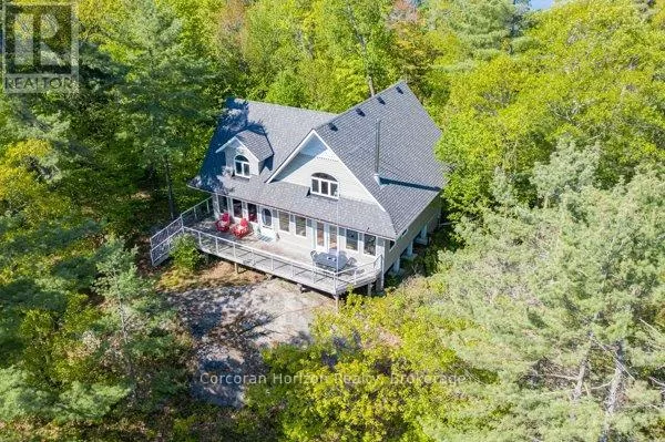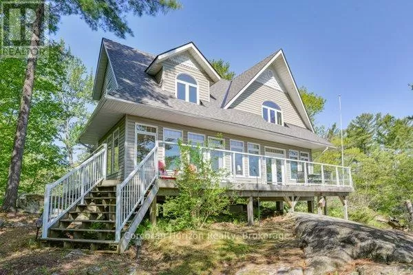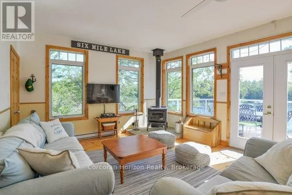 Cross Streets: Crooked bay road to Wawautosa. ** Directions: Hwy 400 North to exit 174 Crooked Bay Road to Wawautosa Marina East side of Hungry Island. Welcome to your slice of Muskoka paradise- this turn-key, 3-bedroom cottage on Six Mile Lakes Hungry Island blends classic charm with modern comfort in an unforgettable, private setting. Nestled along 192 feet of pristine shoreline and bordered by Crown land, this secluded gem offers unmatched tranquility and space to unwind. With 2,000+sq.ft. of living space and an 875 sq.ft. wraparound deck half of it covered youll have ample room to entertain, relax, and soak in the lakefront beauty. Inside, the warm wood interior and cozy wood-burning stove create the ultimate cottage ambiance, while the large kitchen with a pantry makes hosting effortless. Each of the three spacious bedrooms offers comfortable accommodations. A new roof was installed in 2021. Even better, this fully winterized cottage supports four-season living, with access to snowmobile trails in every direction step outside and ride straight into the heart of winter adventure. Outdoors, gather around a large lakeside fire pit, cast a line from your private dock with deep water docking, and enjoy excellent fishing and countless water sports on Six Mile Lake. Whether its quiet mornings on the deck, summer boating, or snow-filled weekends exploring the trails, this private retreat delivers the true Muskoka lifestyle relaxation, recreation, and natural beauty all in one stunning package. (id:27476)