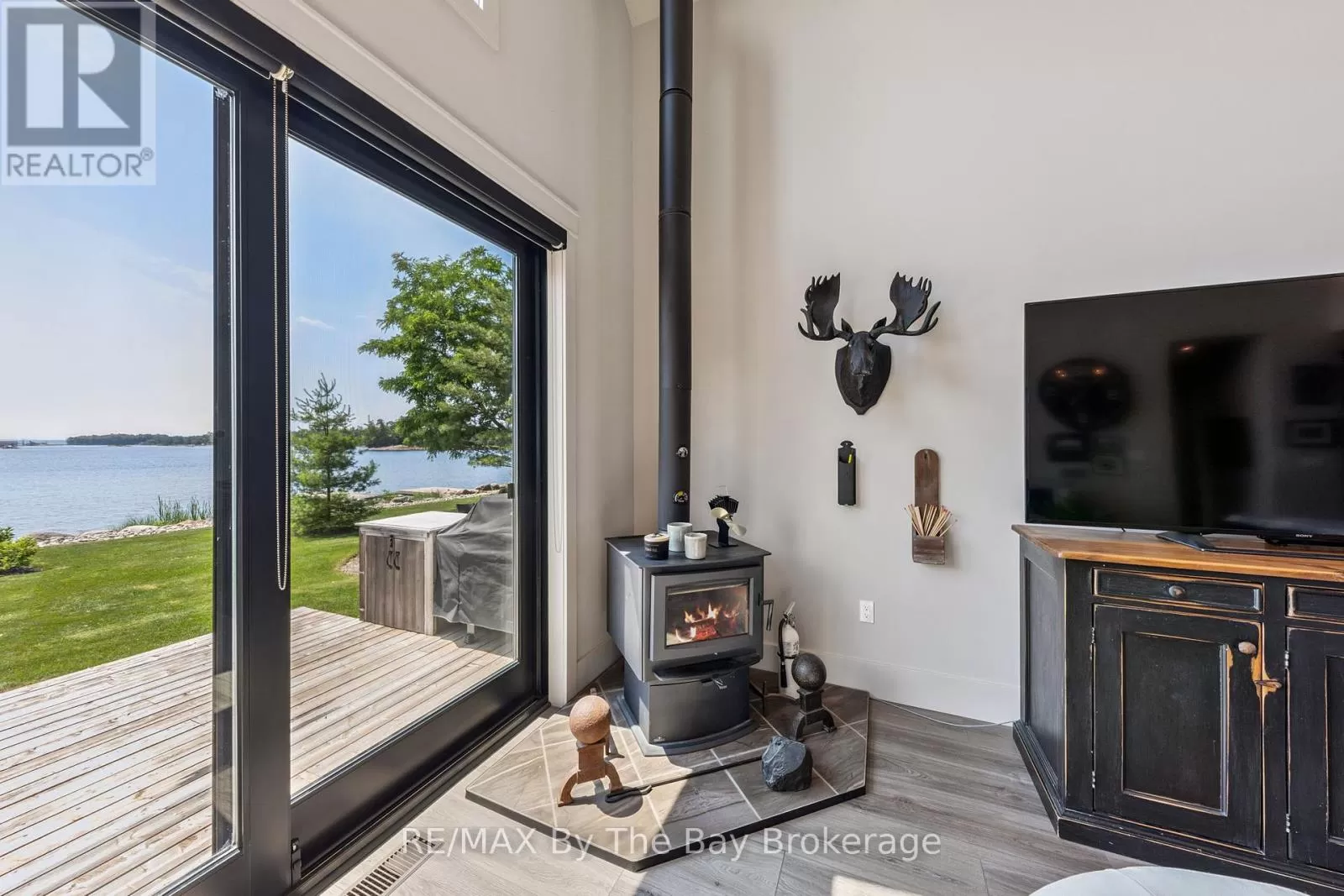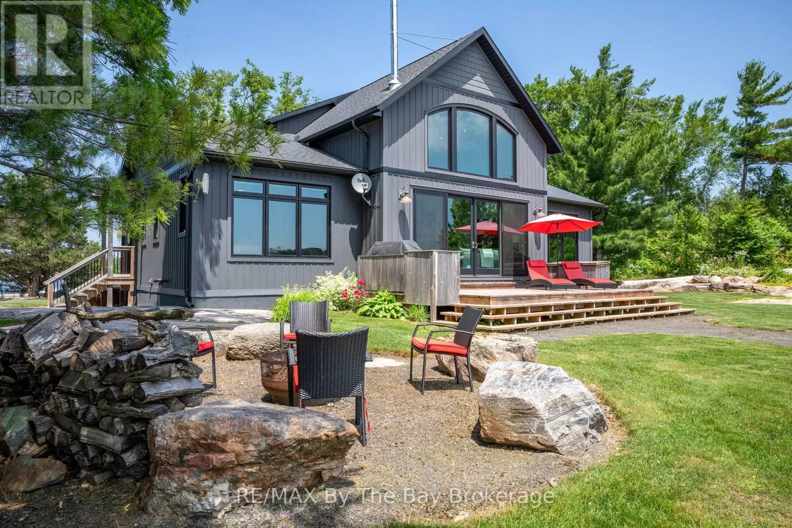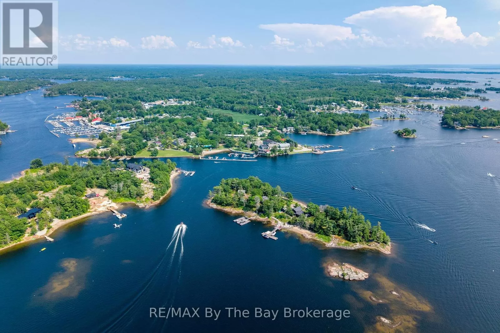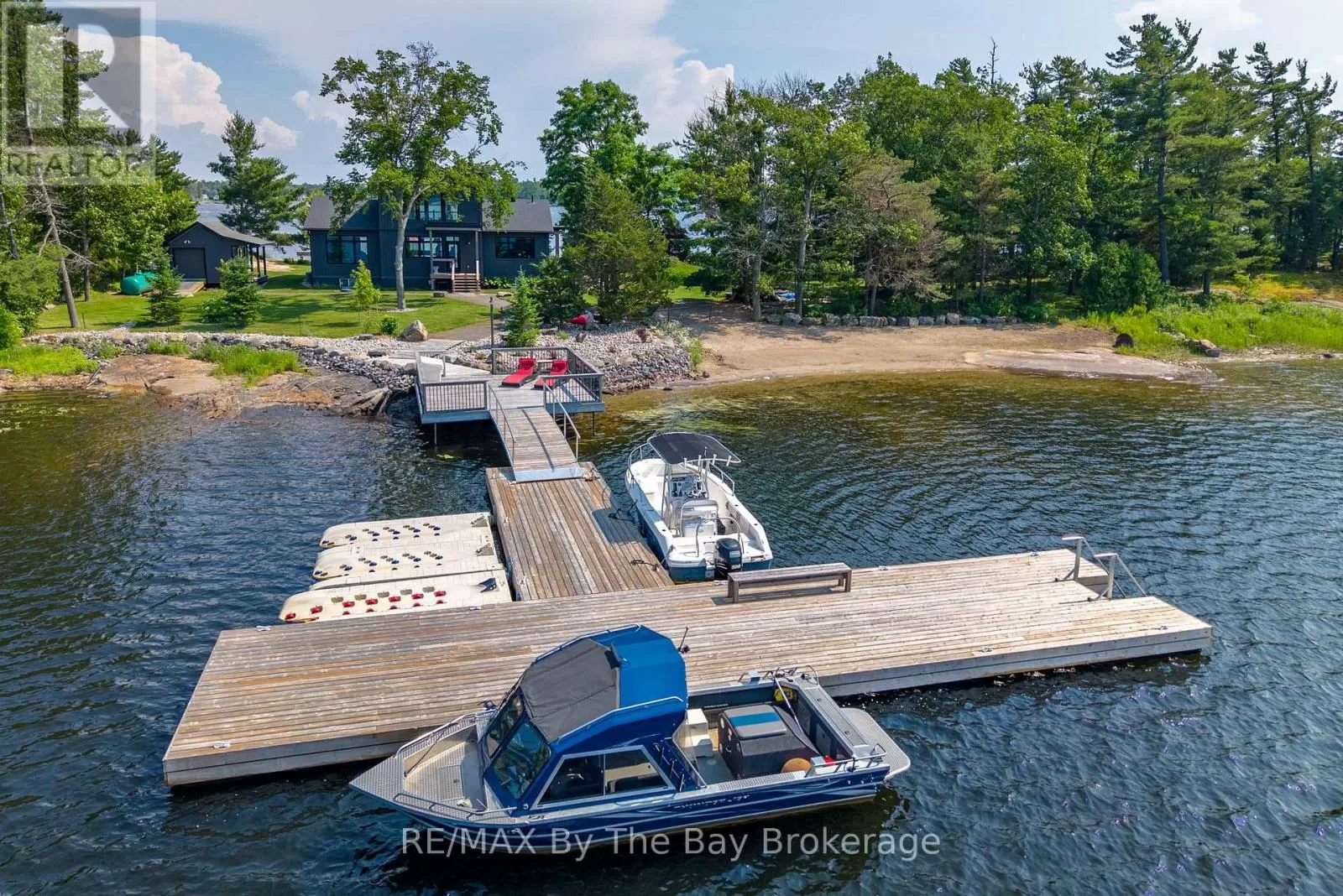 Cross Streets: Boat Access Only. ** Directions: By Boat from Honey Harbour Marina's to Island 800. Discover the idyllic charm of this picture-perfect three-bedroom cottage, which presents itself in like-new condition. Just a brief one-minute boat ride from Central Honey Harbour, this stunning four-season retreat awaits you on the picturesque Waltons Island. This beautifully designed, low-maintenance bungaloft features an open-concept layout with south, east, and north exposures, allowing for breathtaking views of Georgian Bay through every picture window. Enjoy the level, landscaped grassy areas that gracefully lead to beaches on both sides of the island. You can wander through the mature forest along beautiful walking trails, concluding your stroll at a spacious floating dock that accommodates boats up to 50 feet in a sheltered environment. Here, you can unwind with friends over drinks or take a refreshing dip in the crystal-clear waters of Georgian Bay. The property also includes a well-equipped workshop and tool shed, ideal for spending enjoyable hours on projects before gathering for memorable family dinners in the chef's kitchen. End your evenings playing board games or relaxing by a cozy wood fire. Additionally, a quaint rustic bunkie is available for guests. This island paradise is conveniently located near shopping, fuel, and local restaurants, ensuring you won't need your car keys until you reluctantly prepare to leave for home. (id:27476)