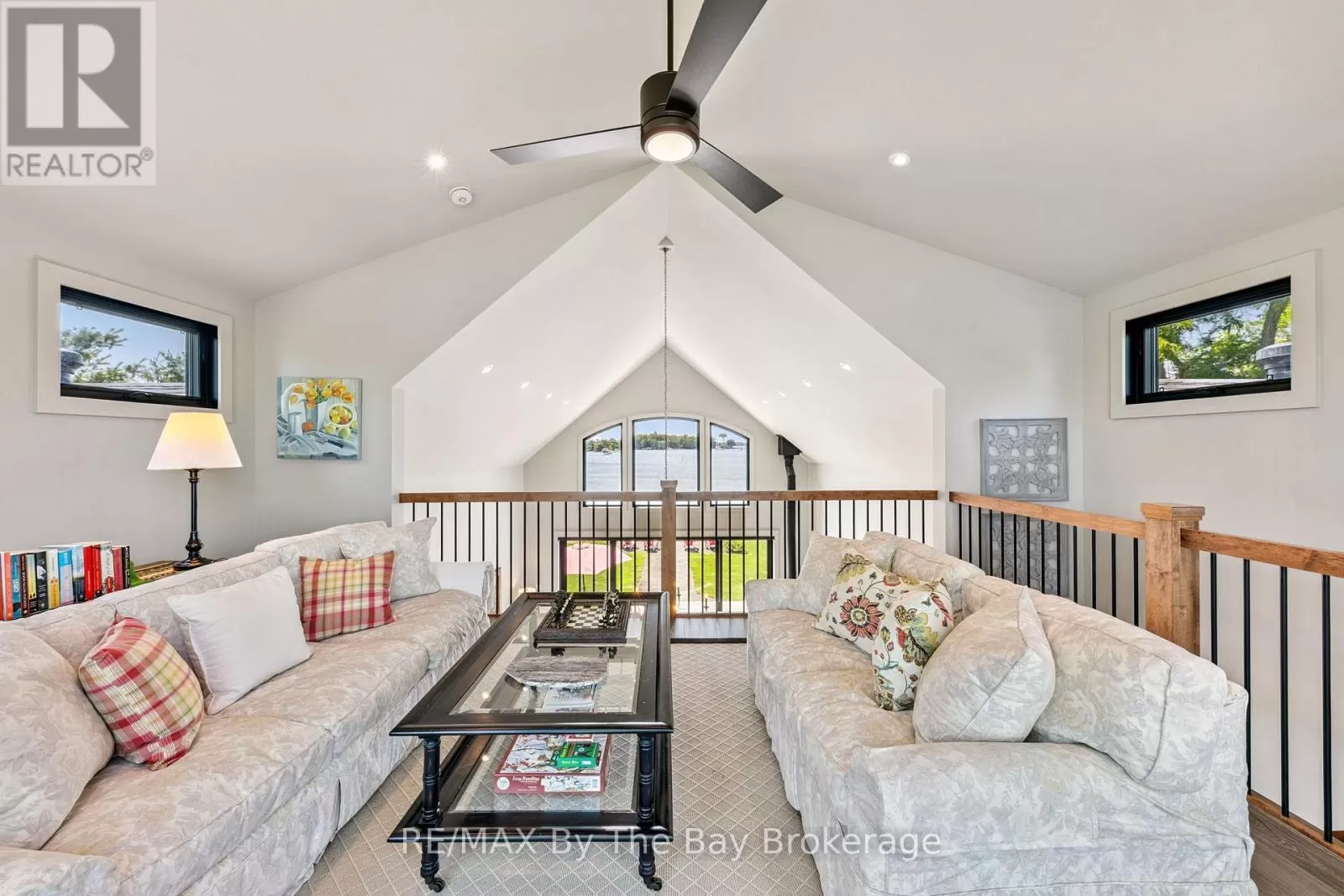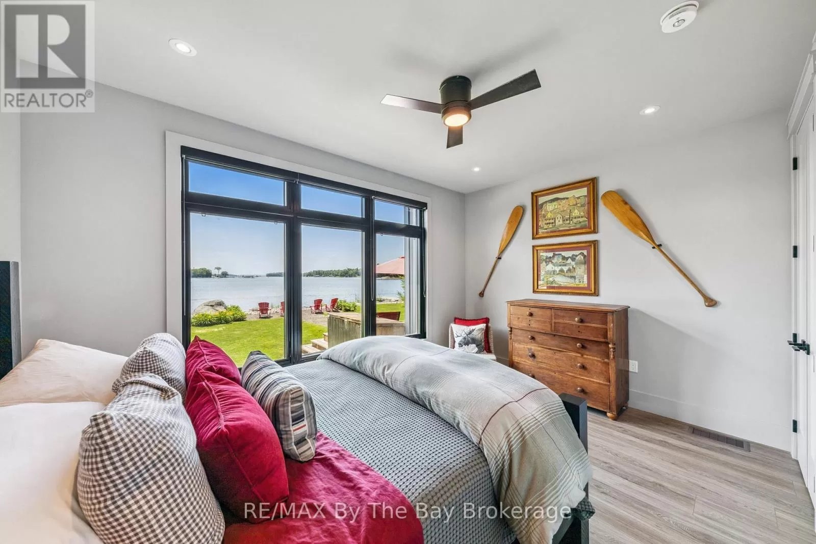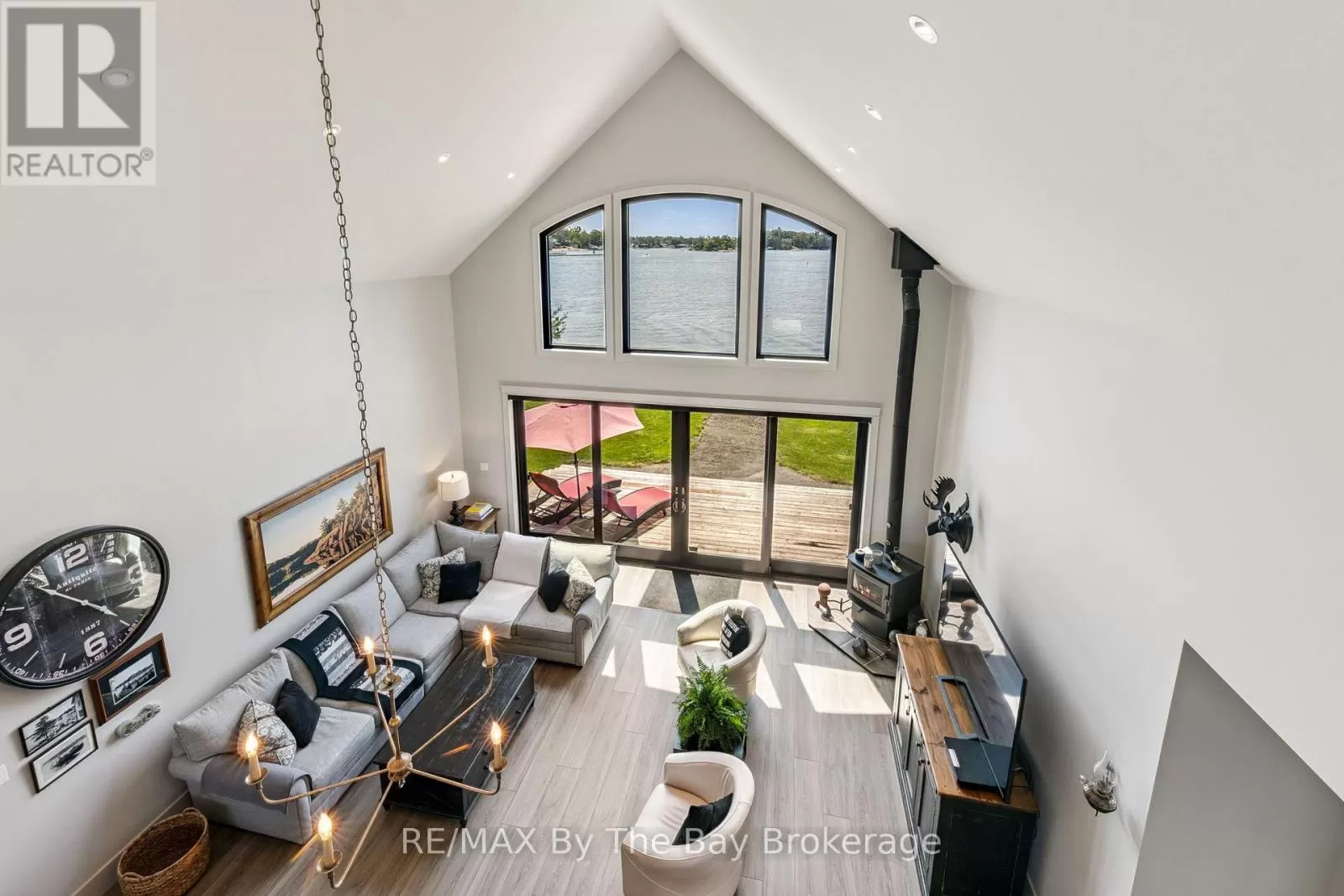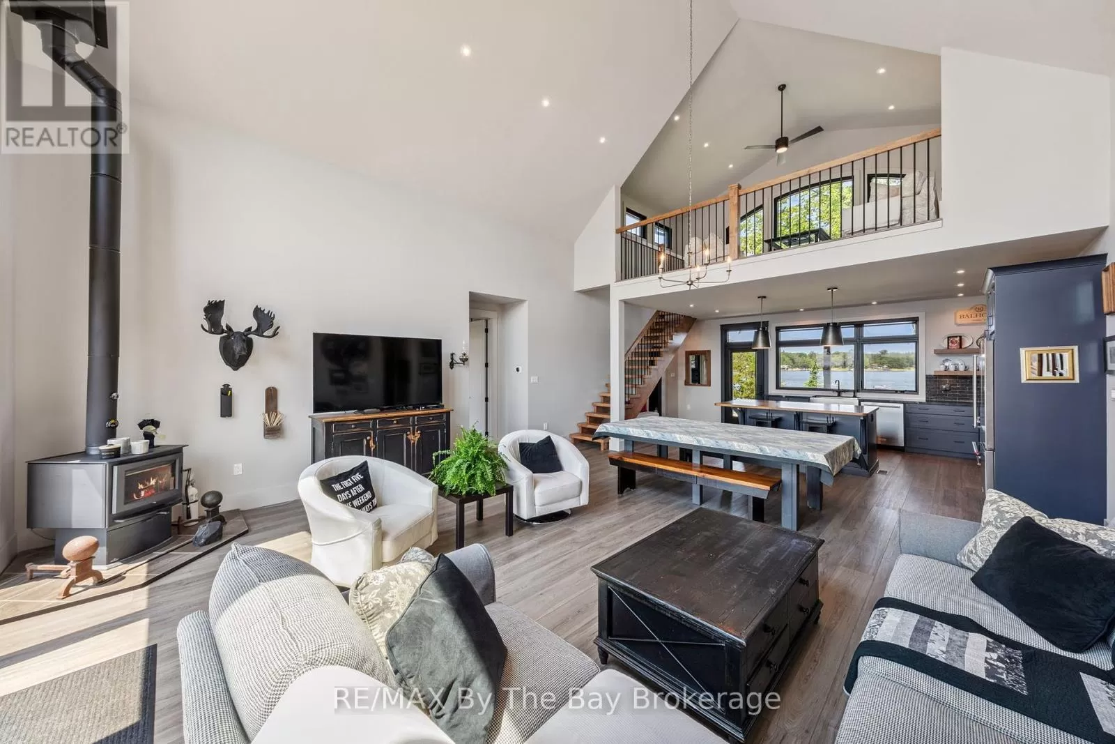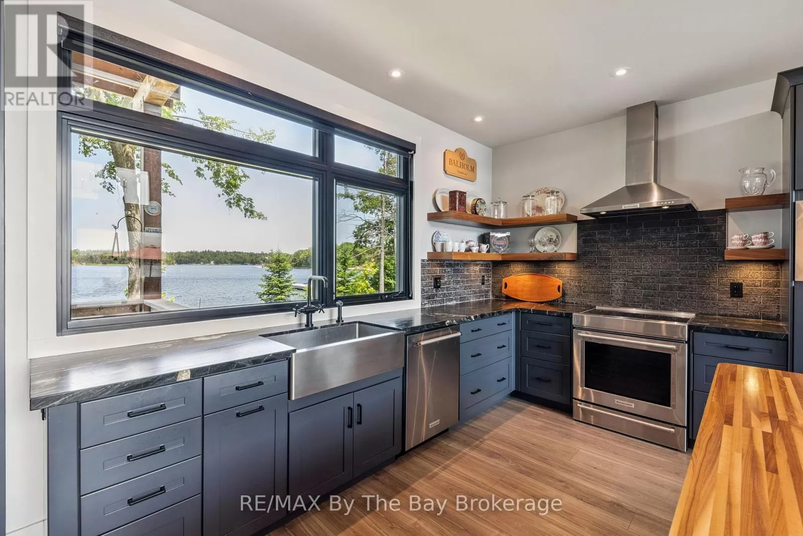 Cross Streets: Boat Access Only. ** Directions: By Boat from Honey Harbour Marina's to Island 800. Discover the idyllic charm of this picture-perfect three-bedroom cottage, which presents itself in like-new condition. Just a brief one-minute boat ride from Central Honey Harbour, this stunning four-season retreat awaits you on the picturesque Waltons Island. This beautifully designed, low-maintenance bungaloft features an open-concept layout with south, east, and north exposures, allowing for breathtaking views of Georgian Bay through every picture window. Enjoy the level, landscaped grassy areas that gracefully lead to beaches on both sides of the island. You can wander through the mature forest along beautiful walking trails, concluding your stroll at a spacious floating dock that accommodates boats up to 50 feet in a sheltered environment. Here, you can unwind with friends over drinks or take a refreshing dip in the crystal-clear waters of Georgian Bay. The property also includes a well-equipped workshop and tool shed, ideal for spending enjoyable hours on projects before gathering for memorable family dinners in the chef's kitchen. End your evenings playing board games or relaxing by a cozy wood fire. Additionally, a quaint rustic bunkie is available for guests. This island paradise is conveniently located near shopping, fuel, and local restaurants, ensuring you won't need your car keys until you reluctantly prepare to leave for home. (id:27476)