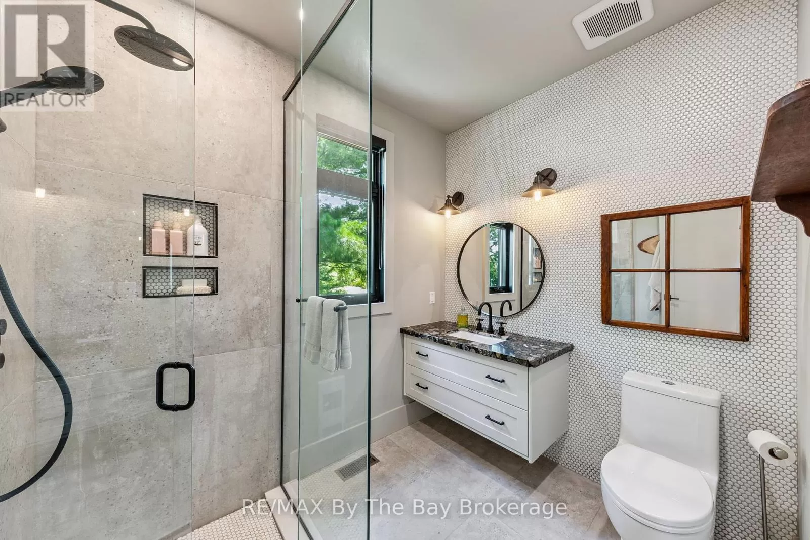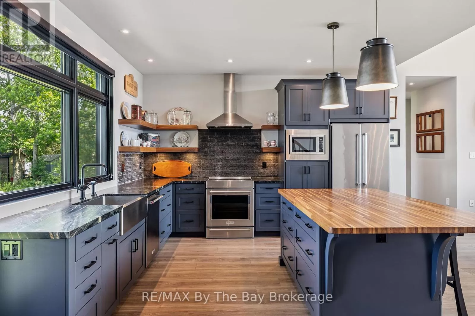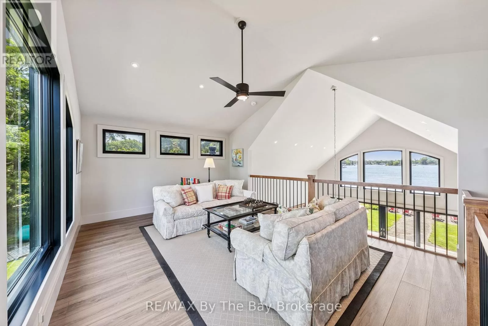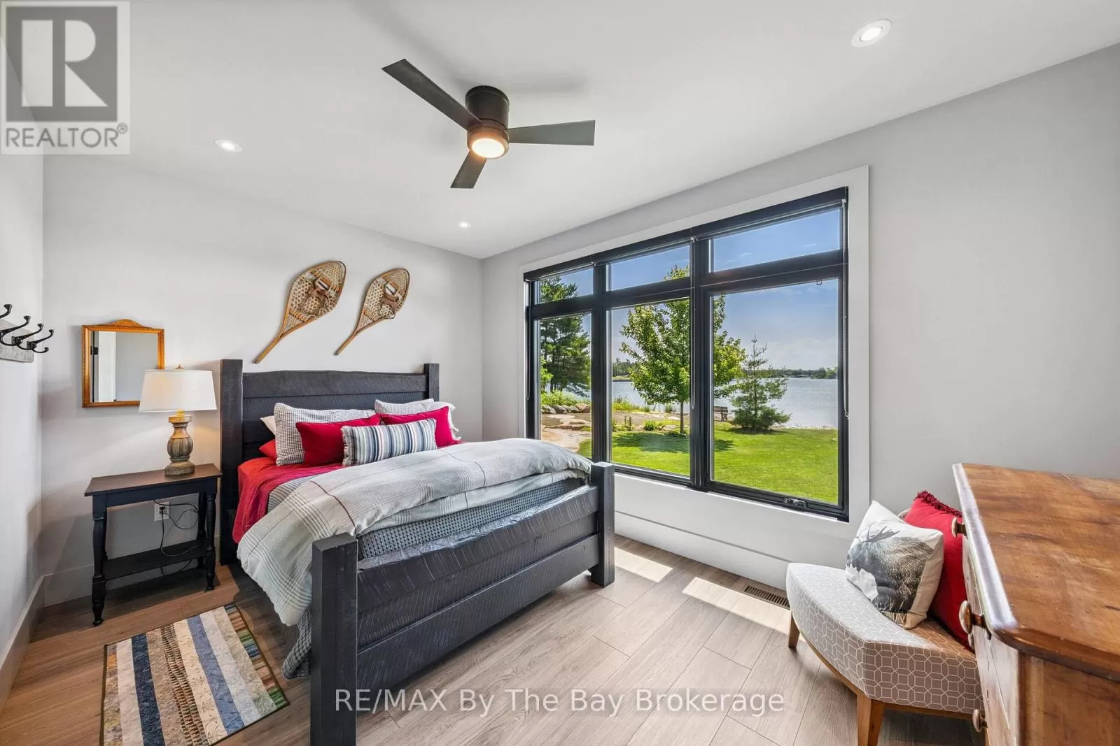 Cross Streets: Boat Access Only. ** Directions: By Boat from Honey Harbour Marina's to Island 800. Discover the idyllic charm of this picture-perfect three-bedroom cottage, which presents itself in like-new condition. Just a brief one-minute boat ride from Central Honey Harbour, this stunning four-season retreat awaits you on the picturesque Waltons Island. This beautifully designed, low-maintenance bungaloft features an open-concept layout with south, east, and north exposures, allowing for breathtaking views of Georgian Bay through every picture window. Enjoy the level, landscaped grassy areas that gracefully lead to beaches on both sides of the island. You can wander through the mature forest along beautiful walking trails, concluding your stroll at a spacious floating dock that accommodates boats up to 50 feet in a sheltered environment. Here, you can unwind with friends over drinks or take a refreshing dip in the crystal-clear waters of Georgian Bay. The property also includes a well-equipped workshop and tool shed, ideal for spending enjoyable hours on projects before gathering for memorable family dinners in the chef's kitchen. End your evenings playing board games or relaxing by a cozy wood fire. Additionally, a quaint rustic bunkie is available for guests. This island paradise is conveniently located near shopping, fuel, and local restaurants, ensuring you won't need your car keys until you reluctantly prepare to leave for home. (id:27476)