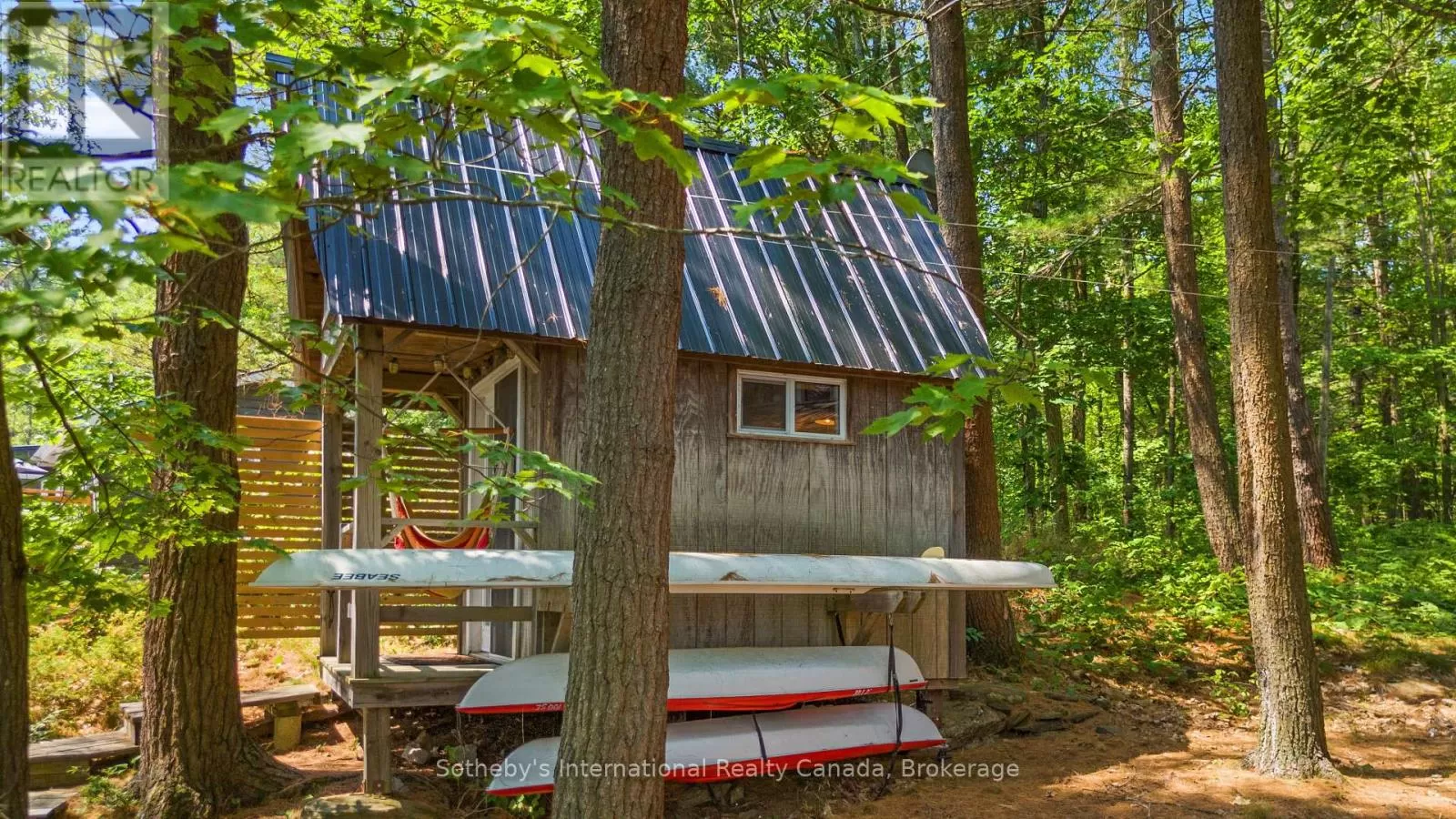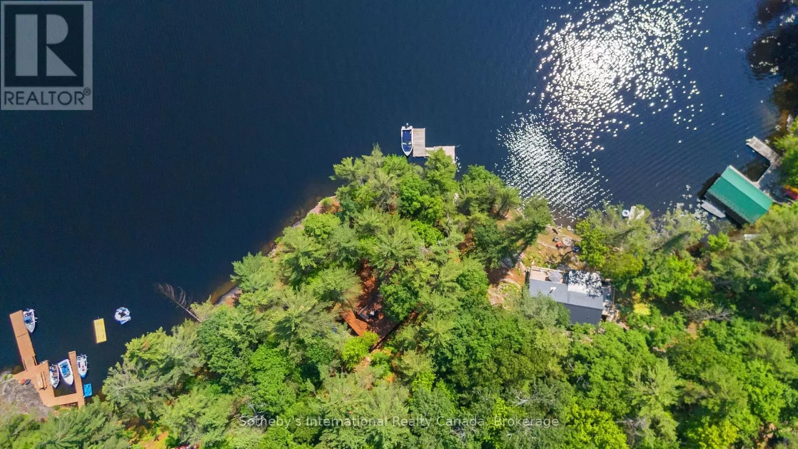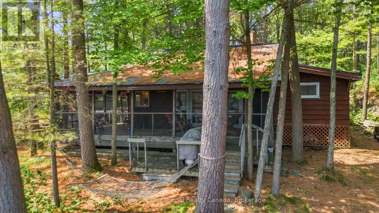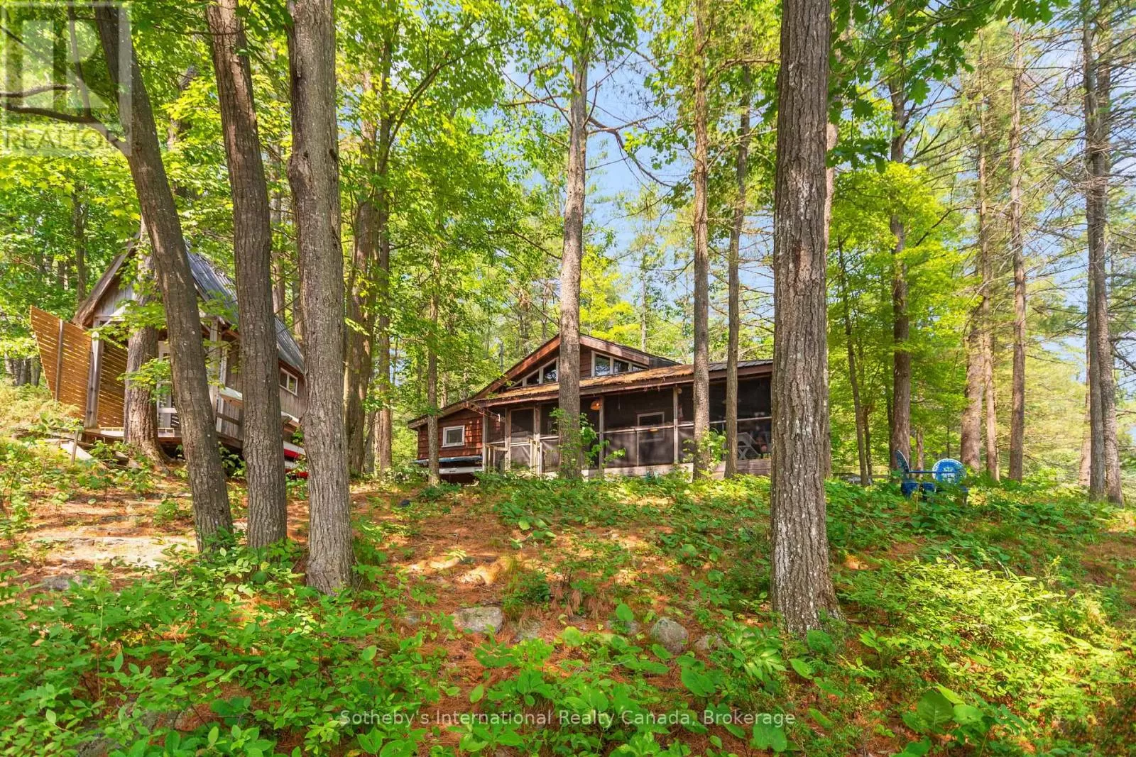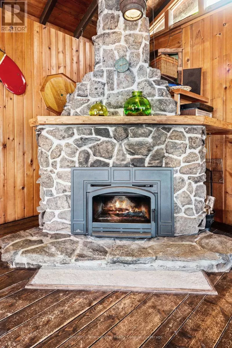 Cross Streets: Highway 400 and Go home Lake Rd. ** Directions: Highway 400 to Go Home Lake Road to Go Home Lake Marina. By boat to Heart Bay. Welcome to your own private retreat on a picturesque point of land offering 188 feet of pristine shoreline and 1.41 acres of natural beauty. Accessible by boat only and just 8 minutes from the marina, this exceptional property offers peace, privacy, and the perfect setting for creating unforgettable memories with family and friends.The charming 3-bedroom cottage features soaring vaulted ceilings and an open-concept layout combining the living room, dining area, and updated kitchen. A striking stone fireplace anchors the space, creating a cozy and inviting atmosphere. The expansive wraparound screened-in porch spans two sides of the cottage perfect for entertaining, dining, or simply enjoying the gentle breezes and views. A 3 piece bathroom with laundry add convenience, while a separate bunkie with a sleeping loft provides ample space for guests. Down by the water, you'll find large docks with a covered gazebo section ideal for lounging in the shade, watching the sunset, or enjoying the excellent swimming with a sand and rock bottom shoreline. Included in the sale are a Searay bowrider, aluminum boat, two kayaks, paddle boat, and windsurfer - everything you need to start enjoying the cottage lifestyle immediately. A rare offering on a desirable stretch of shoreline. Don't miss this unique opportunity to own a fully-equipped, turnkey waterfront escape. (id:27476)