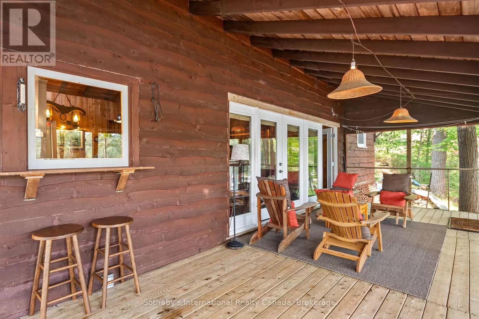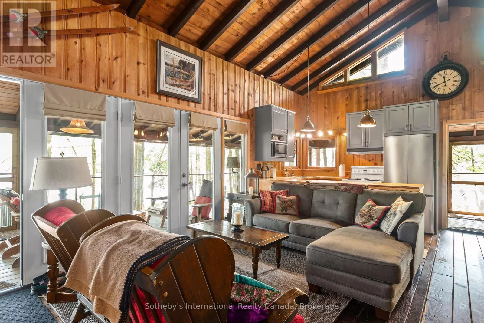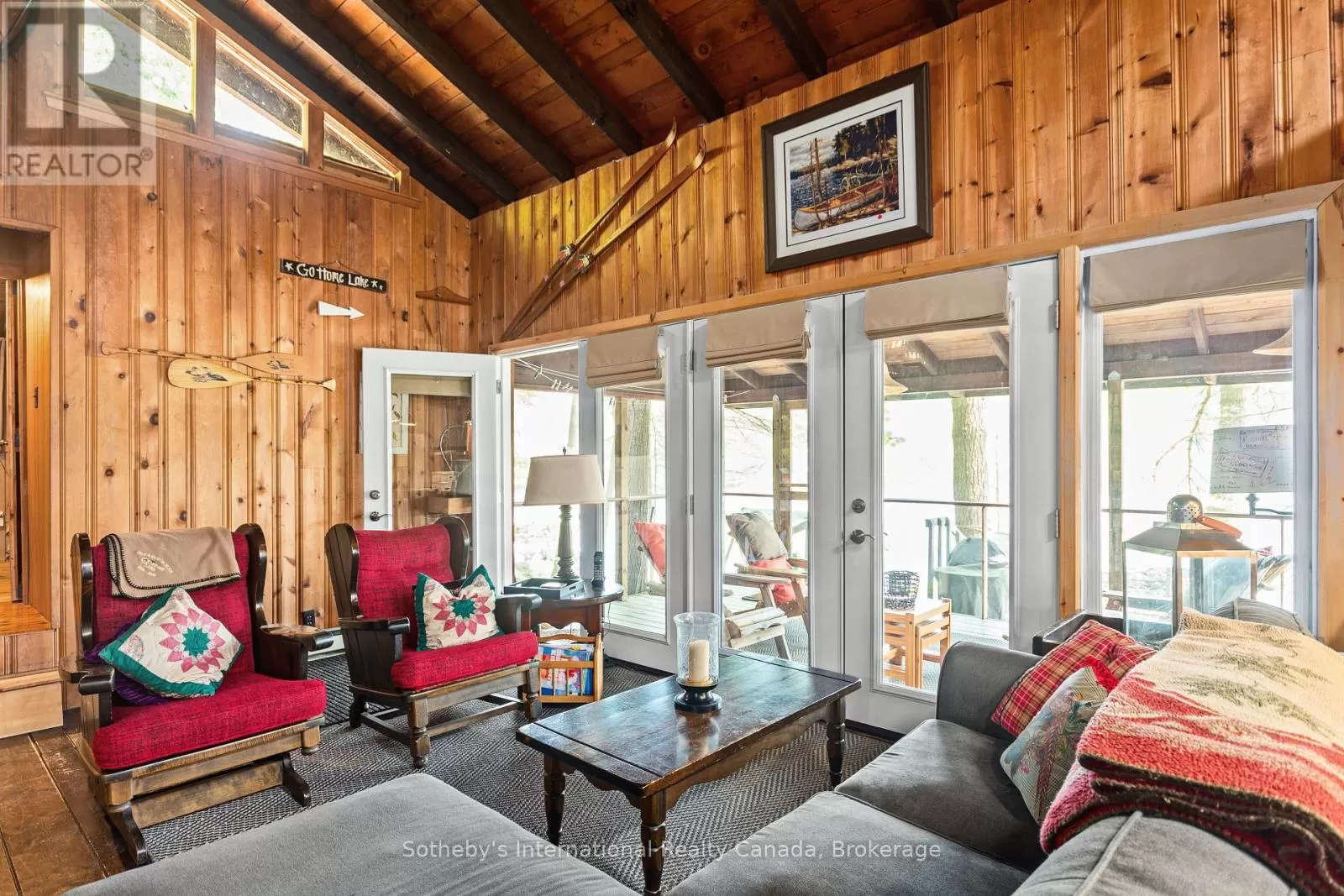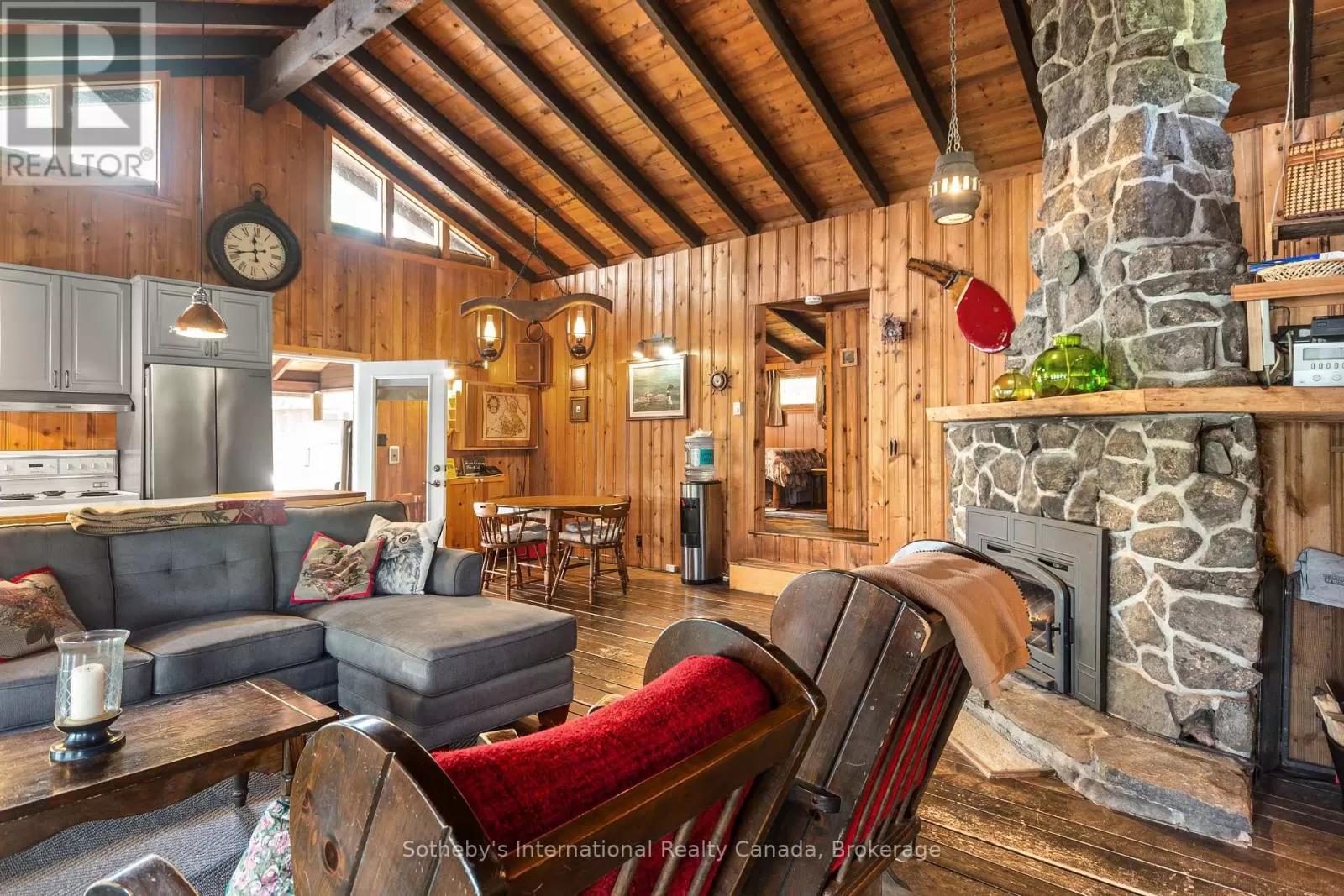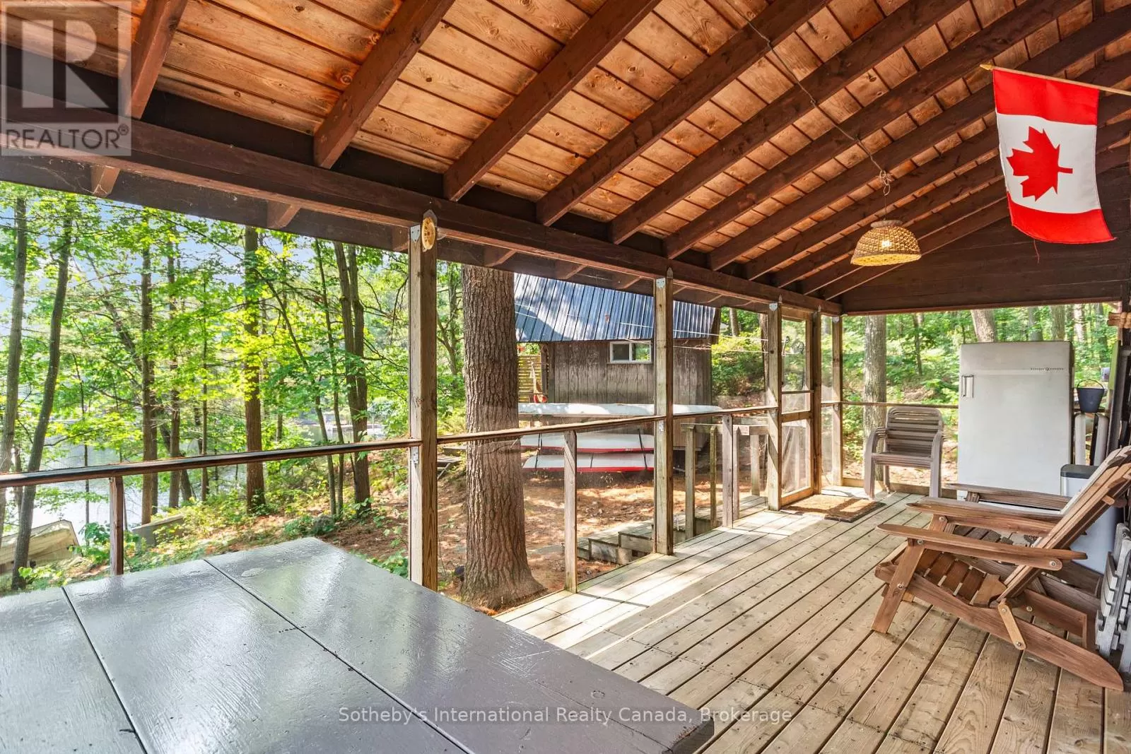 Cross Streets: Highway 400 and Go home Lake Rd. ** Directions: Highway 400 to Go Home Lake Road to Go Home Lake Marina. By boat to Heart Bay. Welcome to your own private retreat on a picturesque point of land offering 188 feet of pristine shoreline and 1.41 acres of natural beauty. Accessible by boat only and just 8 minutes from the marina, this exceptional property offers peace, privacy, and the perfect setting for creating unforgettable memories with family and friends.The charming 3-bedroom cottage features soaring vaulted ceilings and an open-concept layout combining the living room, dining area, and updated kitchen. A striking stone fireplace anchors the space, creating a cozy and inviting atmosphere. The expansive wraparound screened-in porch spans two sides of the cottage perfect for entertaining, dining, or simply enjoying the gentle breezes and views. A 3 piece bathroom with laundry add convenience, while a separate bunkie with a sleeping loft provides ample space for guests. Down by the water, you'll find large docks with a covered gazebo section ideal for lounging in the shade, watching the sunset, or enjoying the excellent swimming with a sand and rock bottom shoreline. Included in the sale are a Searay bowrider, aluminum boat, two kayaks, paddle boat, and windsurfer - everything you need to start enjoying the cottage lifestyle immediately. A rare offering on a desirable stretch of shoreline. Don't miss this unique opportunity to own a fully-equipped, turnkey waterfront escape. (id:27476)