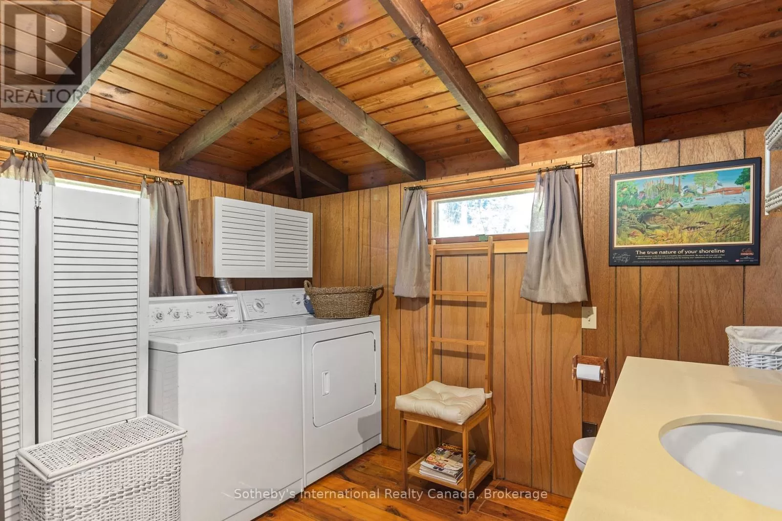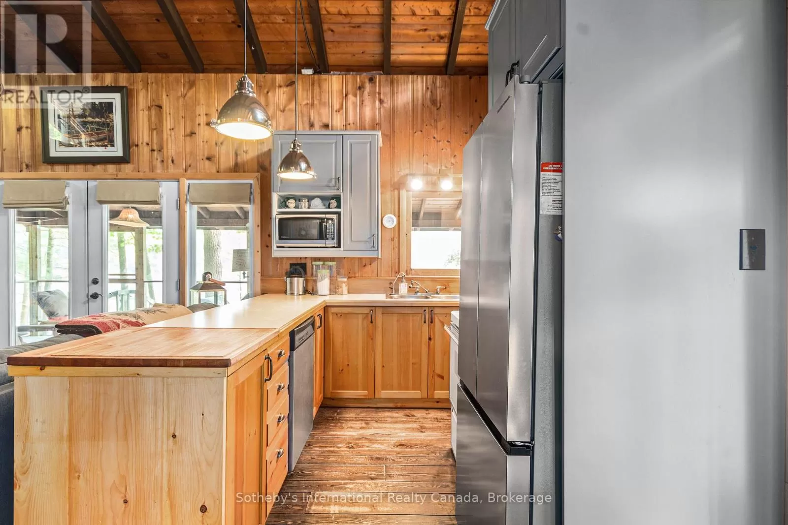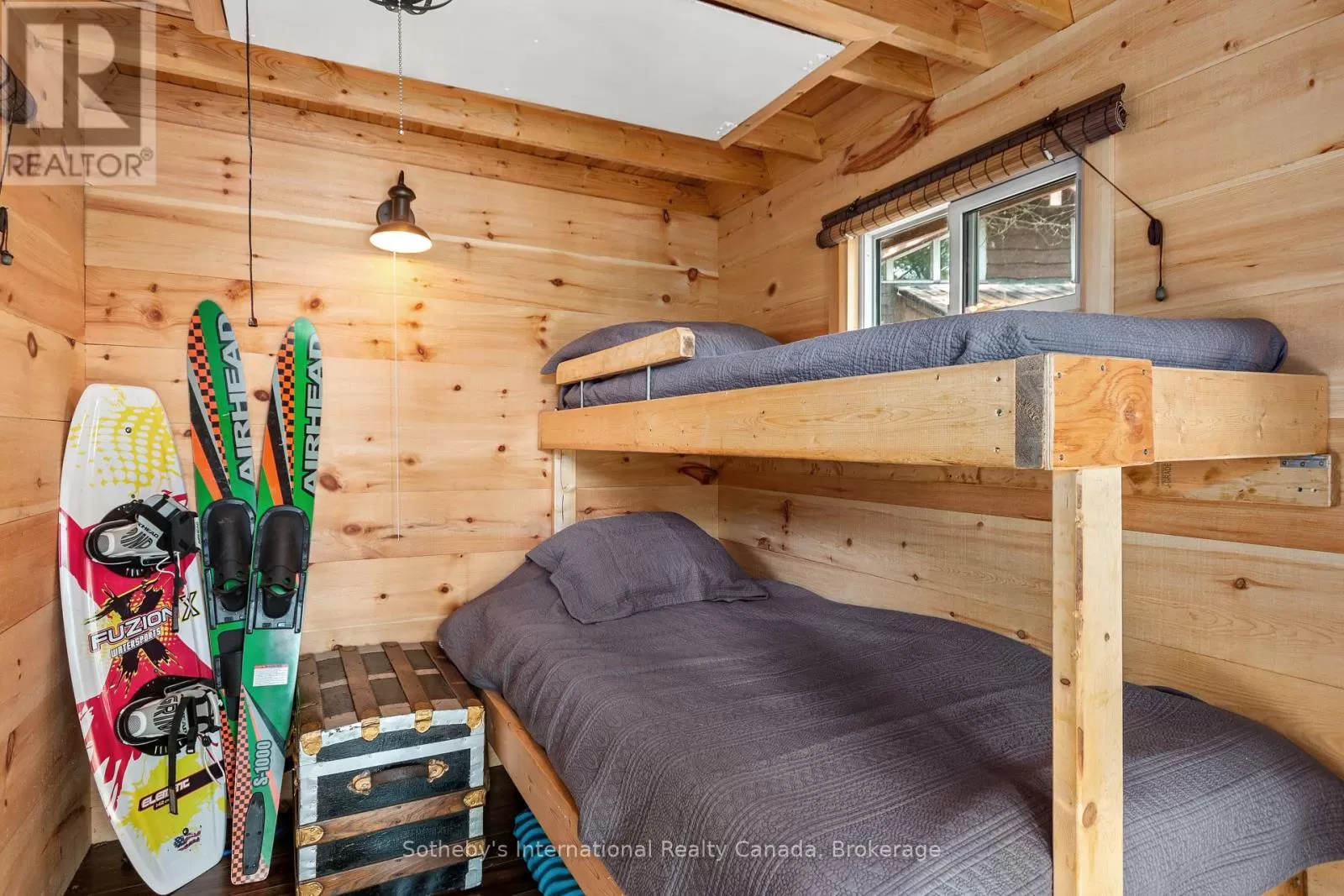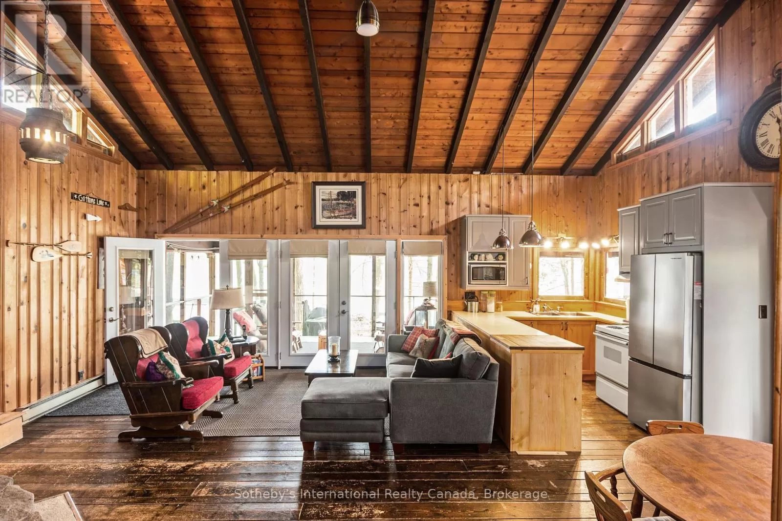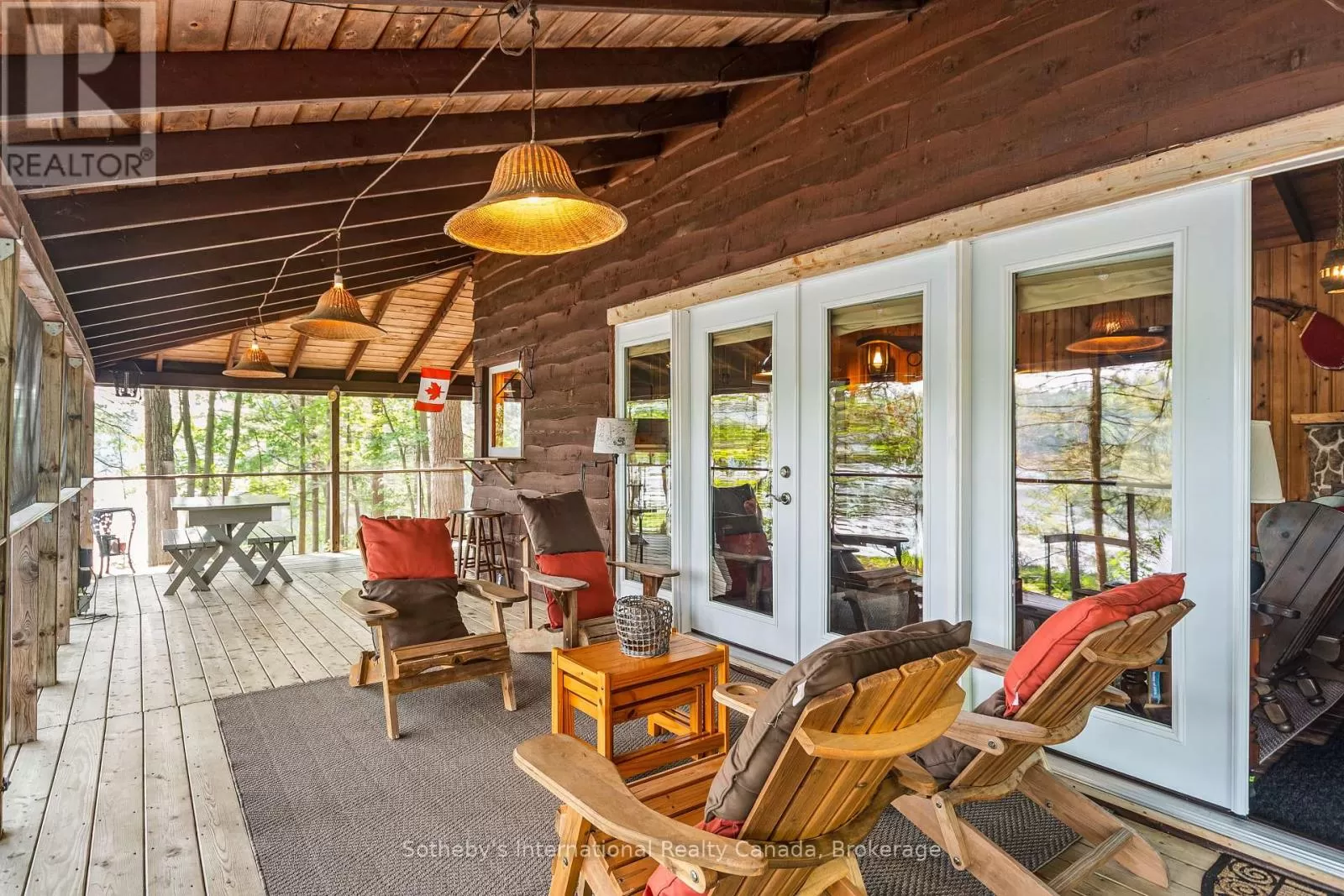 Cross Streets: Highway 400 and Go home Lake Rd. ** Directions: Highway 400 to Go Home Lake Road to Go Home Lake Marina. By boat to Heart Bay. Welcome to your own private retreat on a picturesque point of land offering 188 feet of pristine shoreline and 1.41 acres of natural beauty. Accessible by boat only and just 8 minutes from the marina, this exceptional property offers peace, privacy, and the perfect setting for creating unforgettable memories with family and friends.The charming 3-bedroom cottage features soaring vaulted ceilings and an open-concept layout combining the living room, dining area, and updated kitchen. A striking stone fireplace anchors the space, creating a cozy and inviting atmosphere. The expansive wraparound screened-in porch spans two sides of the cottage perfect for entertaining, dining, or simply enjoying the gentle breezes and views. A 3 piece bathroom with laundry add convenience, while a separate bunkie with a sleeping loft provides ample space for guests. Down by the water, you'll find large docks with a covered gazebo section ideal for lounging in the shade, watching the sunset, or enjoying the excellent swimming with a sand and rock bottom shoreline. Included in the sale are a Searay bowrider, aluminum boat, two kayaks, paddle boat, and windsurfer - everything you need to start enjoying the cottage lifestyle immediately. A rare offering on a desirable stretch of shoreline. Don't miss this unique opportunity to own a fully-equipped, turnkey waterfront escape. (id:27476)