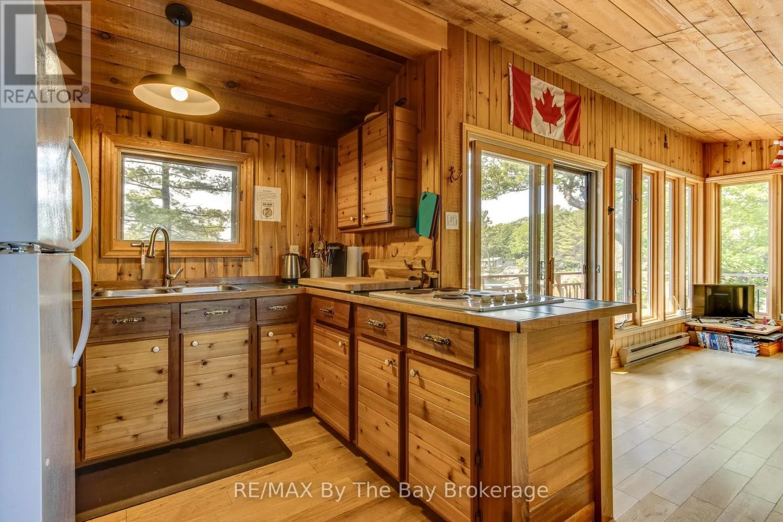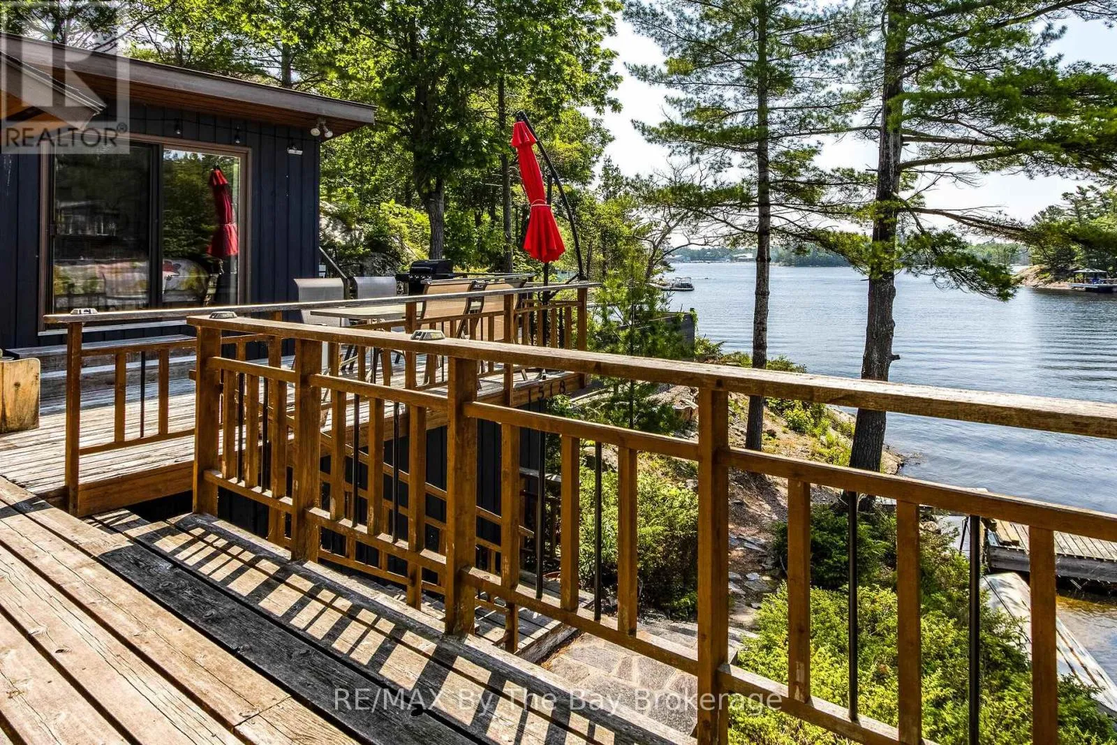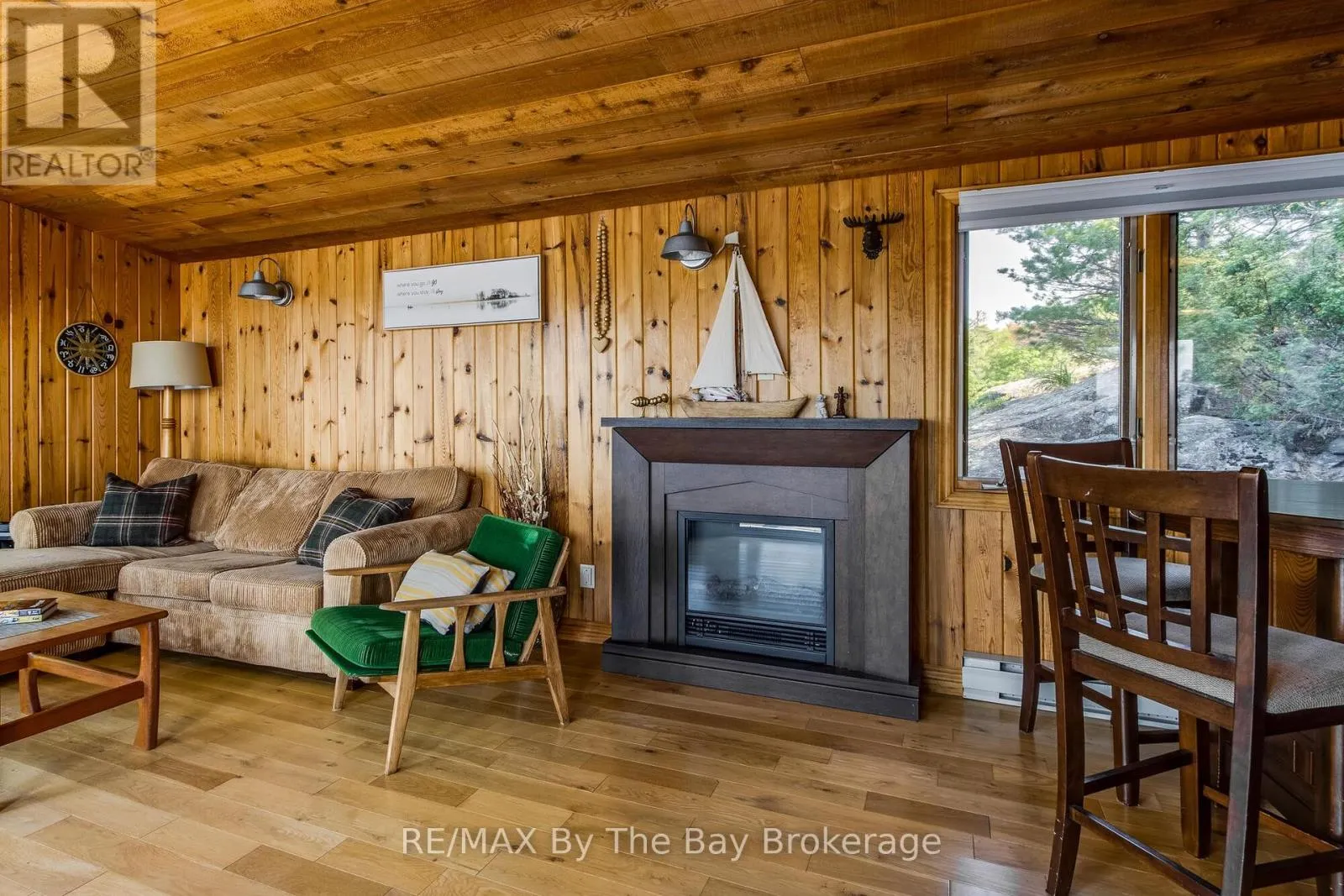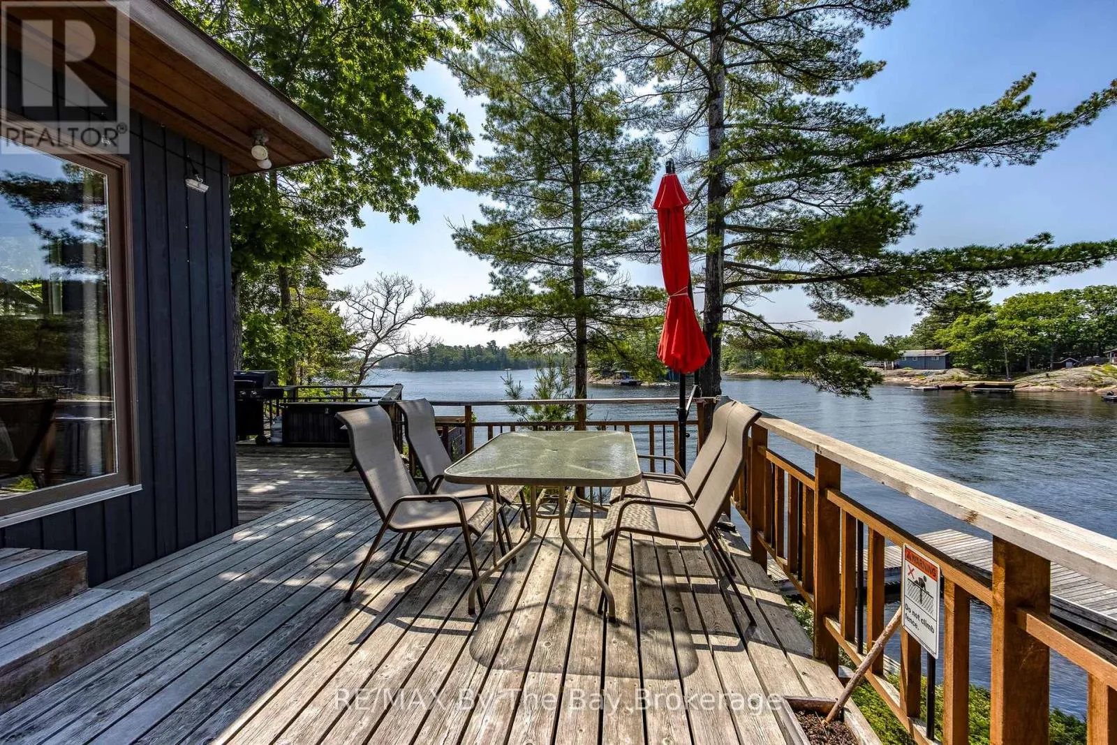 Cross Streets: BY BOAT ONLY. ** Directions: By Boat from Honey Harbour Marina's to Island 1040 (Little Beausoleil Island) to #1518). Escape to your own private paradise on this stunning Georgian Bay Island get away. This charming 2-bedroom, 1-bathroom cottage offers the perfect blend of rustic elegance and modern comfort.The property features beautiful granite outcroppings that create natural landscaping, while the forest provides privacy and tranquility. Large decks offer various vantage points to soak in the water views and spectacular sunsets. A bunkie provides additional private sleeping space for guests or can serve as a peaceful meditation retreat.Your dock awaits, ready for morning swims, afternoon fishing expeditions, or simply dangling your feet in the refreshing Georgian Bay waters. The swimming here is exceptional, with clear waters perfect for both leisurely floating and refreshing dips.Located conveniently close to Honey Harbour marina, you'll have easy access to supplies and services while maintaining that coveted island seclusion. This proximity means less time traveling and more time relaxing in your waterfront haven.The lot size or just over 3 acres ensures plenty of room for outdoor activities, whether you're hosting summer barbecues, playing games, or simply enjoying quiet moments in nature. Georgian Bay's renowned beauty surrounds you, offering endless opportunities for kayaking, boating, and exploring nearby attractions.This island property delivers the ultimate combination of adventure and relaxation. Wake up to loon calls and spend evenings gathered around crackling fires under star-filled skies. Here, every day feels like vacation, and the stresses of mainland life seem wonderfully distant. (id:27476)