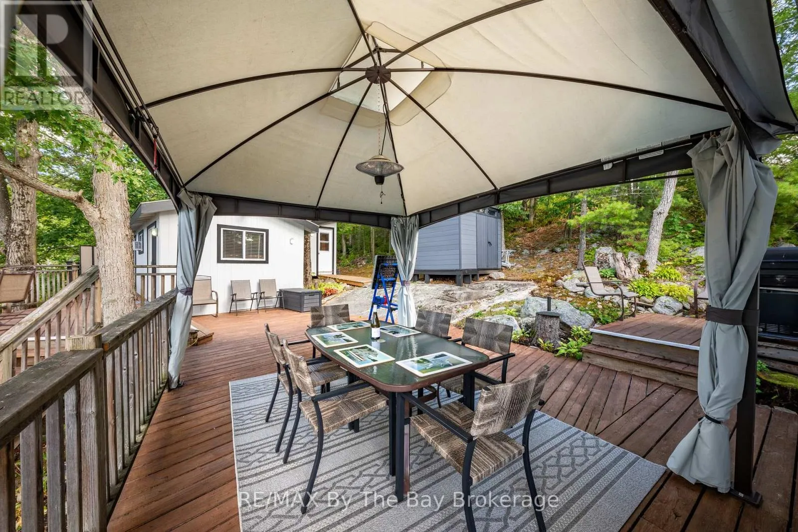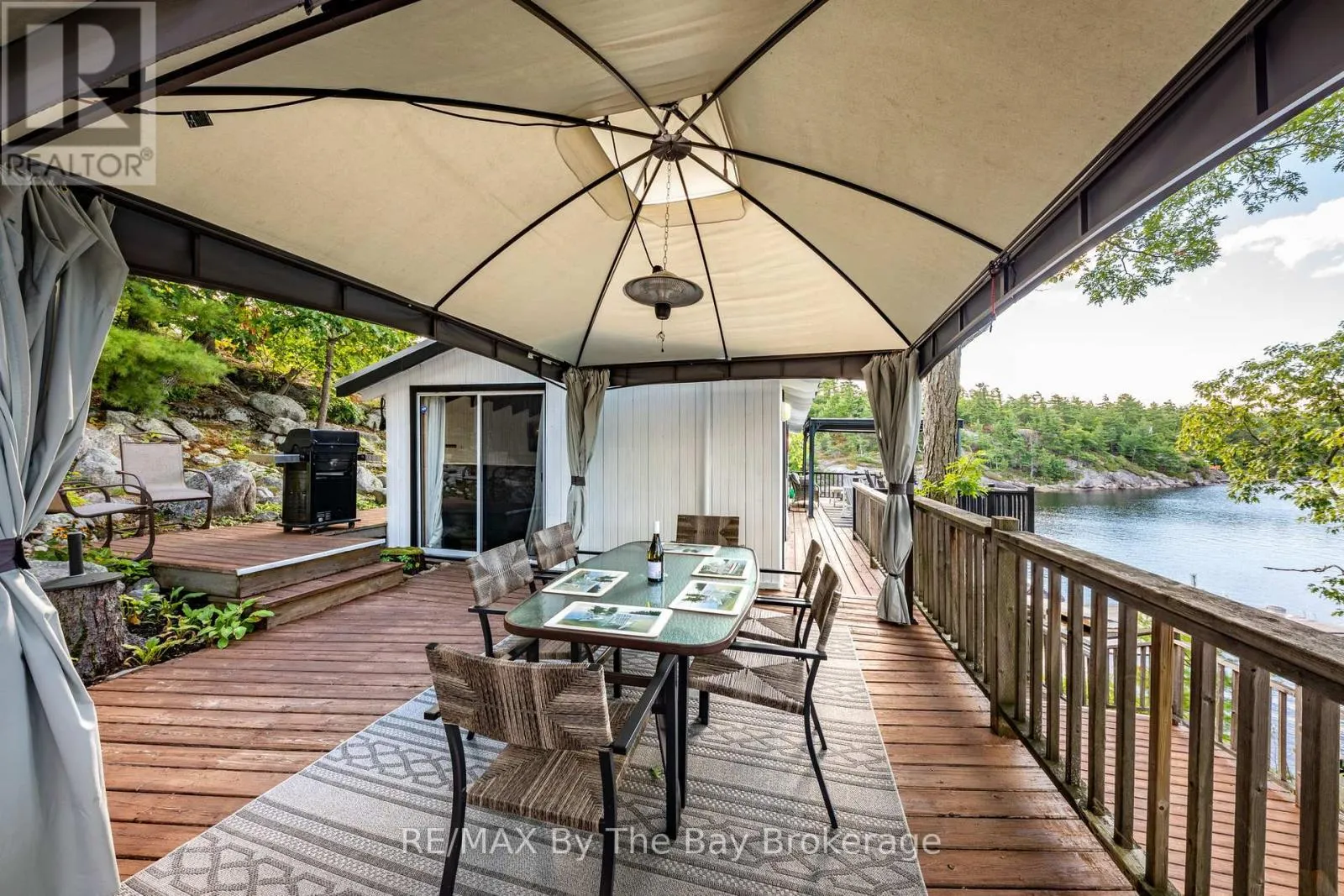 Cross Streets: BOAT ACCESS ONLY. ** Directions: BY BOAT from Honey Harbour Marina's to to Meta Bay to #18588. This south facing, 2 building compound sits on 1.23 acres of crystal-clear, deep water frontage that will make your friends and family slightly envious of your morning coffee views.The property features one, 1-bedroom/1 bathroom main cottage with open concept livingroom and kitchen and one, 2 bedroom/1 bathroom bunkie with kitchenette. The main cottage has a durable metal roof and a spacious shore deck that leads directly to the water via convenient stairs because who has time for long walks to reach paradise? Whether you're planning a refreshing swim, launching your boat for an afternoon adventure, or hosting unforgettable gatherings with friends and family, this waterfront haven delivers endless entertainment possibilities. The neighborhood embraces the quintessential Georgian Bay lifestyle, where tranquil mornings and all day sun are simply part of daily life. Beyond your private shoreline, the area offers numerous attractions that celebrate the natural beauty and recreational opportunities Georgian Bay is renowned for hiking trails and golf courses. Adventure and relaxation await just beyond your doorstep. This is more than just a cottage it's your gateway to the coveted Georgian Bay experience, where every day feels like a vacation. (id:27476)
