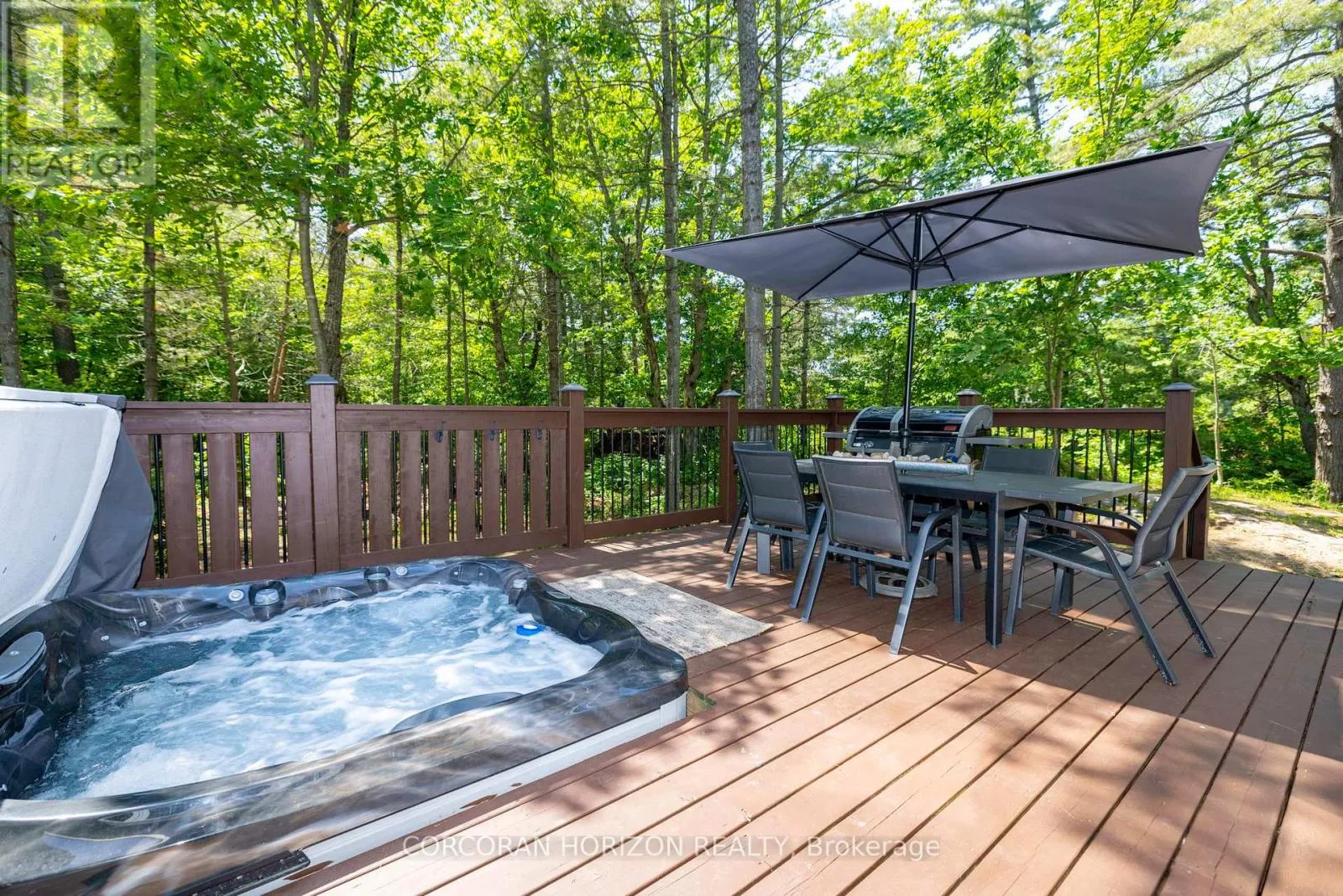 HWY 400 TO MUSKOKA RD 5 BY BOAT TO ISLAND 100 Waterfront Paradise | Boat Access Only | Private Dock | 4-Season Retreat | Three decks | Hot Tub | Escape to your own private oasis with this exceptional boat-access-only waterfront property, perfectly designed for those who crave serenity, adventure, and luxury. This quality-built, four-season home offers unmatched privacy and breathtaking natural beauty. Been chasing sunsets? Well consider this the end of your search. Here you can end the day with stunning, unobstructed views over the water. The sunsets here are nothing short of magical. Secure your boat with ease at your own private dock, and explore the surrounding waters at your leisure. Soak under the stars in the private hot tub on one of three decks, the perfect way to unwind after a day on the lake. Designed for all seasons, this home features top-tier construction and modern comforts, making it ideal for weekend escapes or full-time living. The main floor has been upgraded with low maintenance, high quality luxury vinyl flooring to stand up to high traffic and wet feet! Power outages are common in cottage country, but we've got you covered with a whole home generator backup system! Conveniently located just a short boat ride from the marina, you'll not only have easy access to supplies, dining, and services, you will be able to enjoy a quick ride to your dock in protected water. Whether you're looking for a peaceful family cottage, an outdoor adventure base, or a turn-key luxury retreat, this rare waterfront gem has it all. (id:27476)