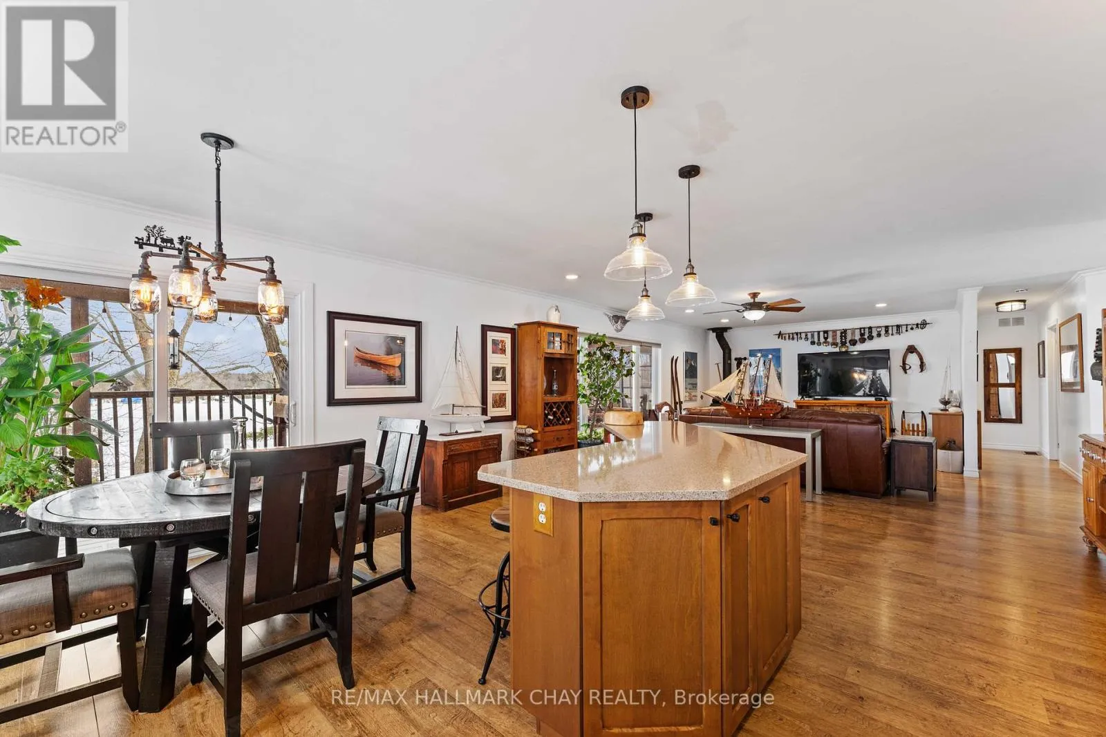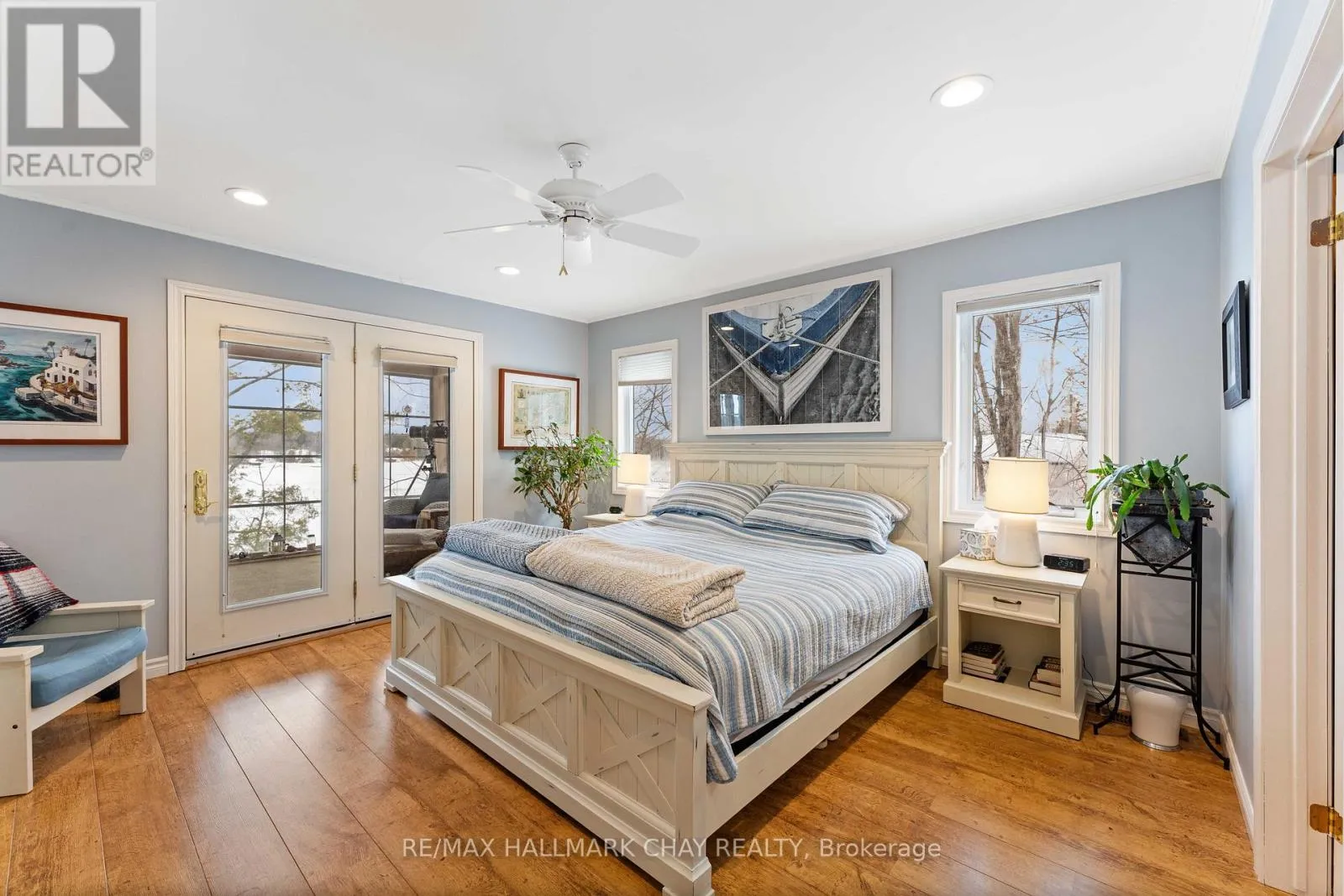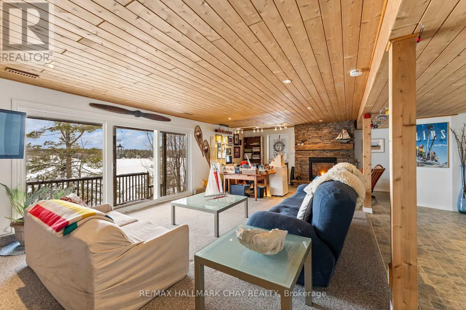 Cross Streets: Hwy 400 & Whites Falls Road. ** Directions: Hwy 400, to Whites Falls Rd, Right, then Right on Pickerel Point Rd. Welcome to Muskoka. Located on White's Bay of Gloucester Pool, at the gateway to Muskoka and Georgian Bay, this exceptional 0.6-acre waterfront property offers privacy, natural beauty, and comfortable year-round living... all just 1.5 hours from Toronto. Set between Crown land and the shoreline, the setting provides a rare sense of seclusion and direct connection to nature. The modern bungalow offers bright, open-concept living with oversized windows that frame peaceful water views. The main level features a comfortable living room and a kitchen that is designed for gathering, with a large sit-at island and seamless flow to the living and dining areas and the 52ft long covered deck. There is a spacious primary suite with a walkout to the 3-season room deck and a walk-through closet with oversize ensuite. The main floor also offers a second bedroom and bathroom as well as a large laundry room. The fully finished walkout lower level extends the living space with a welcoming family room featuring a cozy gas fireplace and direct access to the waterfront, along with a third bedroom, another bathroom, workshop and generous storage. Outdoors, winding paths lead through the Enchanted Forest that has been thoughtfully maintained with beautiful gardens, mature trees, and natural Muskoka granite, creating a peaceful, park-like setting. A detached double garage with workshop provides excellent space for hobbies, storage, or recreational equipment. Gloucester Pool is part of the Trent-Severn Waterway, offering endless boating opportunities and easy access to Georgian Bay just one lock away. The home has been smartly upgraded with a high efficiency propane furnace, stone feature wall propane fireplace, oversized patio doors in lower level, water filtration system, and a new GenerLink transfer switch connection. This is a rare opportunity to own a private waterfront property in one of Muskoka's most accessible and scenic locations, ready to be enjoyed in every season. (id:27476)