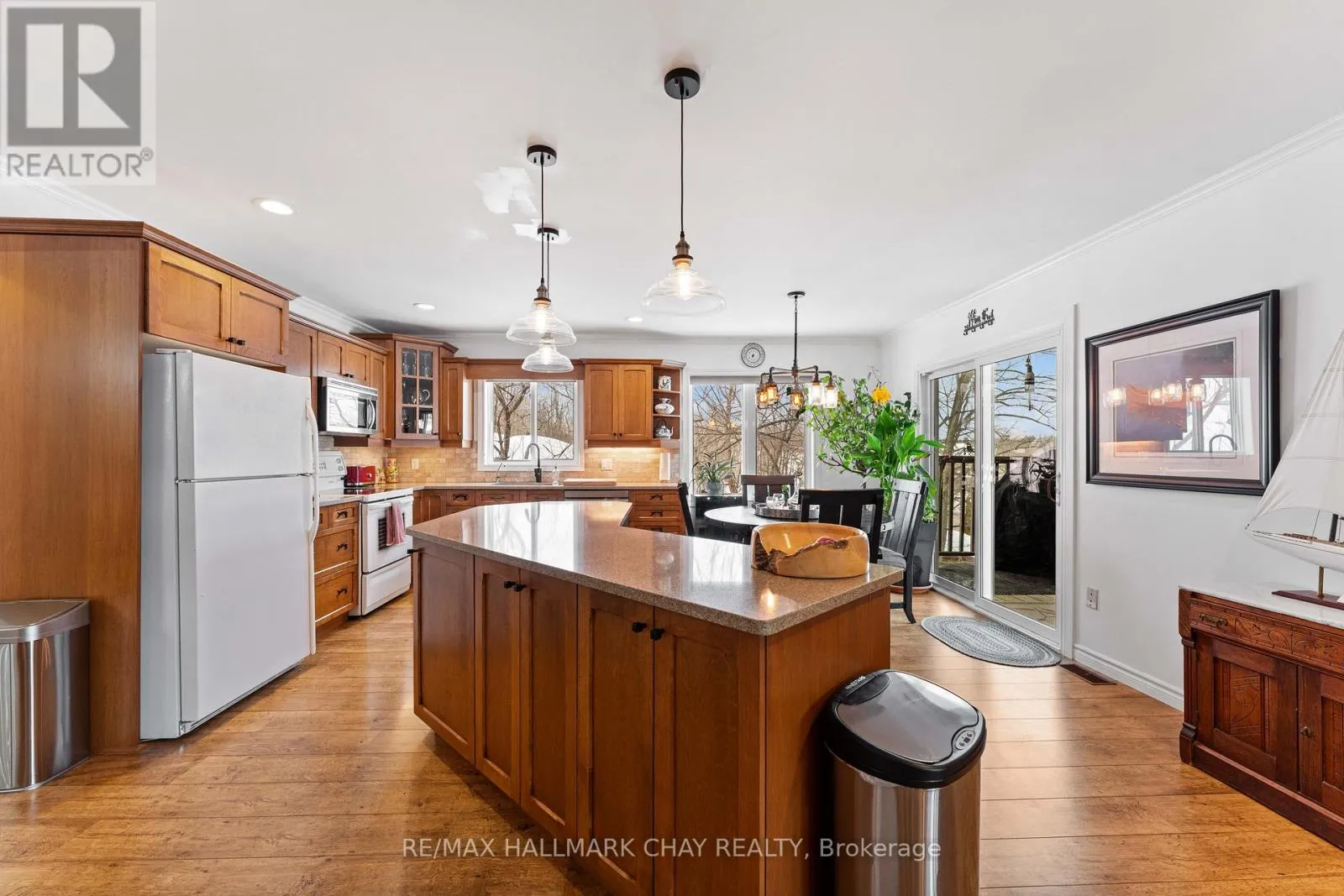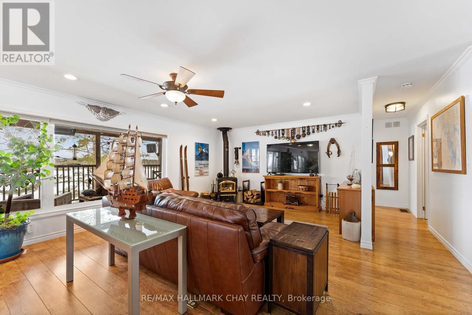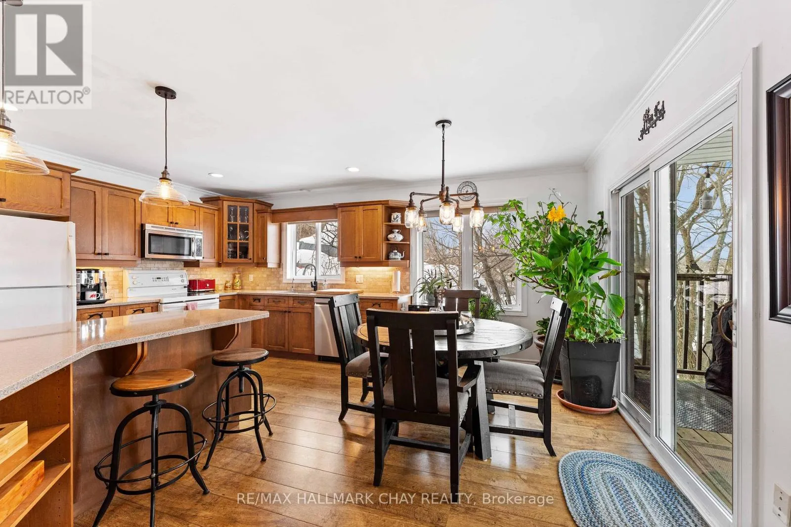 Cross Streets: Hwy 400 & Whites Falls Road. ** Directions: Hwy 400, to Whites Falls Rd, Right, then Right on Pickerel Point Rd. Welcome to Muskoka. Located on White's Bay of Gloucester Pool, at the gateway to Muskoka and Georgian Bay, this exceptional 0.6-acre waterfront property offers privacy, natural beauty, and comfortable year-round living... all just 1.5 hours from Toronto. Set between Crown land and the shoreline, the setting provides a rare sense of seclusion and direct connection to nature. The modern bungalow offers bright, open-concept living with oversized windows that frame peaceful water views. The main level features a comfortable living room and a kitchen that is designed for gathering, with a large sit-at island and seamless flow to the living and dining areas and the 52ft long covered deck. There is a spacious primary suite with a walkout to the 3-season room deck and a walk-through closet with oversize ensuite. The main floor also offers a second bedroom and bathroom as well as a large laundry room. The fully finished walkout lower level extends the living space with a welcoming family room featuring a cozy gas fireplace and direct access to the waterfront, along with a third bedroom, another bathroom, workshop and generous storage. Outdoors, winding paths lead through the Enchanted Forest that has been thoughtfully maintained with beautiful gardens, mature trees, and natural Muskoka granite, creating a peaceful, park-like setting. A detached double garage with workshop provides excellent space for hobbies, storage, or recreational equipment. Gloucester Pool is part of the Trent-Severn Waterway, offering endless boating opportunities and easy access to Georgian Bay just one lock away. The home has been smartly upgraded with a high efficiency propane furnace, stone feature wall propane fireplace, oversized patio doors in lower level, water filtration system, and a new GenerLink transfer switch connection. This is a rare opportunity to own a private waterfront property in one of Muskoka's most accessible and scenic locations, ready to be enjoyed in every season. (id:27476)