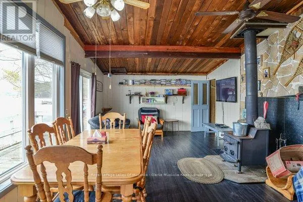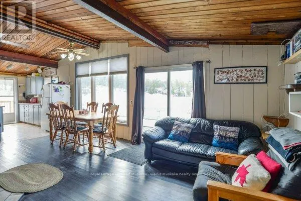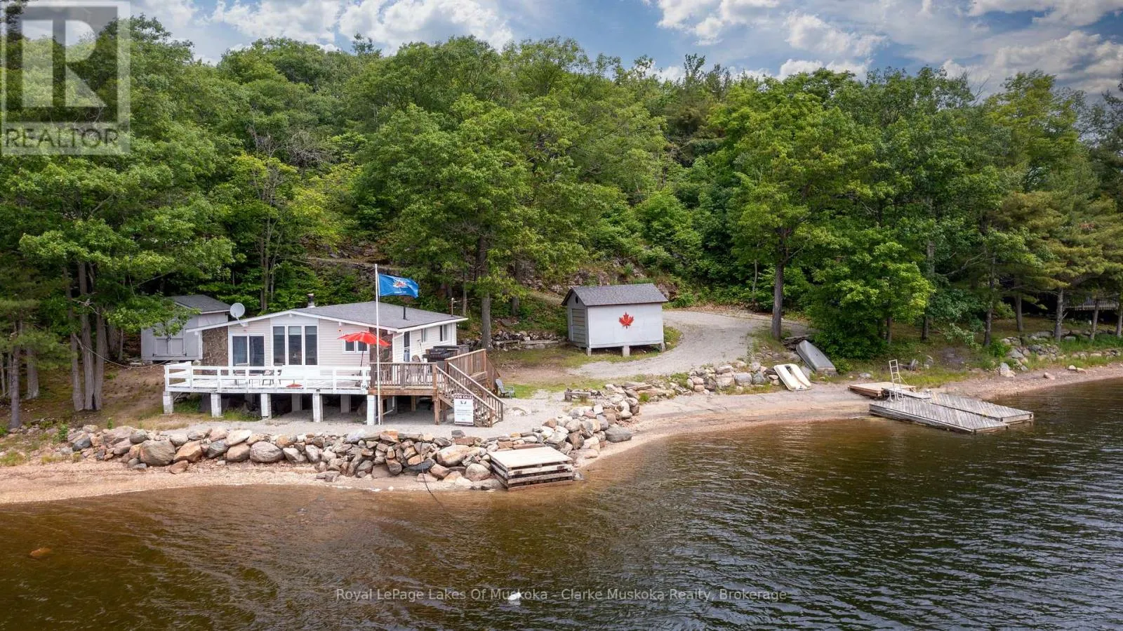 Cross Streets: Harrison Trail. ** Directions: Hwy 400 to 12 Mile Bay Rd, Harrison Trail, to property. Welcome to 709 Harrison Trail, a Georgian Bay getaway! This stunning 3-bedroom, 1-bath cottage is located on 12 Mile Bay and is perched right on the water's edge, boasting 200 feet of water frontage and good deep water. The original cathedral-type ceilings, an open-concept layout, and vinyl flooring throughout the main living and dining areas create a warm and inviting atmosphere. Cozy up by the fieldstone wood-burning fireplace, perfect for those cooler evenings. This location on Twelve Mile Bay offers expansive southwestern views, including a national park island, making it the perfect spot to relax and unwind. The cottage is a 3-season property on a year-round road, ensuring easy yearly access. With its charming features and an unbeatable location, this cottage is an excellent investment for anyone seeking a peaceful retreat or a rental property for vacationers. Don't miss your chance to own a piece of paradise on 12 Mile Bay! (id:27476)