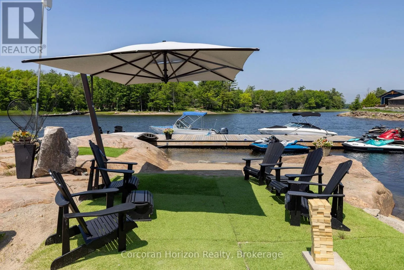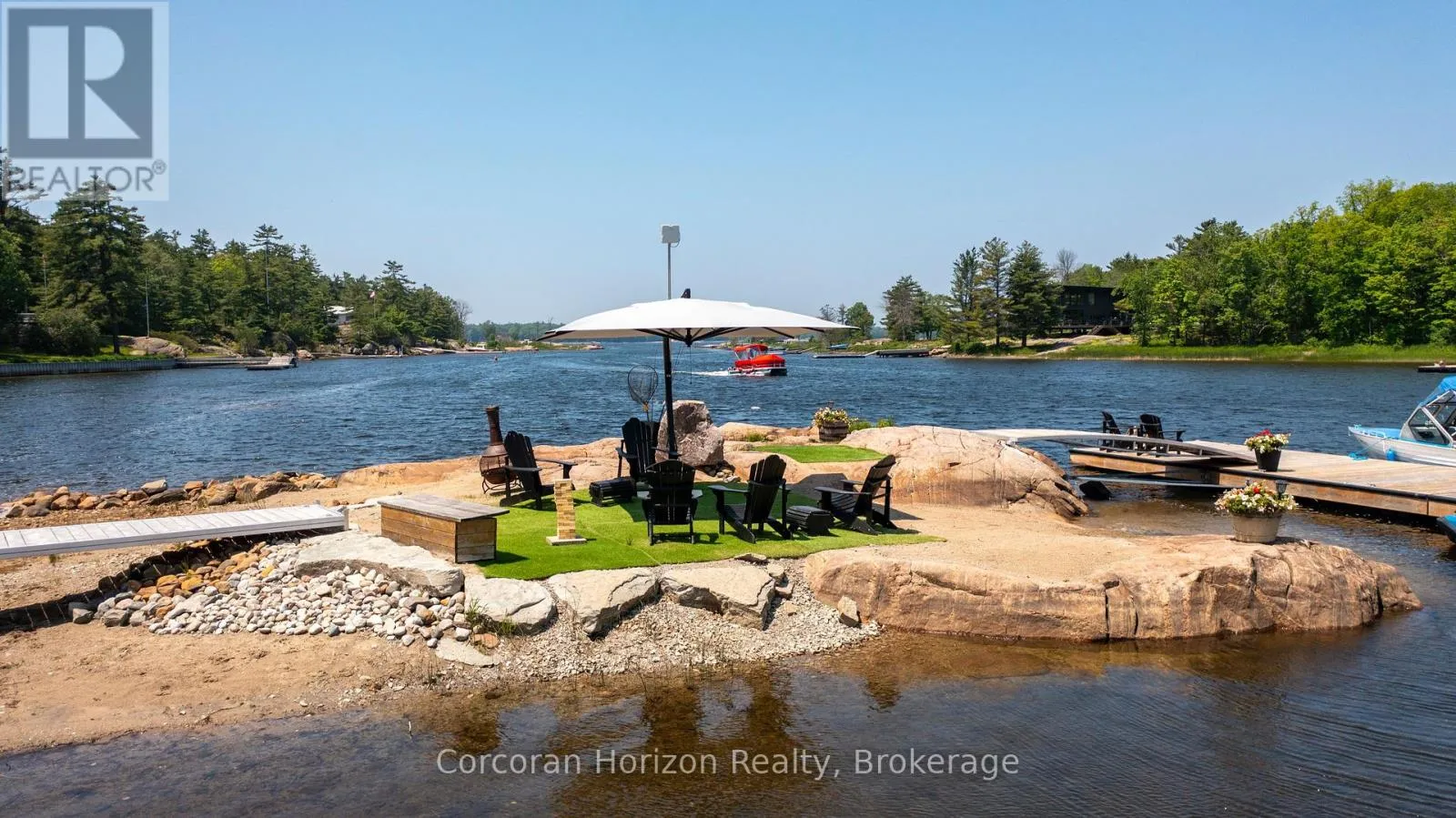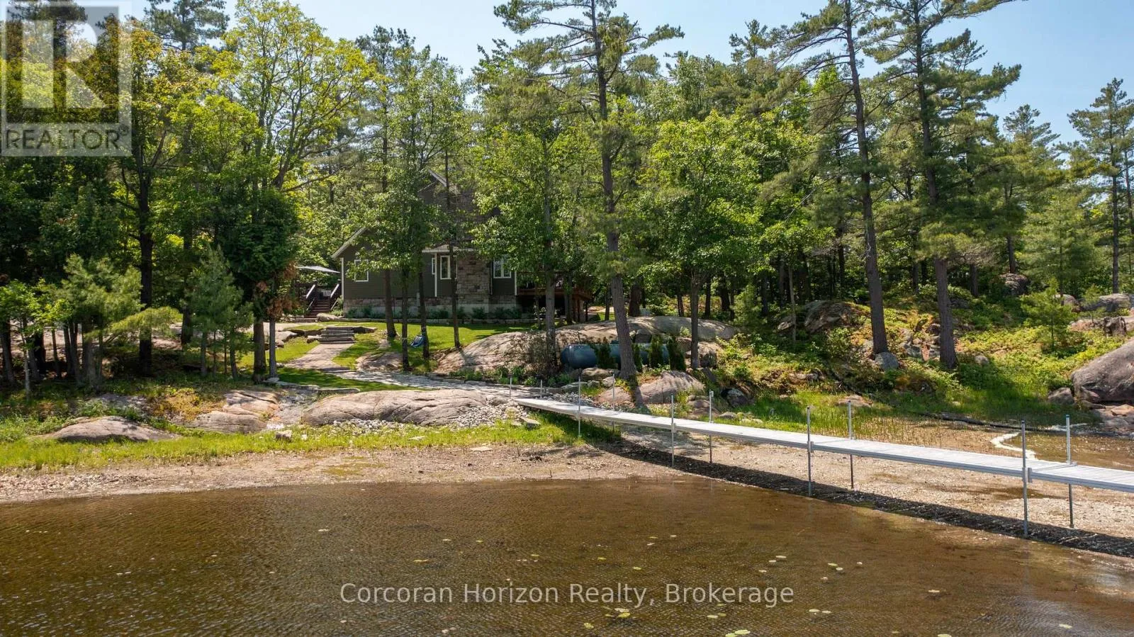 HWY 400 TO MUSKOKA RD 5 BY BOAT TO ISLAND 100 Waterfront Paradise | Boat Access Only | Private Dock | 4-Season Retreat | Three decks | Hot Tub | Escape to your own private oasis with this exceptional boat-access-only waterfront property, perfectly designed for those who crave serenity, adventure, and luxury. This quality-built, four-season home offers unmatched privacy and breathtaking natural beauty. Been chasing sunsets? Well, consider this the end of your search. Here you can end the day with stunning, unobstructed views over the water. The sunsets here are nothing short of magical. Secure your boat with ease at your own private dock, and explore the surrounding waters at your leisure. Soak under the stars in the private hot tub on one of three decks, the perfect way to unwind after a day on the lake. Designed for all seasons, this home features top-tier construction and modern comforts, making it ideal for weekend escapes or full-time living. The main floor has been upgraded with low maintenance, high quality luxury vinyl flooring to stand up to high traffic and wet feet! Power outages are common in cottage country, but we've got you covered with a whole home generator backup system! Conveniently located just a short boat ride from the marina, you'll not only have easy access to supplies, dining, and services, you will be able to enjoy a quick ride to your dock in protected water. Whether you're looking for a peaceful family cottage, an outdoor adventure base, or a turn-key luxury retreat, this rare waterfront gem has it all. (id:27476)