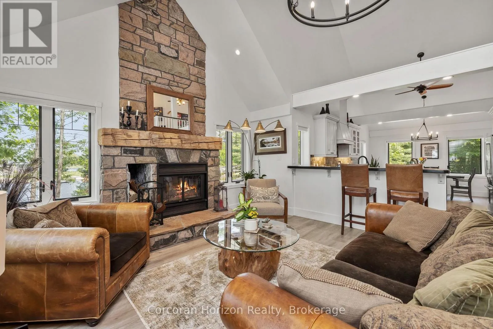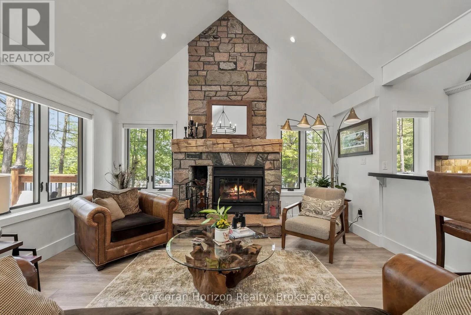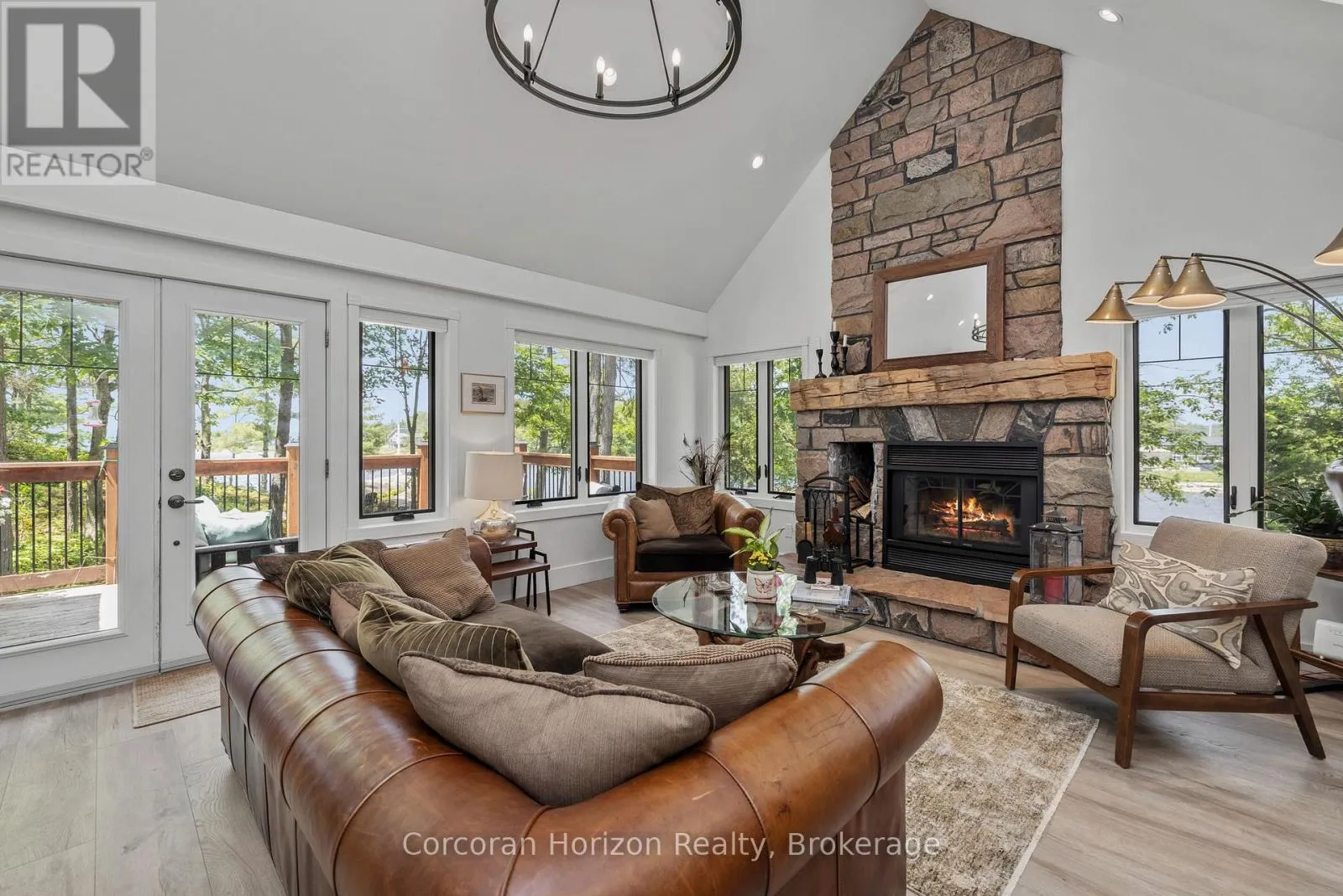 HWY 400 TO MUSKOKA RD 5 BY BOAT TO ISLAND 100 Waterfront Paradise | Boat Access Only | Private Dock | 4-Season Retreat | Three decks | Hot Tub | Escape to your own private oasis with this exceptional boat-access-only waterfront property, perfectly designed for those who crave serenity, adventure, and luxury. This quality-built, four-season home offers unmatched privacy and breathtaking natural beauty. Been chasing sunsets? Well, consider this the end of your search. Here you can end the day with stunning, unobstructed views over the water. The sunsets here are nothing short of magical. Secure your boat with ease at your own private dock, and explore the surrounding waters at your leisure. Soak under the stars in the private hot tub on one of three decks, the perfect way to unwind after a day on the lake. Designed for all seasons, this home features top-tier construction and modern comforts, making it ideal for weekend escapes or full-time living. The main floor has been upgraded with low maintenance, high quality luxury vinyl flooring to stand up to high traffic and wet feet! Power outages are common in cottage country, but we've got you covered with a whole home generator backup system! Conveniently located just a short boat ride from the marina, you'll not only have easy access to supplies, dining, and services, you will be able to enjoy a quick ride to your dock in protected water. Whether you're looking for a peaceful family cottage, an outdoor adventure base, or a turn-key luxury retreat, this rare waterfront gem has it all. (id:27476)