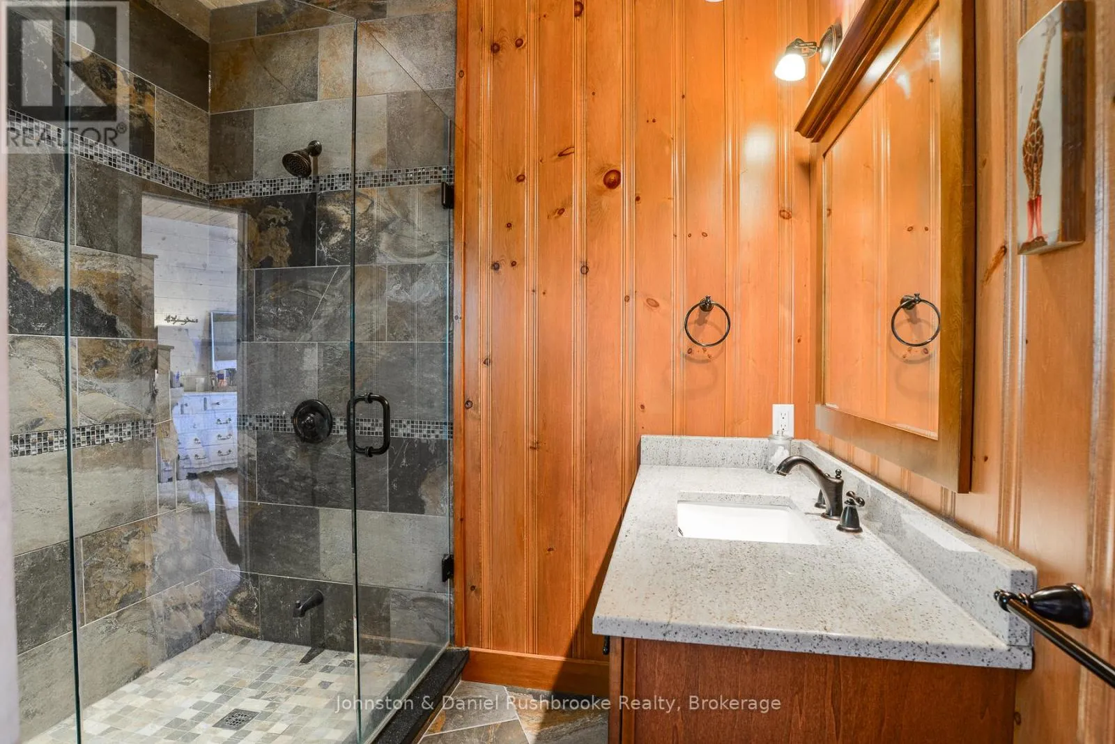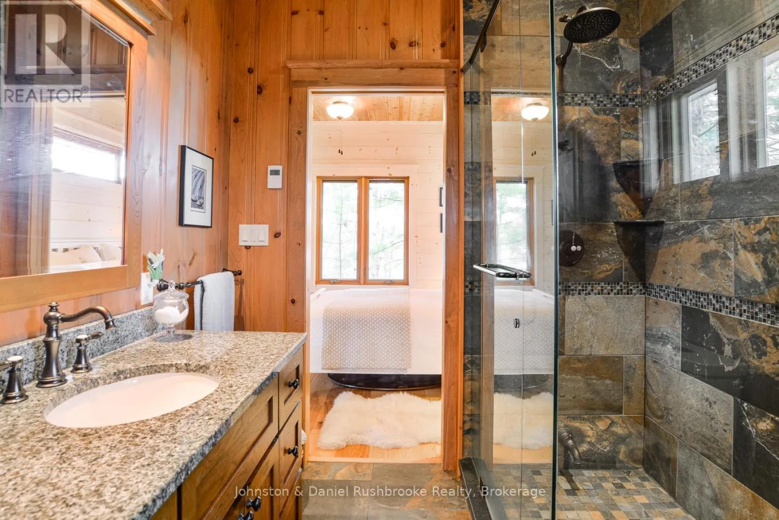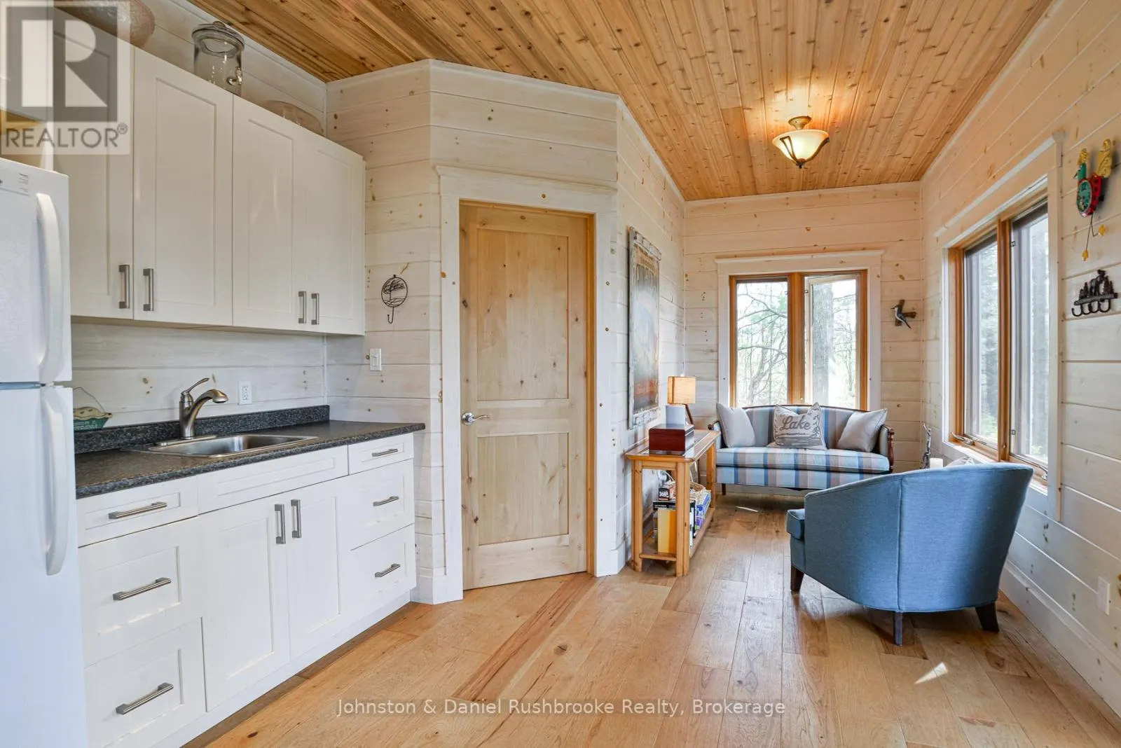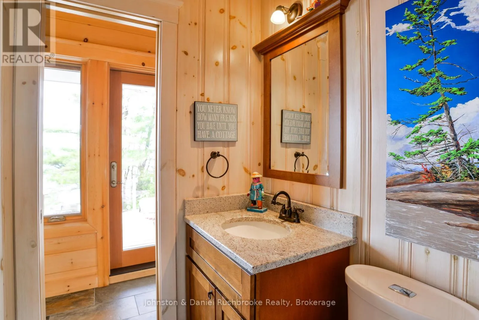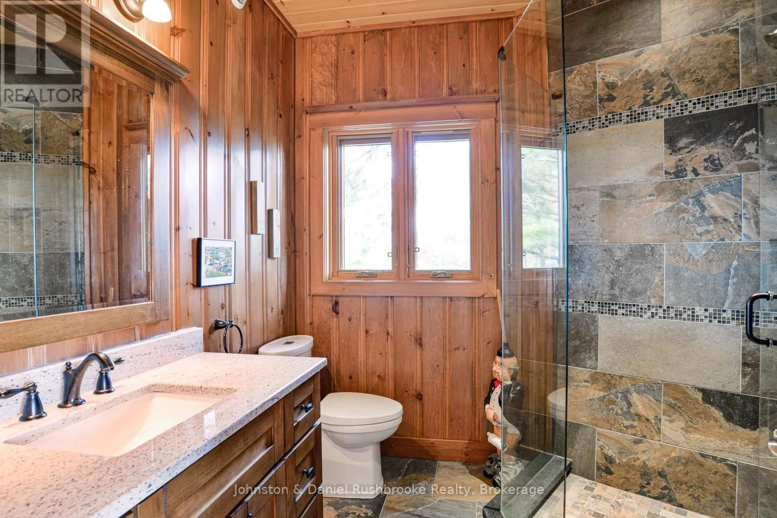 Cross Streets: Honey Harbour. ** Directions: By boat from Honey Harbour. Carved from granite and framed by windswept pines, this stunning island in Georgian Bay's prized Cognashene area offers 520 feet of pristine shoreline. The custom-built cottage is anchored by vaulted ceilings, a stone fireplace, and expansive windows that bring the Bay into every room. Hickory hardwood runs throughout most of the room. The Muskoka Room, with its pine flooring and retractable Weatherwall windows, provides a seamless transition between indoors and out, perfect for summer evenings or cozy fall afternoons. The open-concept kitchen offers generous prep space and looks out over the water. The main cottage features 3 bedrooms and 3 bathrooms, including a tranquil primary with an ensuite, a guest bedroom with a 2-piece bath, and a third bedroom perfect for teens with a separate entrance, and a 3-piece bath. All bathrooms feature heated tile floors. The 620 sq. ft. guest bunkie provides 2 additional bedrooms, a sitting area, a shared bath, and its own kitchenette, plus a private deck and hot tub for star-filled evenings. Outdoor living is effortless with an 800 sq. ft. partially covered deck offering panoramic Bay views, and a 400 sq. ft. waterside deck with sun from dawn to dusk. Boaters will love the deep-water dockage at the U-shaped floating dock, with quick access to open water. This timeless retreat is designed for a new family's effortless connection to the splendour and serenity of the Bay. A spectacular adjoining vacant lot is also available for those seeking extended privacy or future expansion. Just a 15-minute boat ride from the nearest Honey Harbour marina, yet completely removed from the rhythm of everyday life, this rare island offering is more than a cottage. It is a story waiting to be lived in one of Georgian Bay's most coveted areas. Discover the mystique of Georgian Bay island cottaging, it's unmatched by any other cottage destination. (id:27476)