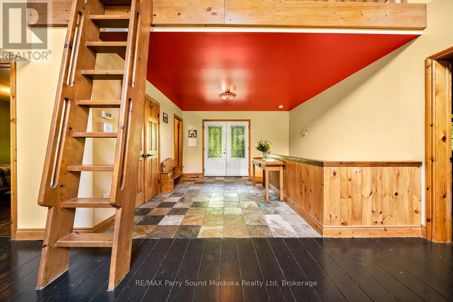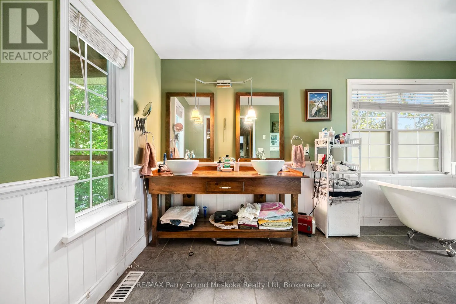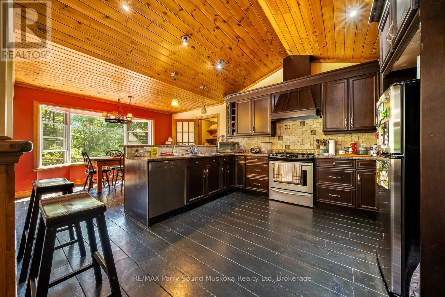 Cross Streets: High. ** Directions: Keep right to continue on ON-400, follow signs for Ontario 400 N/Ontario 69/Parry Sound/SudburyTake exit 189 for ON-69 toward MacTier Merge onto Lake Joseph Rd Turn left onto High St/Muskoka District Road 11 Destination will be on the right. This exceptional custom-built home is perfectly situated on a rare and expansive double lot right in the desirable community of MacTier. Thoughtfully designed with both functionality and flexibility in mind, the home features five spacious bedrooms and four full bathrooms, offering ample space for large or multi-generational families. The main floor showcases three generously sized bedrooms and two bathrooms, highlighted by soaring cathedral ceilings, rich custom finishes, and an open-concept layout that seamlessly blends the kitchen, dining, and living area for modern family living. Downstairs, the fully developed walkout basement includes two separate and private granny suites, each complete with its own entrance, making it perfect for extended family, guests, or potential rental income. Outdoor living is a true highlight of this property, with expansive decks on both the front and back of the home, providing ideal spaces to relax, entertain, or enjoy peaceful views of the surrounding neighborhood. A large two-car garage offers secure parking and additional storage, while two oversized driveways provide plenty of room for vehicles or recreational toys. This one-of-a-kind home combines craftsmanship, space, and income potential all within a quiet, family-friendly area just minutes from local amenities. Whether you're looking for a forever home or an investment opportunity, this property delivers unmatched value and versatility. (id:27476)