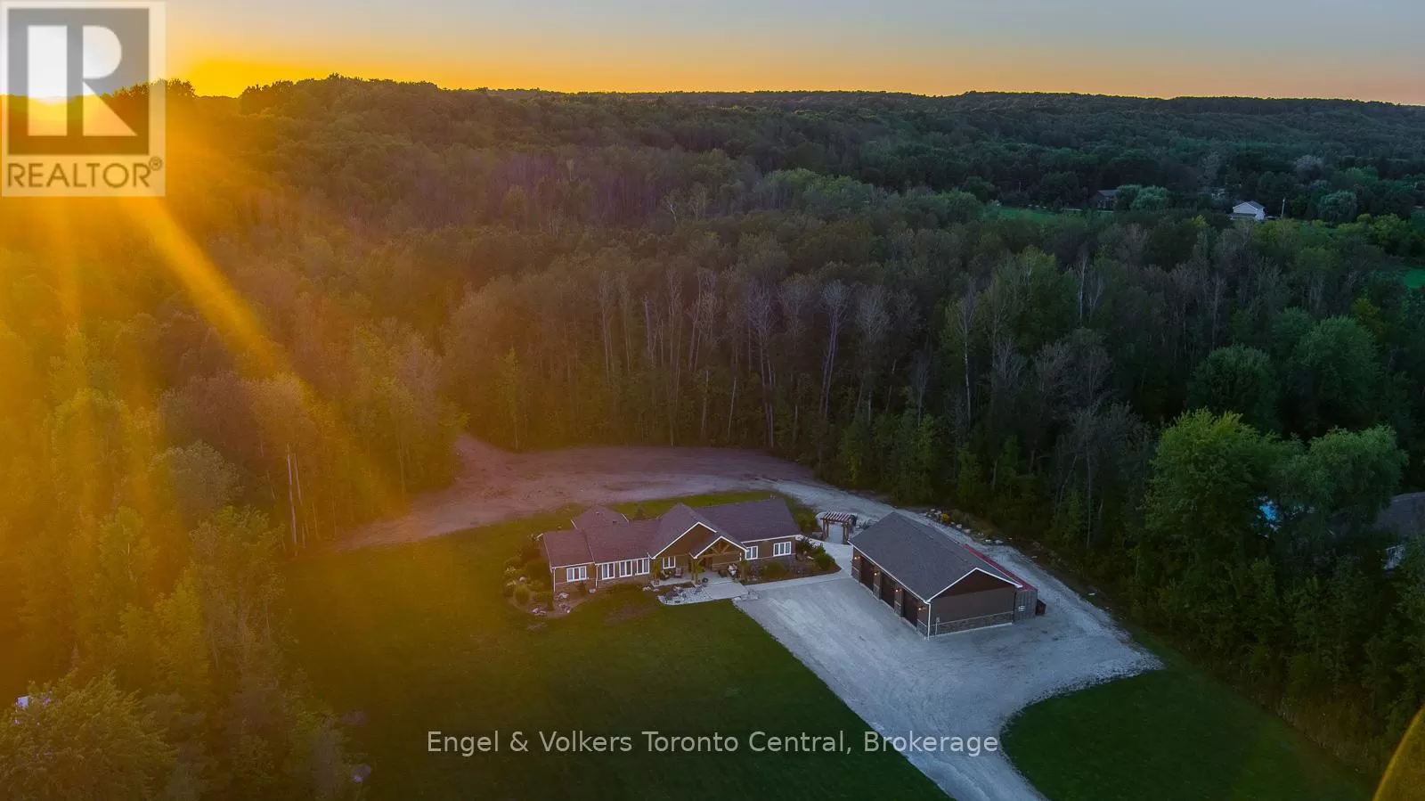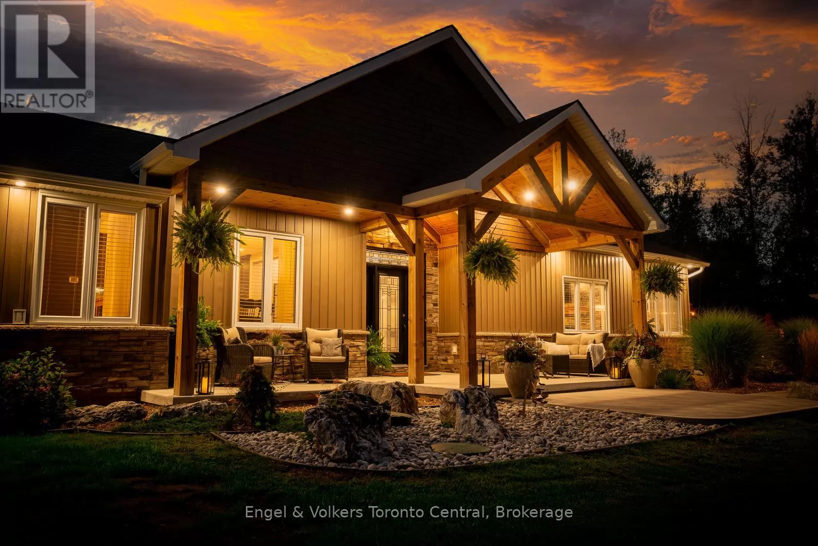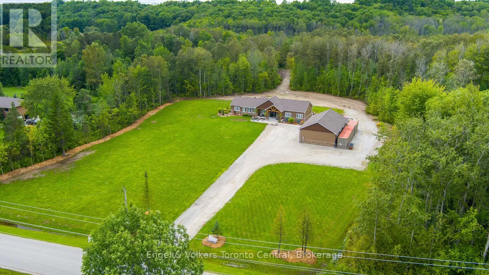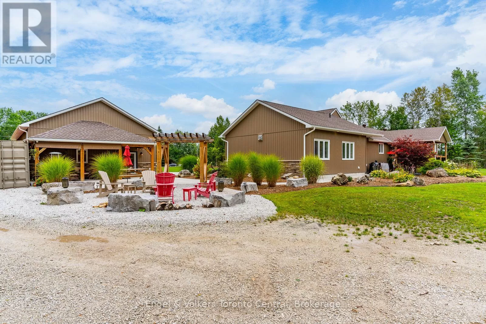 From Grey Road 17B turn onto Somers Street. Continue on Somers St to #242 on the left hand side. Indulge in Refined Country Living. This stunningly renovated bungalow, set on a private five-acre woodland, offers an unparalleled lifestyle of luxury and tranquility. The gourmet kitchen is a culinary masterpiece, boasting high-end stainless steel appliances and durable, elegant Cambria Quartz countertops. The open-concept layout flows beautifully into a grand living area with a breathtaking 13-foot vaulted ceiling and a striking stone fireplace. Enjoy formal dining with picturesque views. The primary suite is a true oasis, featuring a spa-inspired 4-piece ensuite with a steam shower and heated floors, plus private access to a covered hot tub porch. The finished lower level adds versatile living space with two bedrooms and a bath. A standout feature is the fully insulated and heated 3-bay workshop. Embrace outdoor living with a covered patio, fire pit, and the peaceful presence of local wildlife. Enjoy the best of both worlds: serene country living with easy access to Owen Sound's conveniences and outdoor adventures. (id:27476)