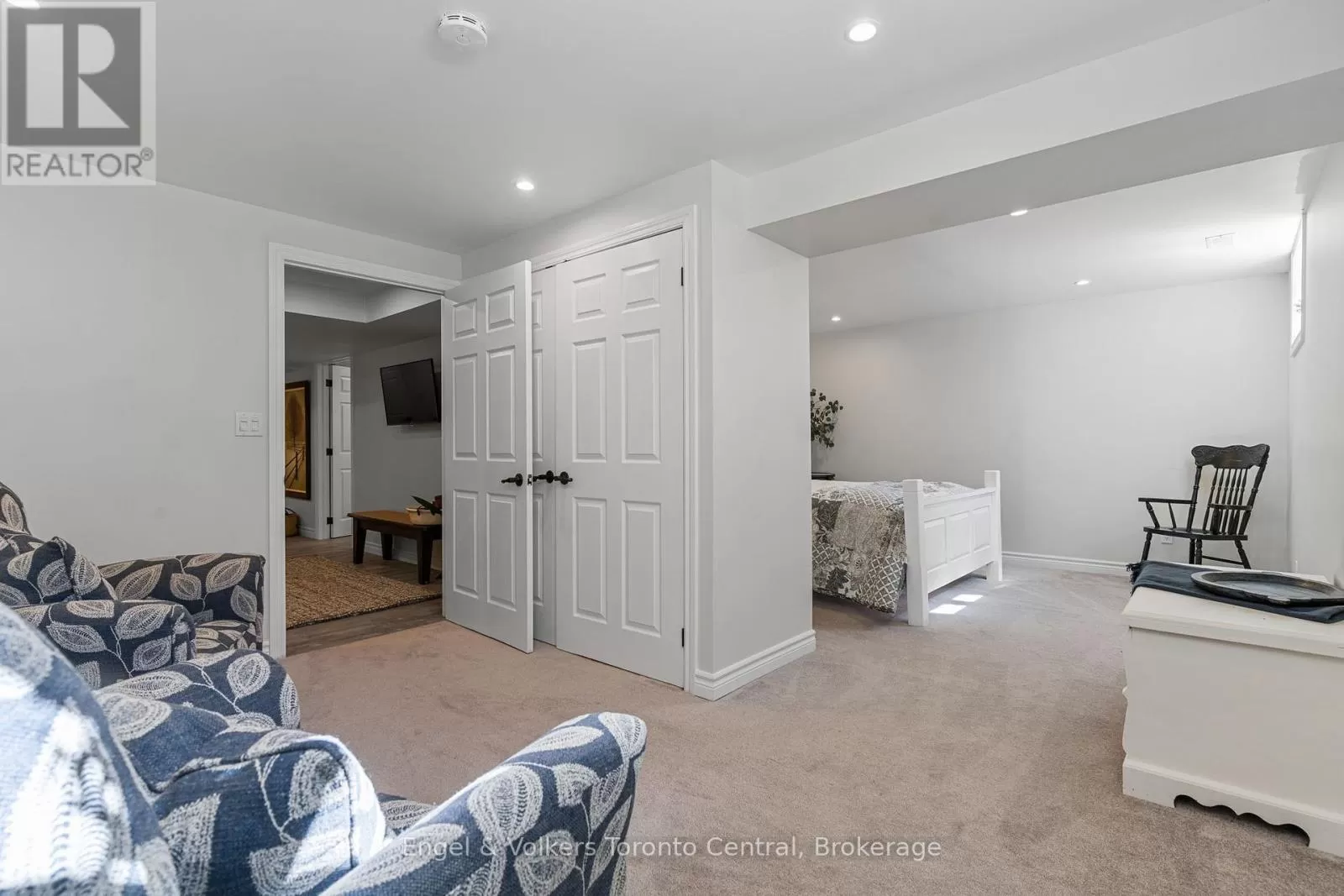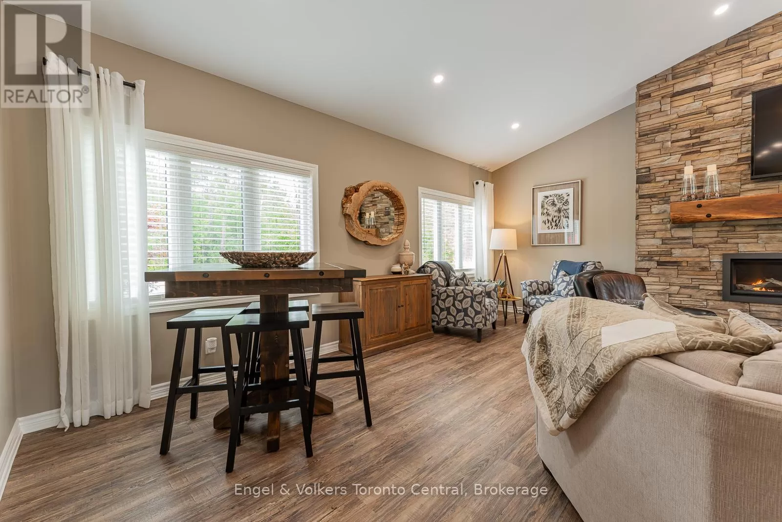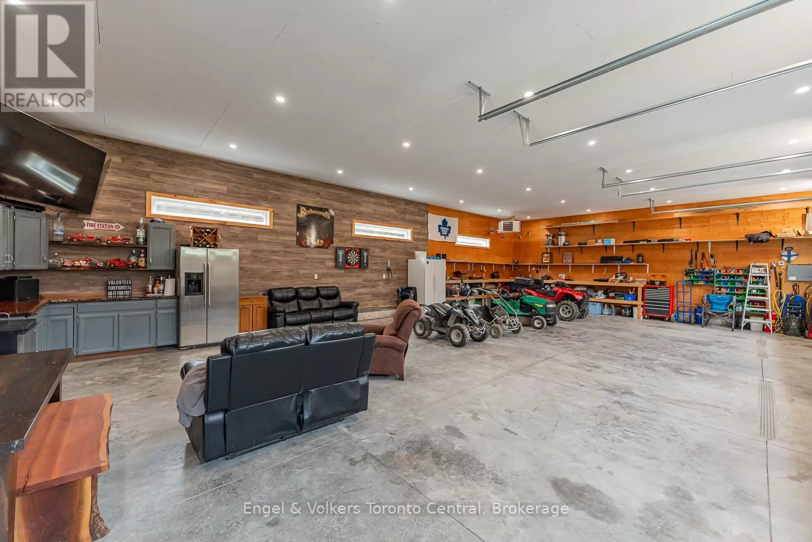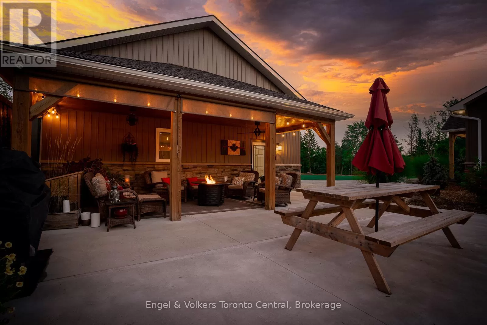 From Grey Road 17B turn onto Somers Street. Continue on Somers St to #242 on the left hand side. Indulge in Refined Country Living. This stunningly renovated bungalow, set on a private five-acre woodland, offers an unparalleled lifestyle of luxury and tranquility. The gourmet kitchen is a culinary masterpiece, boasting high-end stainless steel appliances and durable, elegant Cambria Quartz countertops. The open-concept layout flows beautifully into a grand living area with a breathtaking 13-foot vaulted ceiling and a striking stone fireplace. Enjoy formal dining with picturesque views. The primary suite is a true oasis, featuring a spa-inspired 4-piece ensuite with a steam shower and heated floors, plus private access to a covered hot tub porch. The finished lower level adds versatile living space with two bedrooms and a bath. A standout feature is the fully insulated and heated 3-bay workshop. Embrace outdoor living with a covered patio, fire pit, and the peaceful presence of local wildlife. Enjoy the best of both worlds: serene country living with easy access to Owen Sound's conveniences and outdoor adventures. (id:27476)
