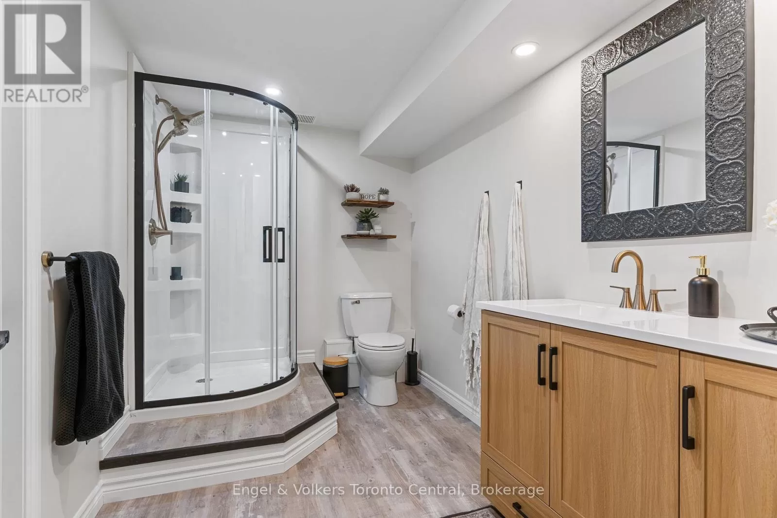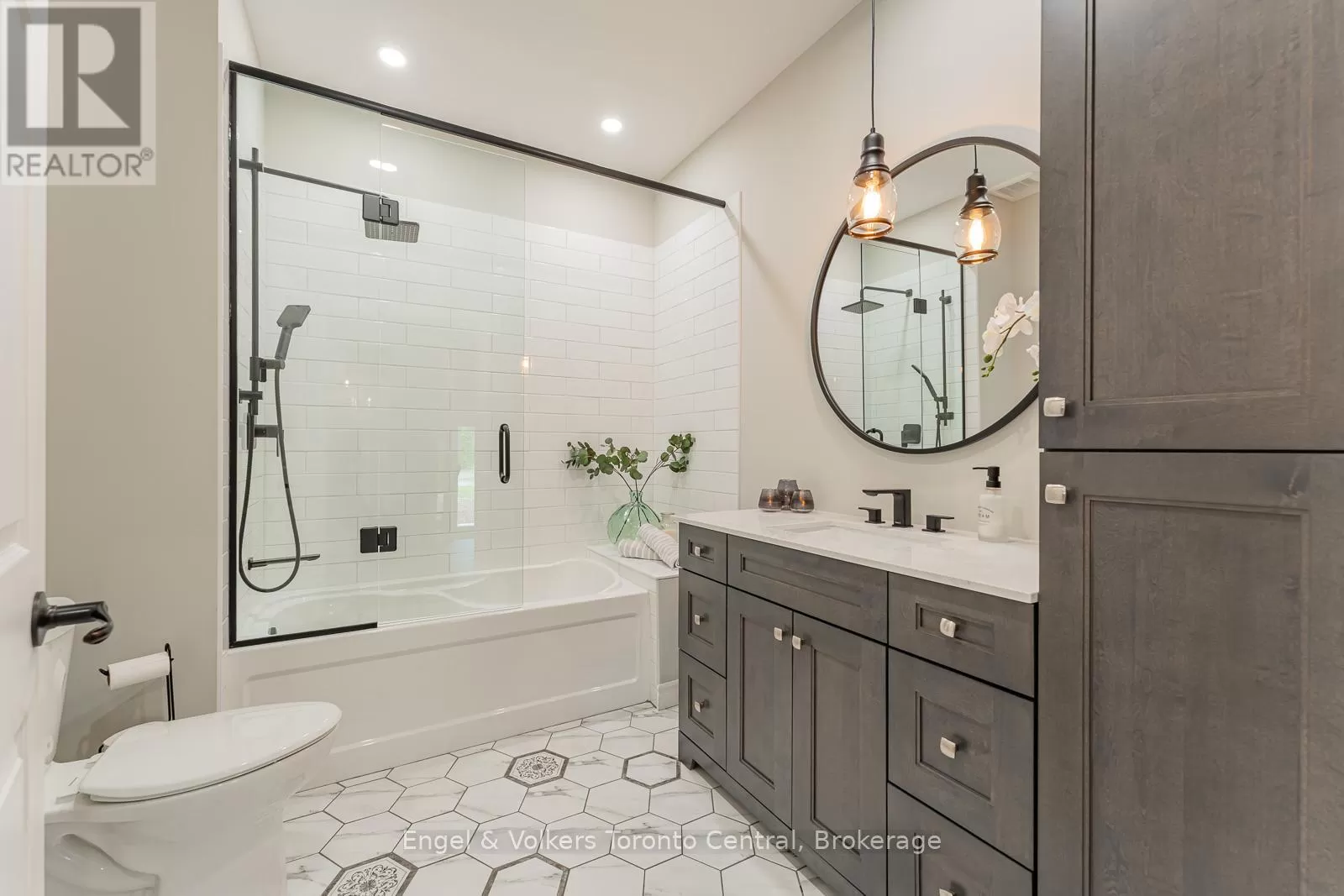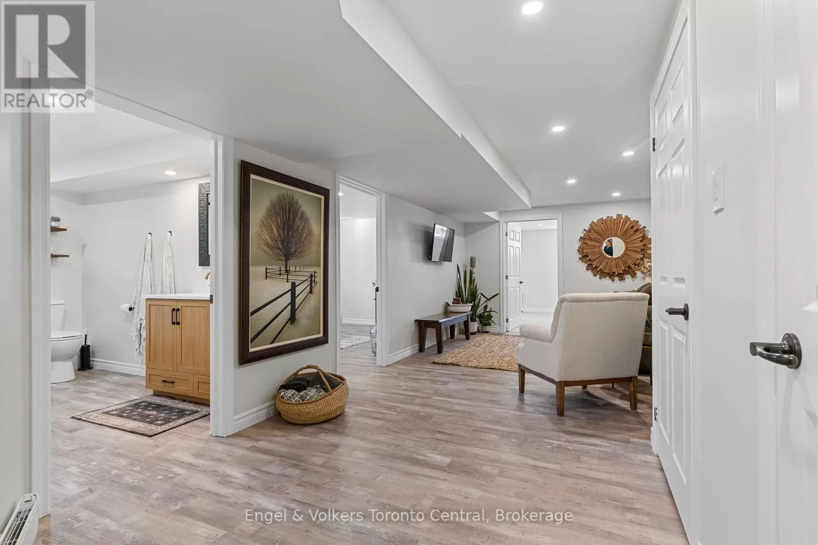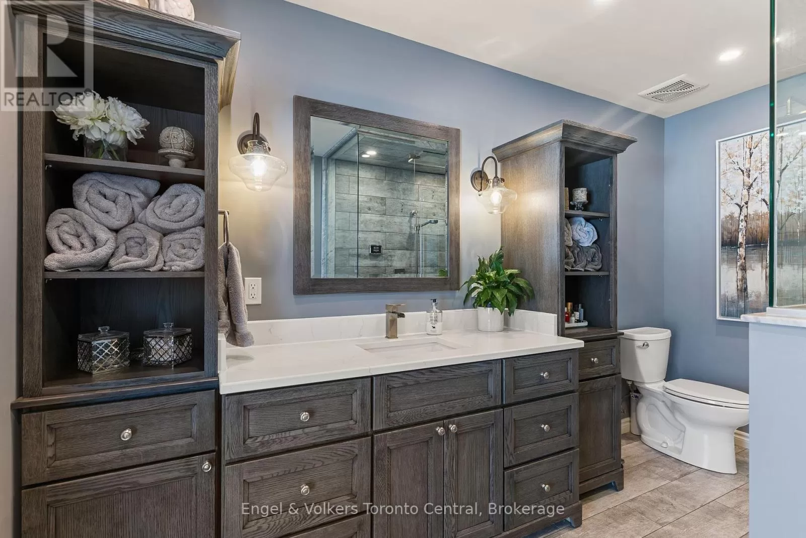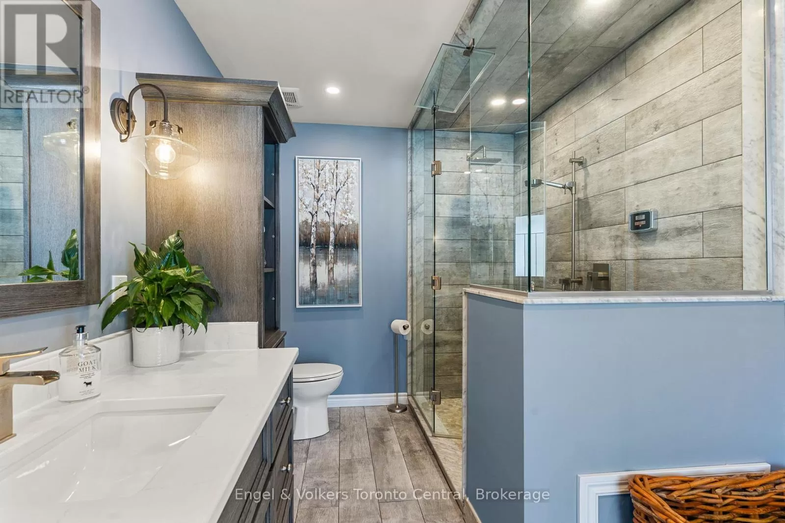 From Grey Road 17B turn onto Somers Street. Continue on Somers St to #242 on the left hand side. Indulge in Refined Country Living. This stunningly renovated bungalow, set on a private five-acre woodland, offers an unparalleled lifestyle of luxury and tranquility. The gourmet kitchen is a culinary masterpiece, boasting high-end stainless steel appliances and durable, elegant Cambria Quartz countertops. The open-concept layout flows beautifully into a grand living area with a breathtaking 13-foot vaulted ceiling and a striking stone fireplace. Enjoy formal dining with picturesque views. The primary suite is a true oasis, featuring a spa-inspired 4-piece ensuite with a steam shower and heated floors, plus private access to a covered hot tub porch. The finished lower level adds versatile living space with two bedrooms and a bath. A standout feature is the fully insulated and heated 3-bay workshop. Embrace outdoor living with a covered patio, fire pit, and the peaceful presence of local wildlife. Enjoy the best of both worlds: serene country living with easy access to Owen Sound's conveniences and outdoor adventures. (id:27476)