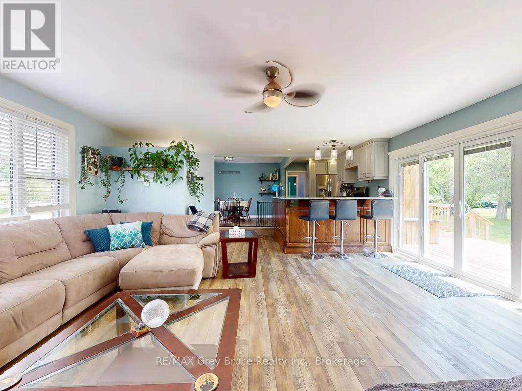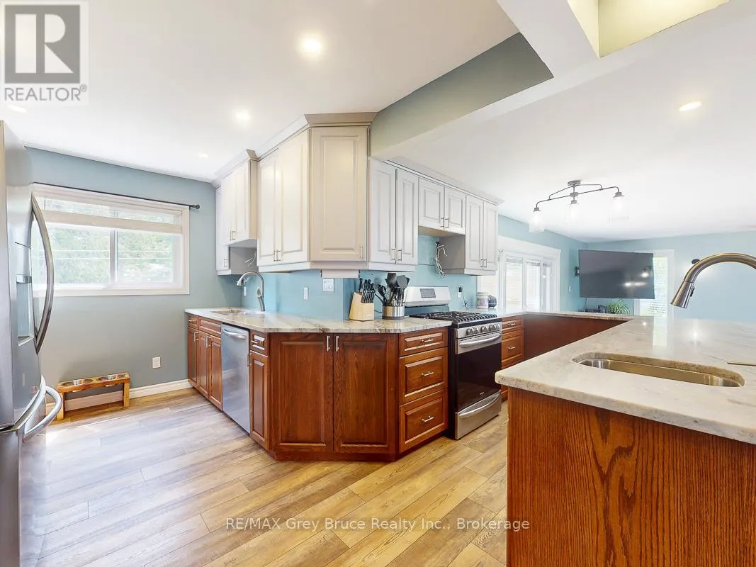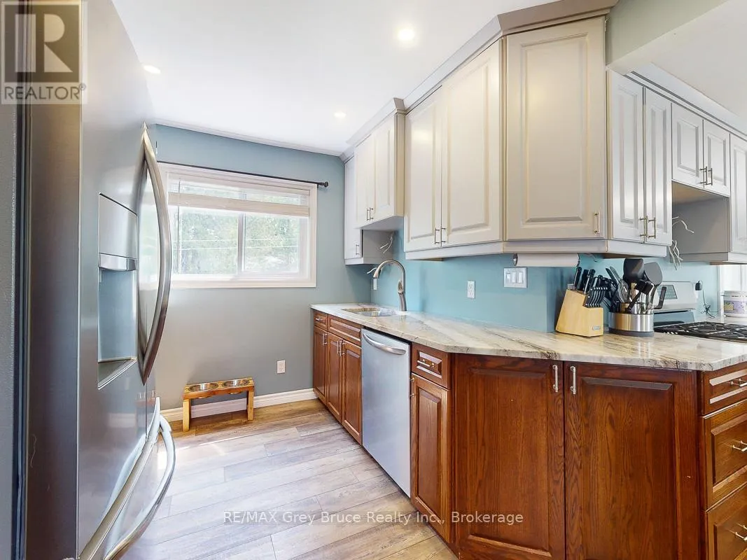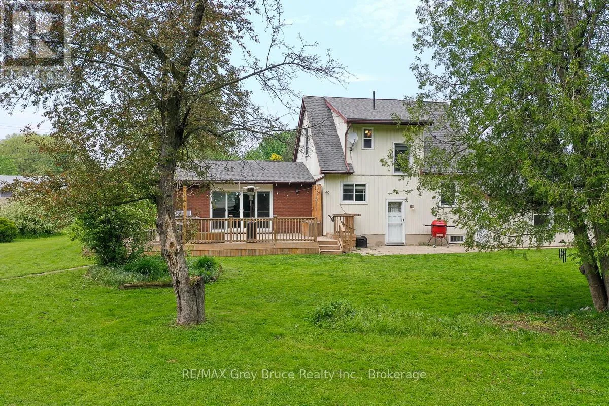 Cross Streets: 16th St W & Vimy Rd. ** Directions: From Somers St, turn at 16th St W - Follow to Vimy Rd - House on corner. A Place to Call Home in Georgian Bluffs! Wake up to sunshine and birdsong on your south-facing entertainment deck, soaking in a backyard that feels like the country with the perks of city services. Set on1/2 acre - this property offers room to roam, privacy, and plenty of space for family fun. The spacious deck is reinforced and in the future could hold a hot tub, while the back yard offers an above-ground pool &plenty of trees for relaxing in a hammock. Enjoy evenings by the fire pit while kids and pets explore the open yard. A converted garage, affectionately known as "The Haven," offers a versatile space / games room, studio, or TV lounge with separate access and a dartboard already up for play. Inside, the main floor was fully renovated in 2020 to an open-concept layout with granite Muskoka rock counters, oak lower and grey upper cabinets, with two sinks - ideal for chefs and bakers alike. Thoughtful touches include a dedicated dog food storage area and ample cabinetry. Appliances: gas stove, fridge, and dishwasher (all2020), washer (2024), dryer (2018). The home features four bedrooms (one in basement), two bathrooms, and two living spaces, while the main floor family room fits an 80 TV with space to spare. New furnace and Central Air (2021), new paved driveway (2024), second driveway with access to the Haven, two sheds, privacy fence, and beautifully decorated & established gardens. Located in a sought-after neighborhood with Owen Sound water and private septic. This welcoming home is ready for its next chapter. Move in andenjoy, this home is ready to be it yours! (id:27476)