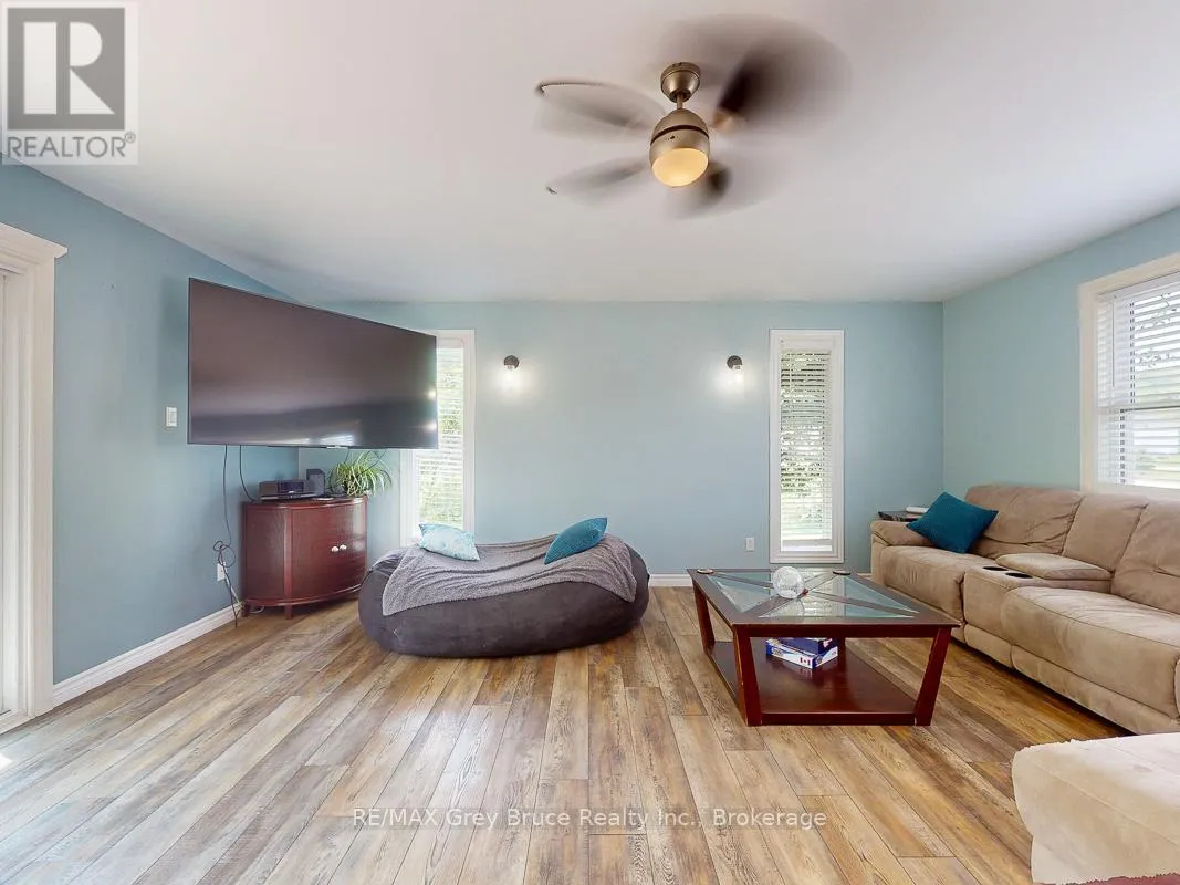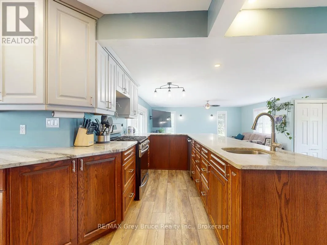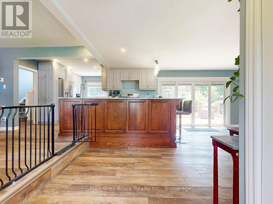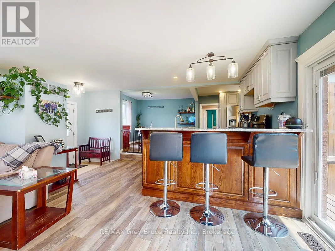 Cross Streets: 16th St W & Vimy Rd. ** Directions: From Somers St, turn at 16th St W - Follow to Vimy Rd - House on corner. A Place to Call Home in Georgian Bluffs! Wake up to sunshine and birdsong on your south-facing entertainment deck, soaking in a backyard that feels like the country with the perks of city services. Set on1/2 acre - this property offers room to roam, privacy, and plenty of space for family fun. The spacious deck is reinforced and in the future could hold a hot tub, while the back yard offers an above-ground pool &plenty of trees for relaxing in a hammock. Enjoy evenings by the fire pit while kids and pets explore the open yard. A converted garage, affectionately known as "The Haven," offers a versatile space / games room, studio, or TV lounge with separate access and a dartboard already up for play. Inside, the main floor was fully renovated in 2020 to an open-concept layout with granite Muskoka rock counters, oak lower and grey upper cabinets, with two sinks - ideal for chefs and bakers alike. Thoughtful touches include a dedicated dog food storage area and ample cabinetry. Appliances: gas stove, fridge, and dishwasher (all2020), washer (2024), dryer (2018). The home features four bedrooms (one in basement), two bathrooms, and two living spaces, while the main floor family room fits an 80 TV with space to spare. New furnace and Central Air (2021), new paved driveway (2024), second driveway with access to the Haven, two sheds, privacy fence, and beautifully decorated & established gardens. Located in a sought-after neighborhood with Owen Sound water and private septic. This welcoming home is ready for its next chapter. Move in andenjoy, this home is ready to be it yours! (id:27476)