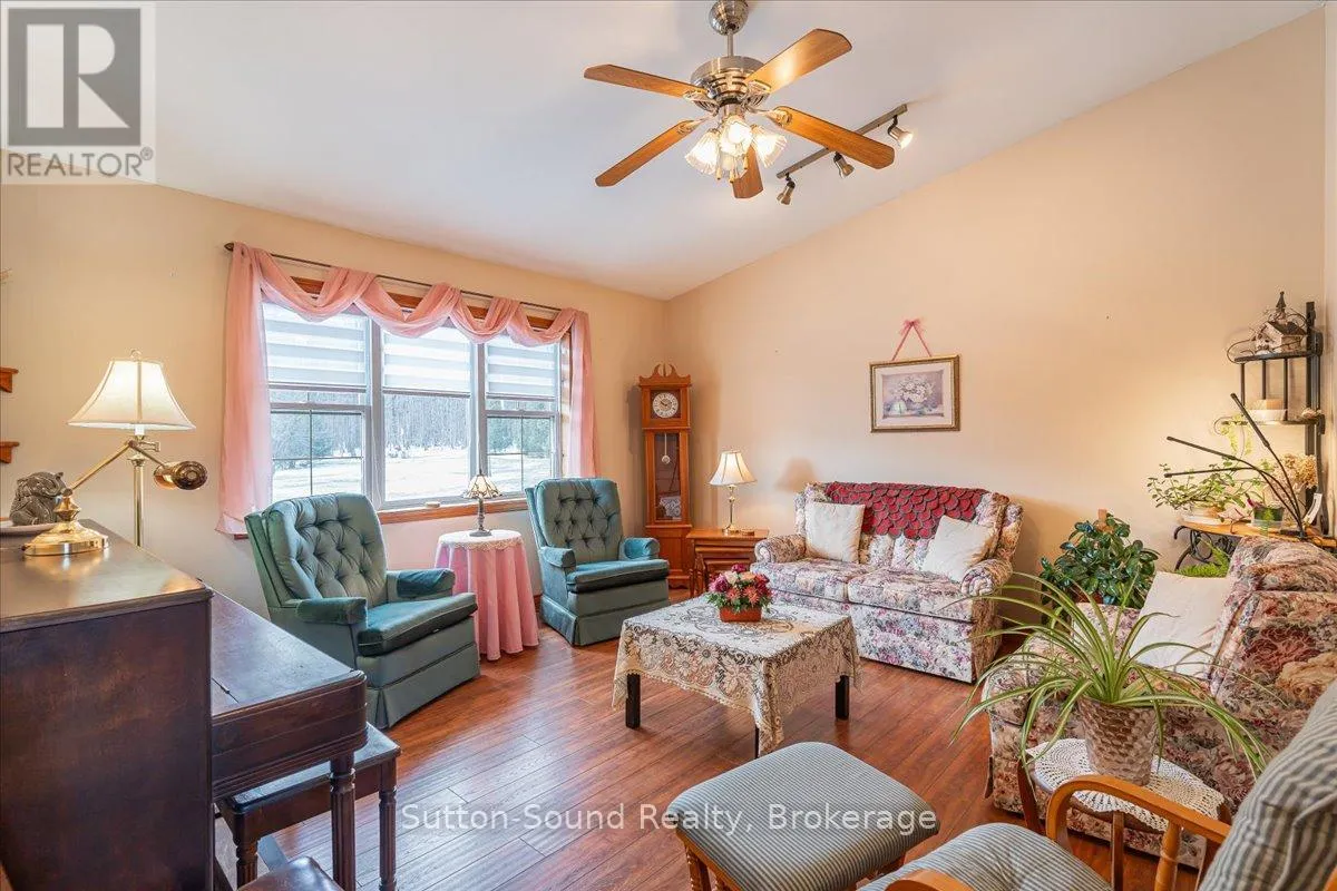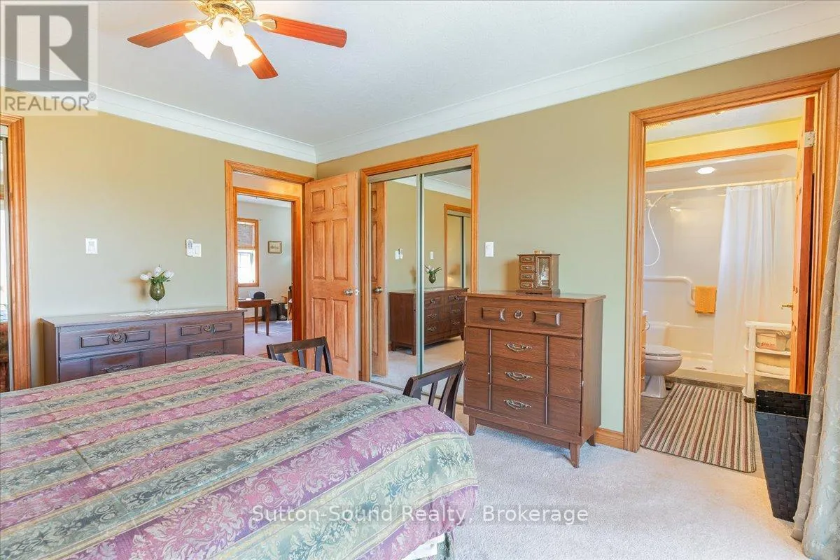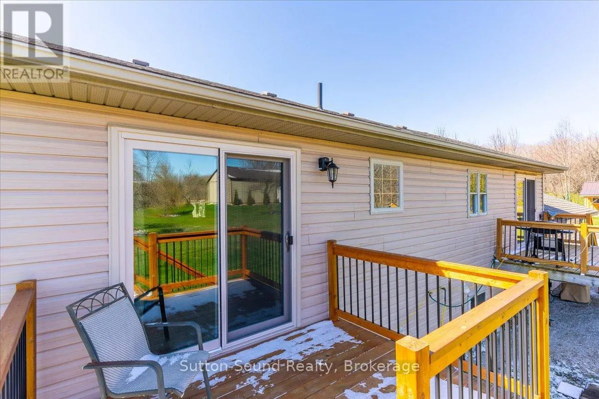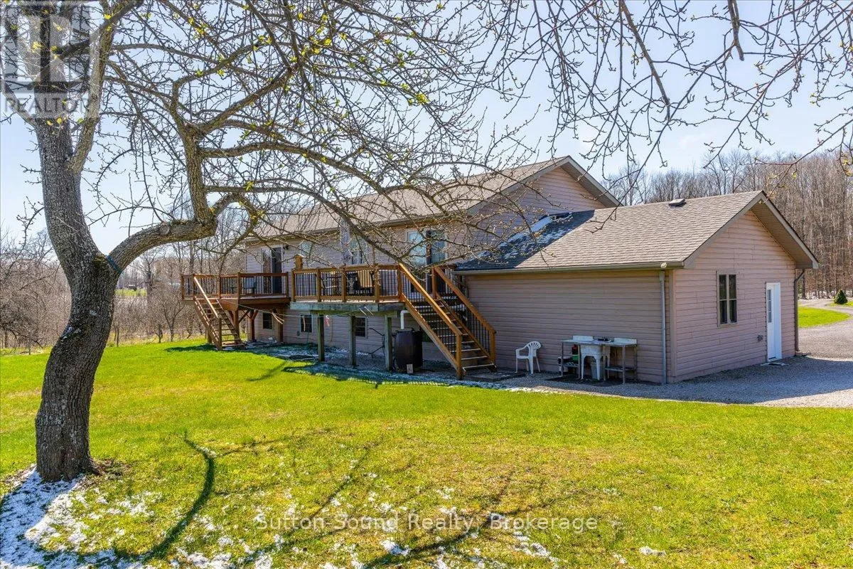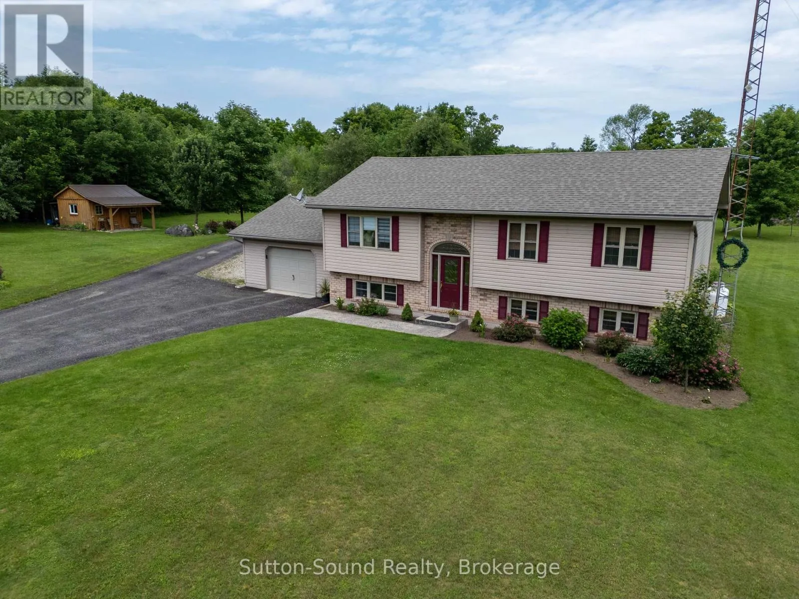Cross Streets: Zion Church Road. ** Directions: Follow highway 6 North to Elm St on Rt. Turn onto Elm St which turns into Con 21. Continue to fire #442513 on Lt. Welcome to your private country escape! Perfectly positioned between Wiarton and Owen Sound, this stunning 4-bedroom, 3-bathroom home on 1.97 acres offers the ideal blend of peaceful rural living and modern comforts. The gently rolling lawn, framed by mature trees, creates a picture-perfect backdrop for everyday life. Built in 2002 and meticulously maintained, this 1,700 sq. ft. home boasts an open-concept main floor designed for easy living and entertaining. The kitchen flows seamlessly into the dining and living areas, with patio doors leading to a spacious back deck perfect for morning coffee or summer BBQs with serene countryside views. The primary suite features a 3-piece ensuite, his-and-hers closets, and private deck access for ultimate relaxation. Two more bedrooms and a full bathroom complete this level.The fully finished lower level offers incredible versatility complete with a cozy family room, full bathroom, laundry room, and two large bonus rooms ideal for extra bedrooms, an office, or hobby space. Direct access to the attached garage ensures convenience in every season. For those who need room for projects or storage, you'll love the 36 x 60 detached shop (built in 2018) with 900 sq. ft. of heated space, plus a 12 x 14 garden shed for tools and equipment.Recent upgrades include a new furnace (2020), air conditioning (2024), upgraded insulation, and an energy-efficient ICF foundation for year-round comfort and lower utility costs.Whether you're seeking a peaceful retreat, a family home, or a property with space for your hobbies, this home delivers it all! Privacy, space, and modern amenities in a tranquil, natural setting. (id:27476)