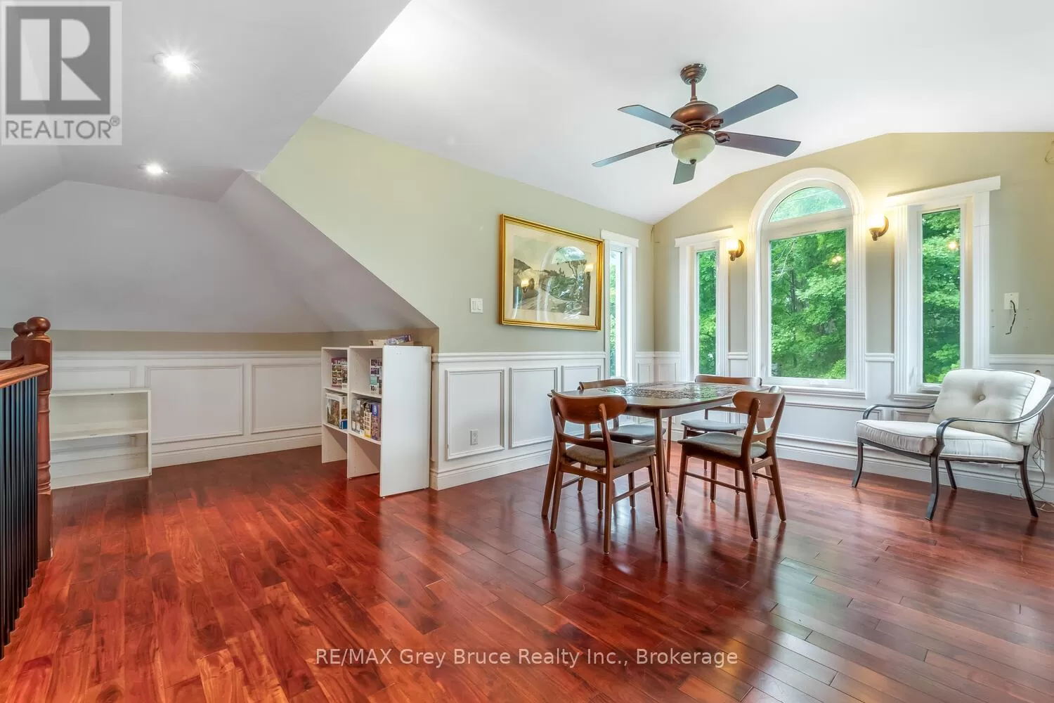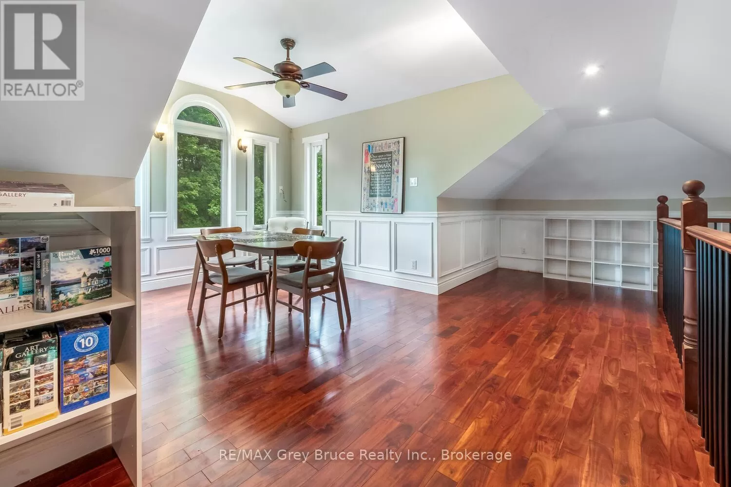 Cross Streets: Hwy 6 and Derby Keppel Townline. ** Directions: Hwy 6 to Derby Keppel Townline to Drive-In Cres. Charming Bungaloft on 3.1 Acres Country Living Minutes from Owen Sound. Welcome to your ideal blend of country charm and city convenience! This spacious bungaloft is nestled on 3.1 private, picturesque acres in the sought-after Springmount area, just minutes from the amenities, schools, shops, and healthcare of Owen Sound. Step inside to discover a warm and inviting main floor plan with in-floor heating. Featuring a butler's pantry with laundry, and primary bedroom with ensuite privileges, offering perfect easy, single-level living. The loft space adds flexibility, ideal for a home office, guest room, or creative retreat. The finished basement offers additional living space, complete with a large bedroom and full bathroom, making it perfect for extended family, teens, or visitors. Outside, enjoy the convenience of a detached garage for vehicles and toys, plus a large Quonset hut ideal for storage, workshop, or hobby use. The expansive lot offers room to roam, garden, or simply relax and take in the peaceful countryside. Whether you're looking for a peaceful retreat or a place to grow, this property offers the best of both worlds serene rural living with all the conveniences of town just minutes away. Don't miss this unique opportunity to own a slice of country paradise so close to Owen Sound! Open The Door To Better Living Today! (id:27476)