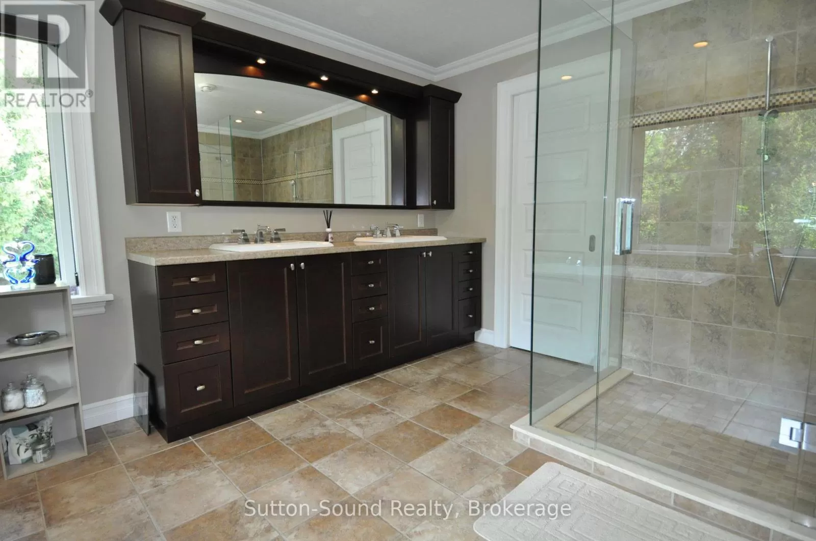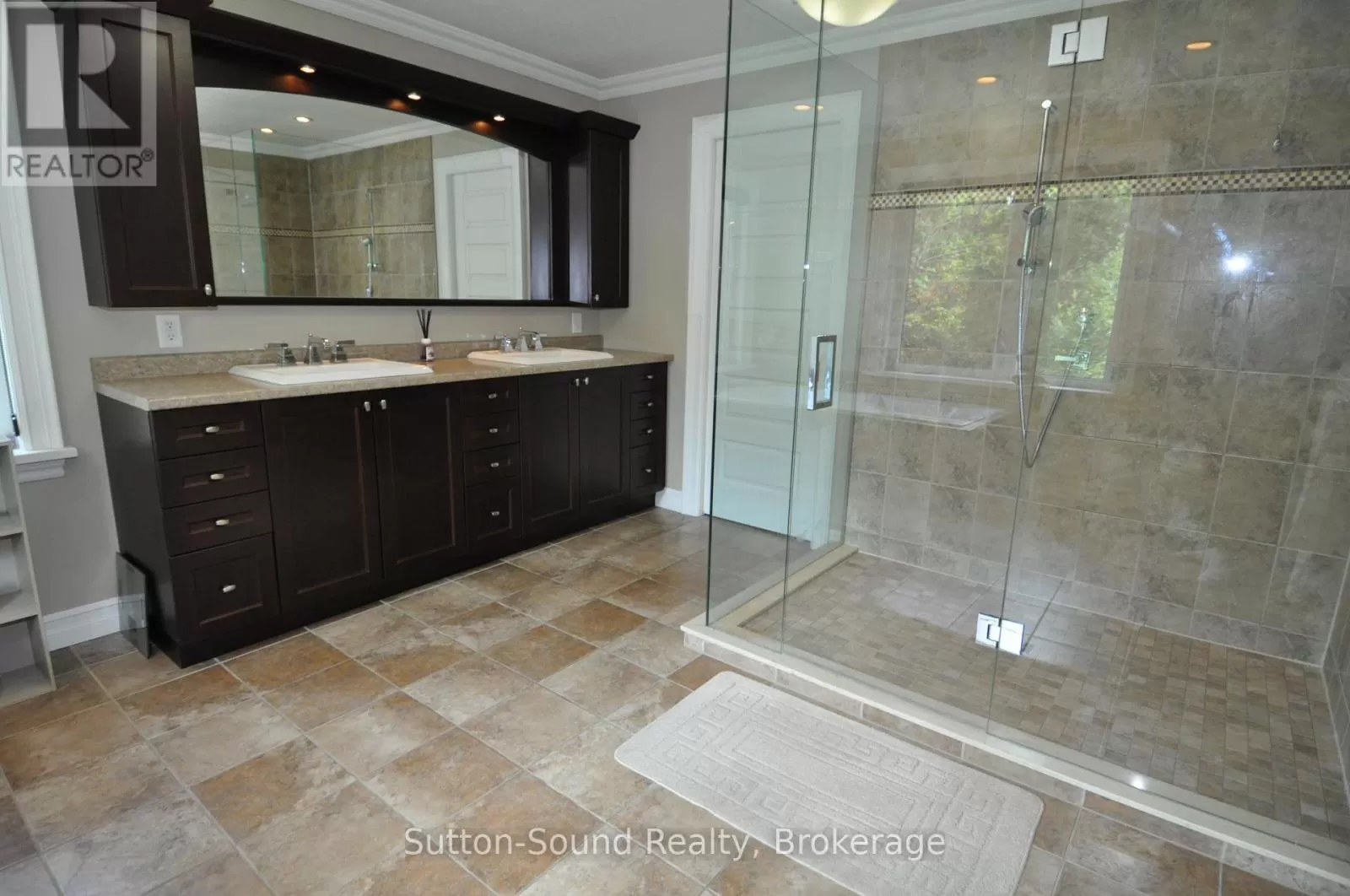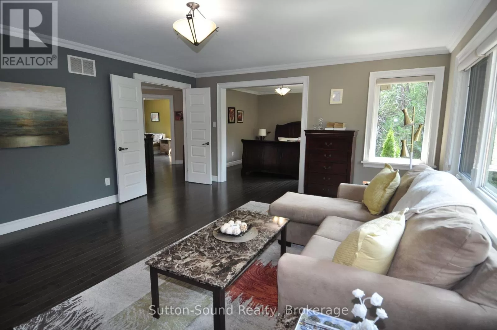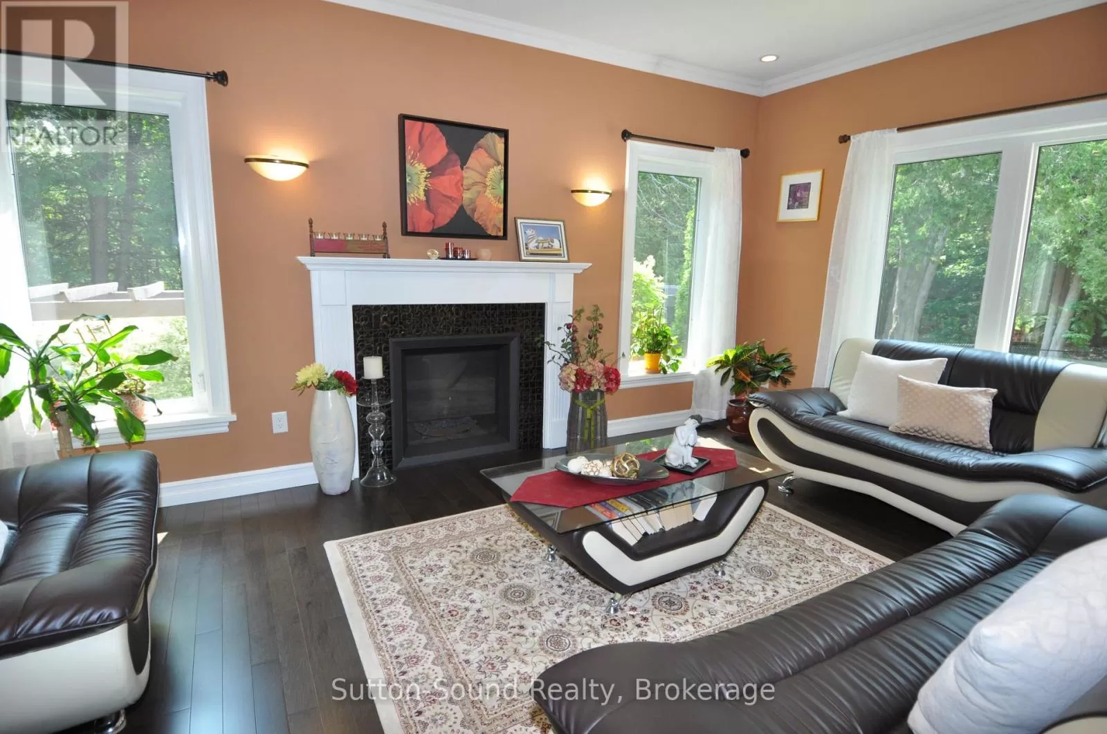 Cross Streets: Indian Acres Road. ** Directions: From Owen Sound head north on Grey Road 1 property on left. Welcome to Georgian Bluffs! This stunning custom-built home offers the perfect blend of luxury, comfort, and privacy, with over 5,000 square feet of meticulously maintained finished living space. Set back from the road on a professionally landscaped 2-acre lot with mature gardens and trees, this bright and cheery home is ideal for family living and entertaining alike. The open-concept design features a chef's kitchen, five spacious bedrooms, and four bathrooms. The massive primary suite includes a private lounge area, a large walk-in closet, an ensuite bath, and picturesque forest views. Enjoy year-round comfort with energy-efficient in-floor radiant heating throughout the home and garage, along with multiple gas fireplaces. The 3-car garage leads into a dedicated mudroom and bathroom, perfect for busy households. Designed with modern living in mind, this home comes equipped with a gas stove, fridge, dishwasher, ice maker, air purification system, HRV, on-demand hot water, gas air conditioning, a fully automated backup generator, and a Control4 central audio/entertainment system. There's also a gas connection ready for your patio BBQ, making outdoor entertaining a breeze. Outside, you'll find multiple entertainment areas, plenty of parking, and even a charming kids' playhouse or she-shed. Hardwood floors and ceramic tile run throughout, complemented by an abundance of natural light. Located between two of the areas best golf courses Cobble Beach and Legacy Ridge and just minutes from Georgian Bay, the marina, Owen Sound, walking trails, and recreational amenities like tennis courts and a boat launch, this home offers the best of both worlds: tranquil country living with the convenience of city services including natural gas, municipal water, cable, and high-speed internet. This is more than just a home, it's a lifestyle. Dont miss your opportunity to own a truly impressive property in one of Grey Countys most desirable areas. (id:27476)