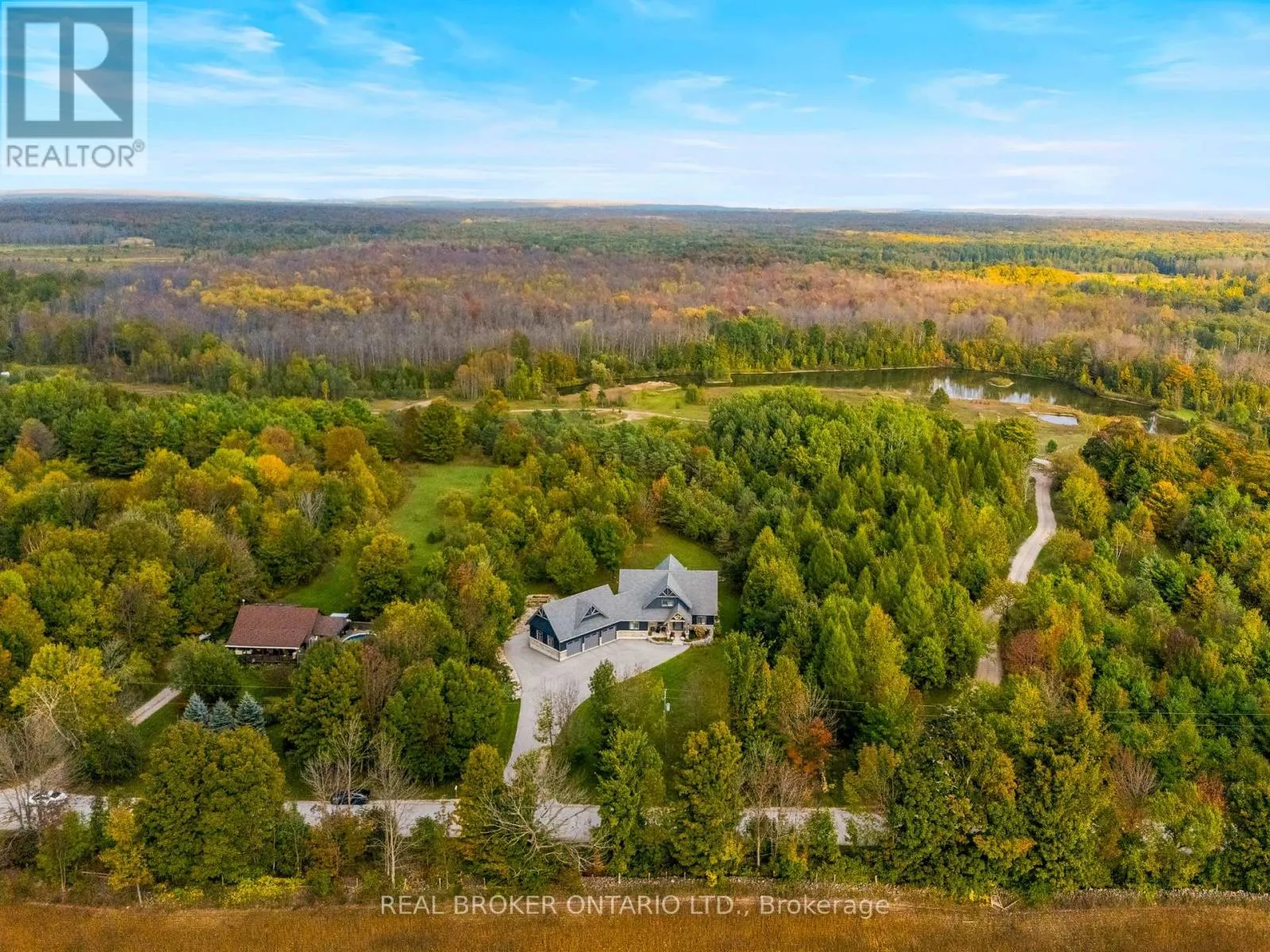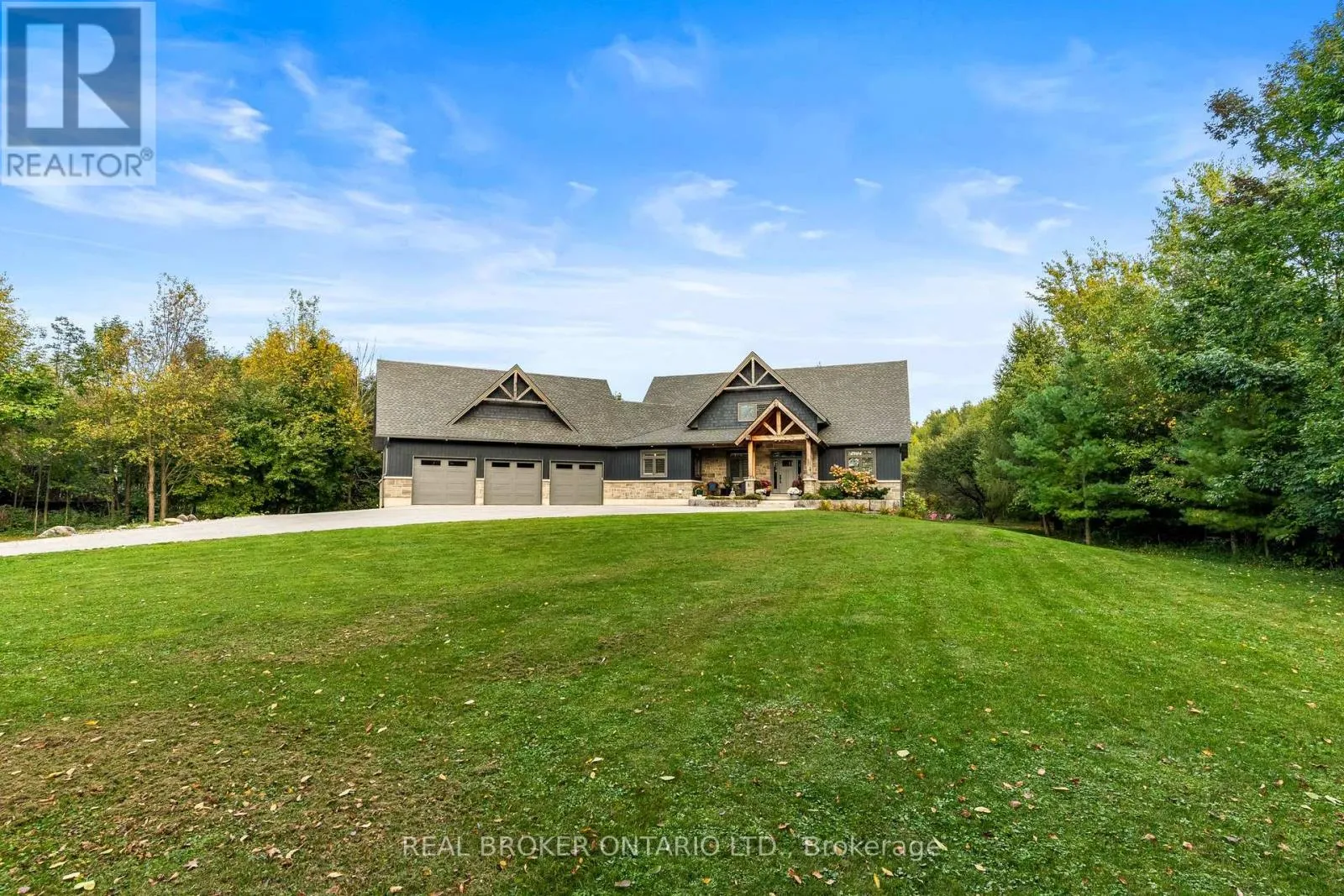 Cross Streets: Grey Rd 17, Concession Rd 21. ** Directions: Wiarton - Head south on Berford St/ON-6 S toward George St Turn left onto Elm St Continue onto Concession Rd 21 Turn right onto Zion Church Rd Destination will be on the left. An extraordinary lifestyle opportunity awaits in a sought after neighbourhood in Georgian bluffs. Refined design and natural beauty come together in perfect harmony. Crafted in 2020, this custom timber frame estate rests on nearly 3 acres of secluded, forested grounds and showcases over 4,600 sq. ft. of thoughtfully curated living space. A true sanctuary, this private residence offers an inspired blend of timeless elegance and modern luxury, perfect for those who cherish space, serenity, and a deep connection to nature.Step inside to find soaring 24 foot height cathedral ceilings, a grand stone fireplace, and expansive windows that invite the forest views indoors. The open concept layout flows into a chefs gourmet kitchen featuring a 9x5 quartz island, premium appliances, and a large walk in pantry, perfect for hosting, or enjoying calm mornings in a peaceful setting.The main floor offers a private primary suite with a spa like ensuite and walk in closet. Upstairs, two additional bedrooms, a full bath, and a quiet loft create space for family or guests. The finished lower level includes two more bedrooms, a large rec room with a bar, and a private access to the garage, ideal for extended family, a wellness studio, or private guest quarters.Over $135,000 in thoughtful upgrades bring confidence and ease, including a Generac whole home generator, new asphalt driveway, professional landscaping with armour stone, and a full security system.The heated and insulated triple garage features high ceilings and oversized doors, perfect for your vehicles, storage needs, and space to keep your ATVs, boats, and recreational toys organized and secure.If youre looking for a luxury home with privacy, space, and connection to nature, yet just minutes from town, this one stands apart. Call your REALTOR today to schedule a private showing! (id:27476)