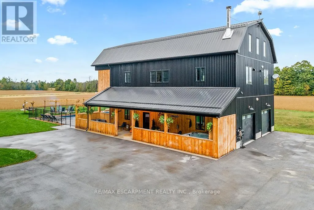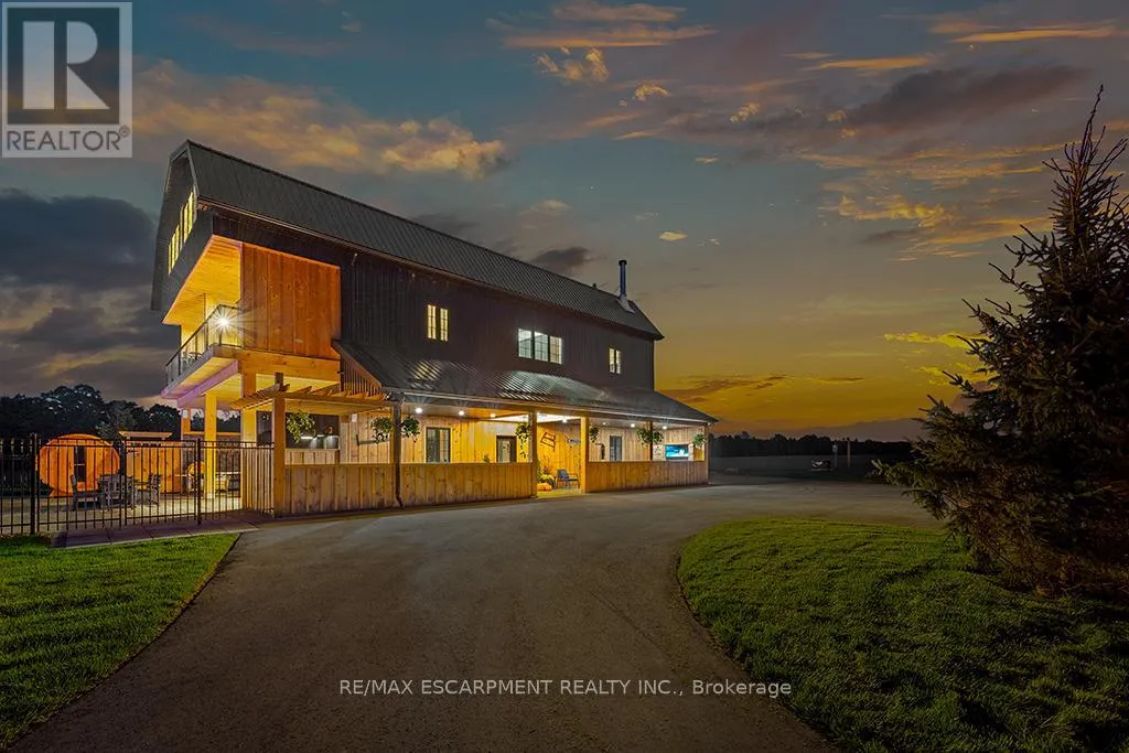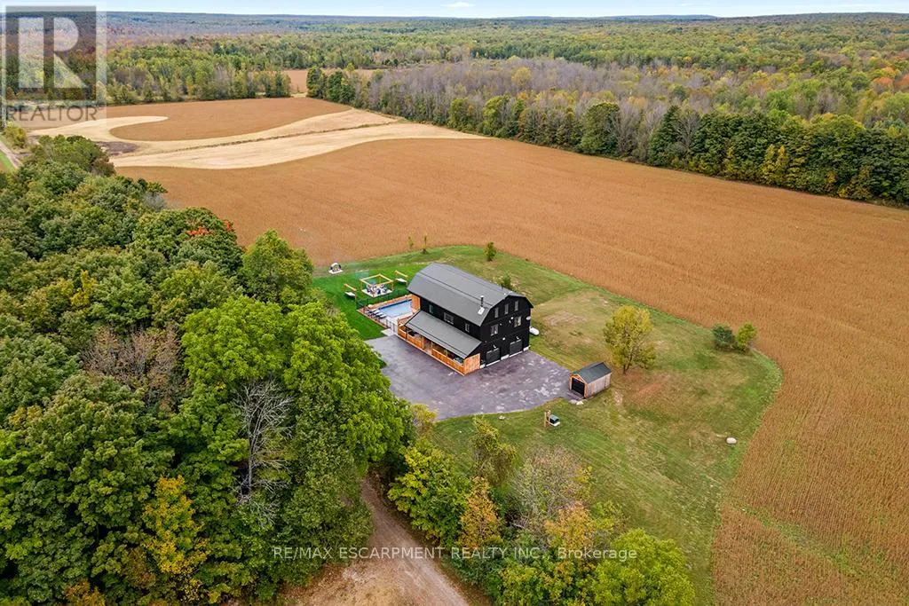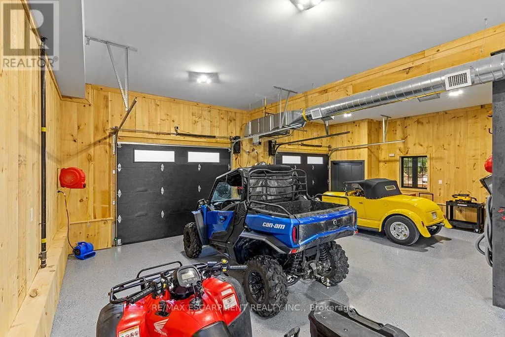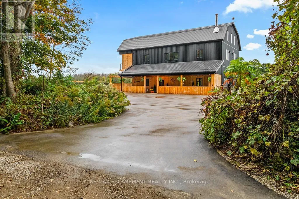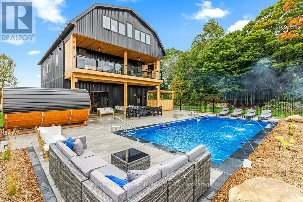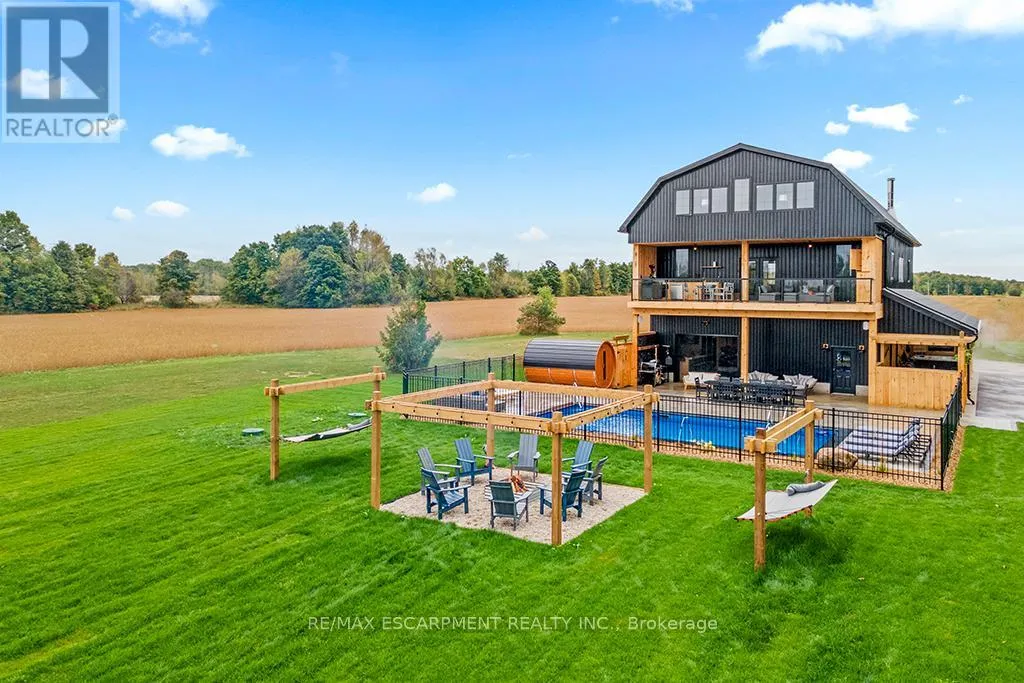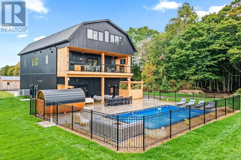 Zion Church Rd and Grey 17 Welcome to 402075 Grey Road 17a spectacular 231-acre estate in Georgian Bluffs where luxury meets country living. This custom-built barndominium blends rustic charm with modern comfort, offering over 4,000 sq ft of finished living space across 4 bedrooms and 4 bathrooms. Designed for accessibility, the home includes a full-size elevator, making all levels easily reachable for everyone. Soaring cathedral ceilings, rich wood finishes, and a stunning wood-burning fireplace set the tone for cozy, elevated living. The open-concept layout is ideal for hosting, with a chef's kitchen and expansive great room flooded with natural light. Step outside to a true resort-style retreat: a sparkling swimming pool, hot tub, sauna, outdoor shower, and multiple decks where you can unwind and take in the surrounding forest, fields, and spring-fed pond. A detached garage/workshop and extensive trail system make this a dream for nature lovers, hobby farmers, or those seeking a private family compound. Located minutes to Wiarton, Owen Sound, and the shores of Georgian Bay - this is the ultimate rural luxury lifestyle. (id:27476)