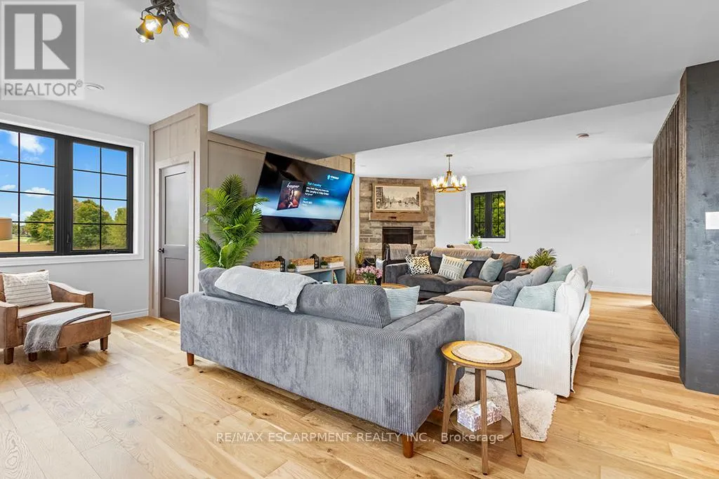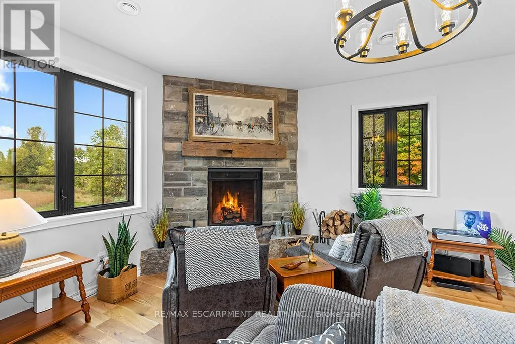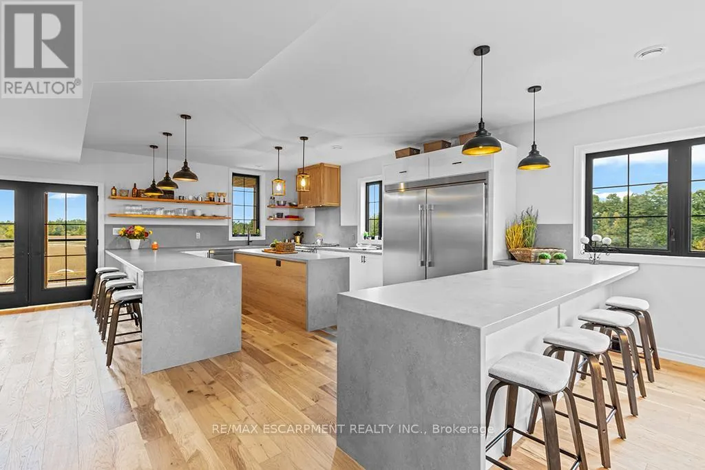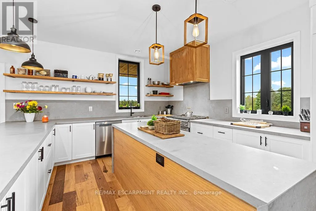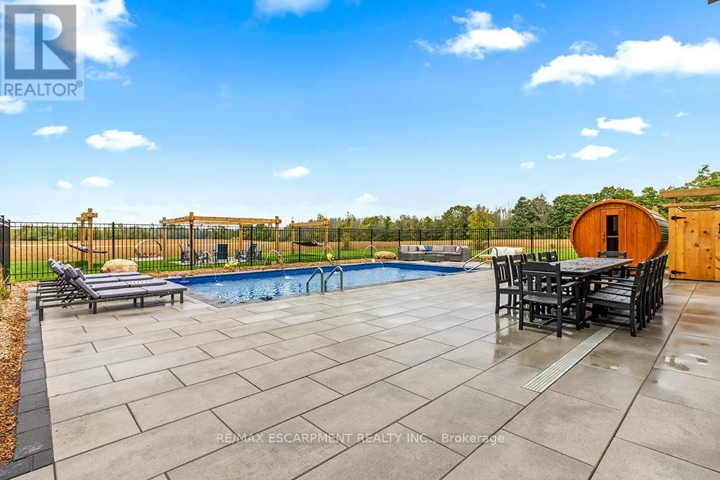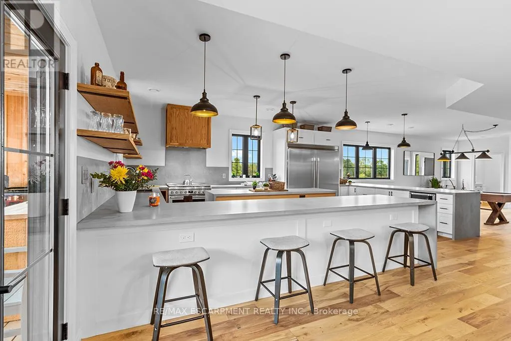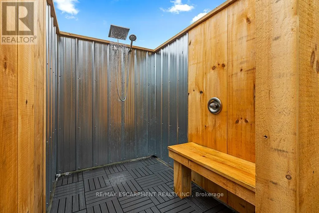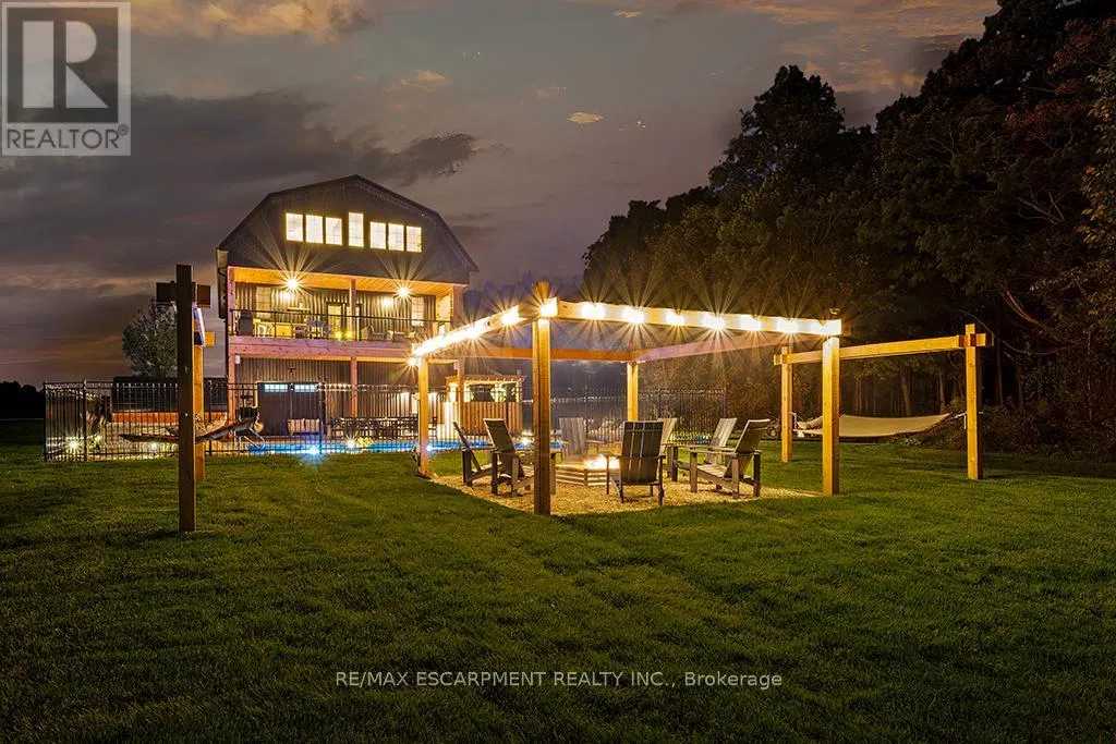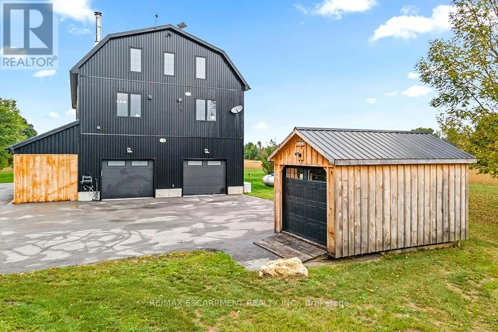 Zion Church Rd and Grey 17 Welcome to 402075 Grey Road 17a spectacular 231-acre estate in Georgian Bluffs where luxury meets country living. This custom-built barndominium blends rustic charm with modern comfort, offering over 4,000 sq ft of finished living space across 4 bedrooms and 4 bathrooms. Designed for accessibility, the home includes a full-size elevator, making all levels easily reachable for everyone. Soaring cathedral ceilings, rich wood finishes, and a stunning wood-burning fireplace set the tone for cozy, elevated living. The open-concept layout is ideal for hosting, with a chef's kitchen and expansive great room flooded with natural light. Step outside to a true resort-style retreat: a sparkling swimming pool, hot tub, sauna, outdoor shower, and multiple decks where you can unwind and take in the surrounding forest, fields, and spring-fed pond. A detached garage/workshop and extensive trail system make this a dream for nature lovers, hobby farmers, or those seeking a private family compound. Located minutes to Wiarton, Owen Sound, and the shores of Georgian Bay - this is the ultimate rural luxury lifestyle. (id:27476)