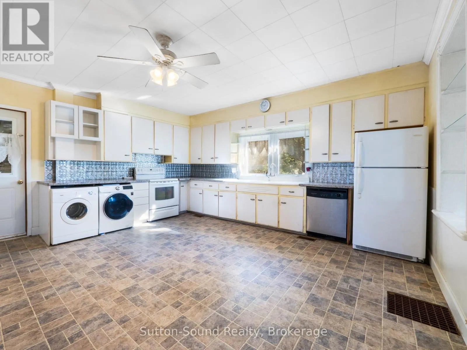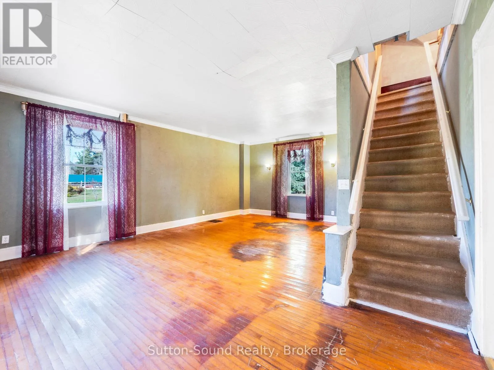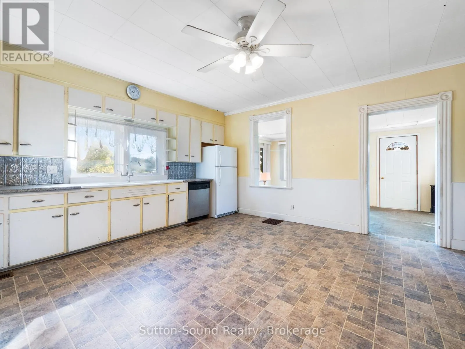 Cross Streets: Concession 17. ** Directions: From Hepwoth, North on Highway 6, follow to property on the right. 19733 Highway 6, Georgian Bluffs. Nestled on nearly 2 acres surrounded by beautiful mature trees, this 1.5-story home offers plenty of potential and country charm. Featuring 3 bedrooms and 2 baths, a large eat in kitchen as well as main floor laundry, this property provides a spacious setting for those looking to create their dream home. The large lot offers privacy and room to enjoy nature or room for a garage, while still being conveniently located close to Wiarton and just a short drive to Sauble Beach and Owen Sound. With a bit of love and care, this home could be transformed into a peaceful retreat in the heart of Grey-Bruce. (id:27476)