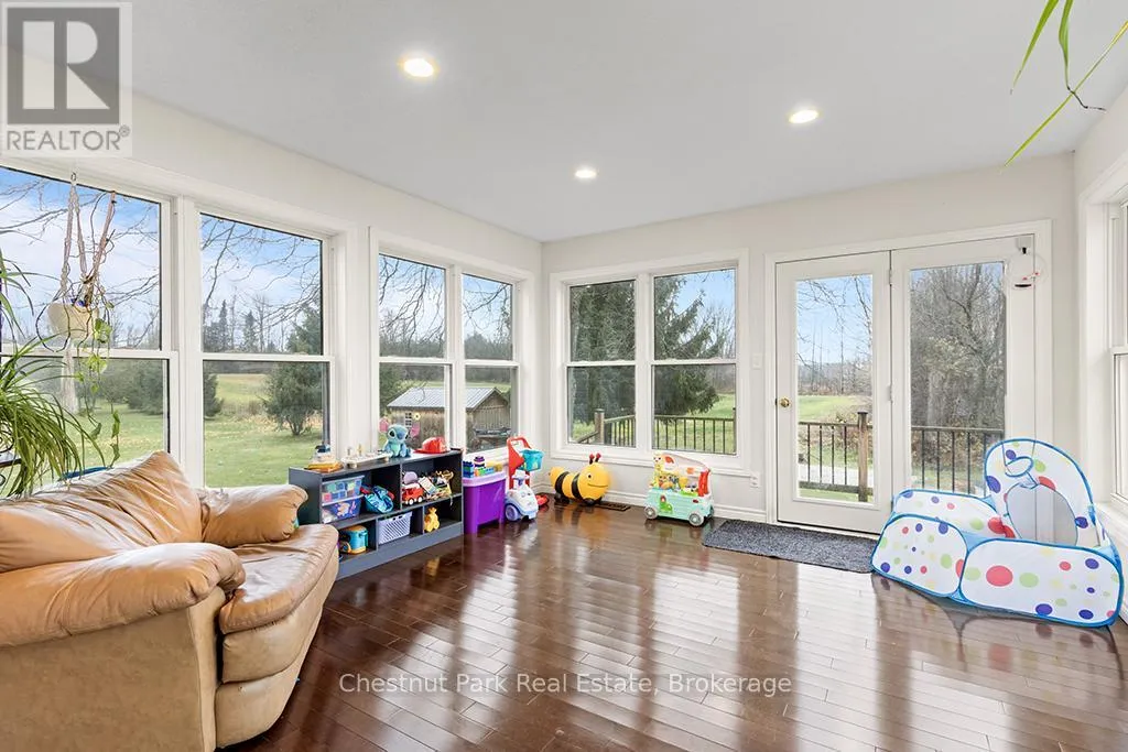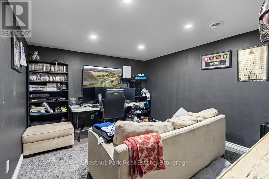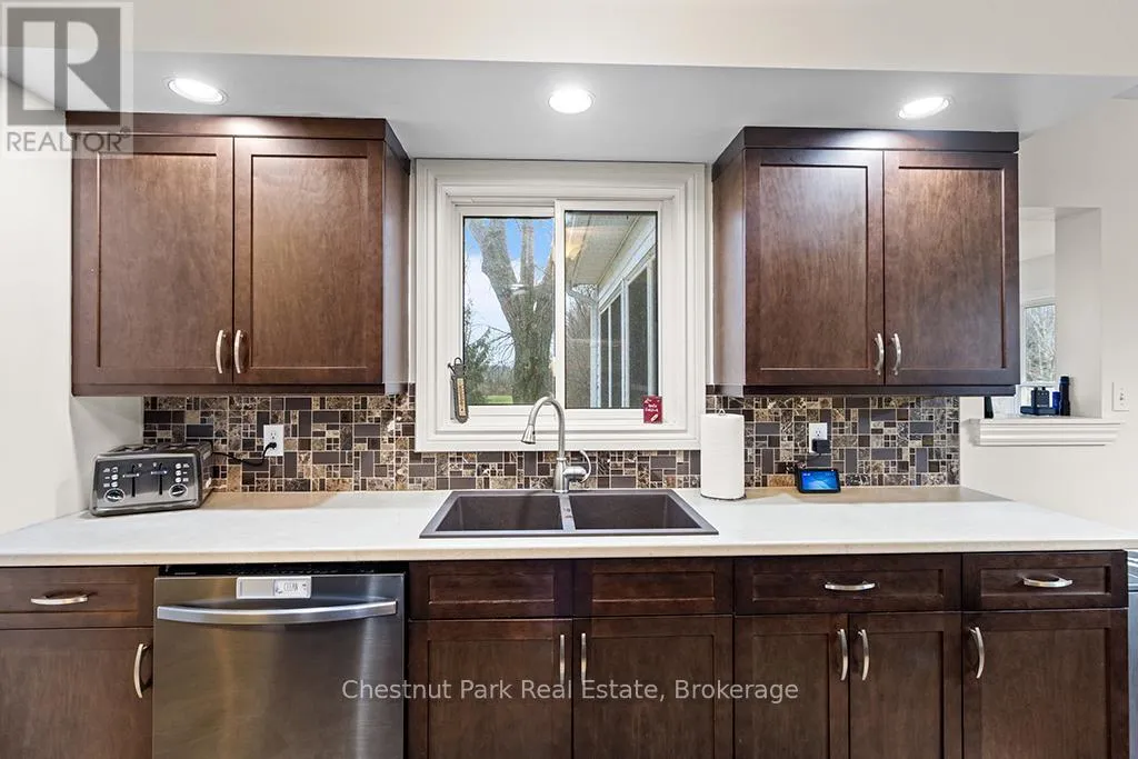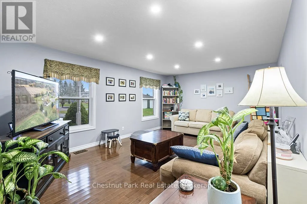 Cross Streets: Grey Rd 5. ** Directions: Grey Road 5 west of Owen Sound, to Kilsyth, then turn right onto Mary Ave, just west of Kilsyth. Welcome to 115 Mary Ave in Kilsyth; the perfect quiet cul-de-sac just outside of Owen Sound. Situated on a pie shaped lot is this wonderful 4 bedroom, 2 bath home with attached garage and finished basement. The spacious main floor has 3 bedrooms, 4pc bath, large living room, kitchen and dining area, beautiful bright sunroom overlooking the backyard, hardwood flooring, and access to the attached double garage. The finished, carpeted lower level has a large cozy family room with gas fireplace, large 4th bedroom, 3pc bath, laundry/utility room and a bonus games room with an electric fireplace. 22' x 19' double attached garage, insulated and heated with a gas fireplace and access to backyard. Great pie shaped lot with new storage shed, and raised veggie garden boxes. This home has so much to offer! (id:27476)
