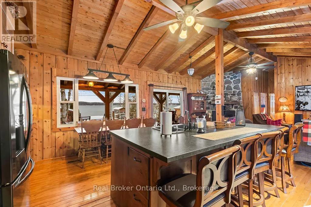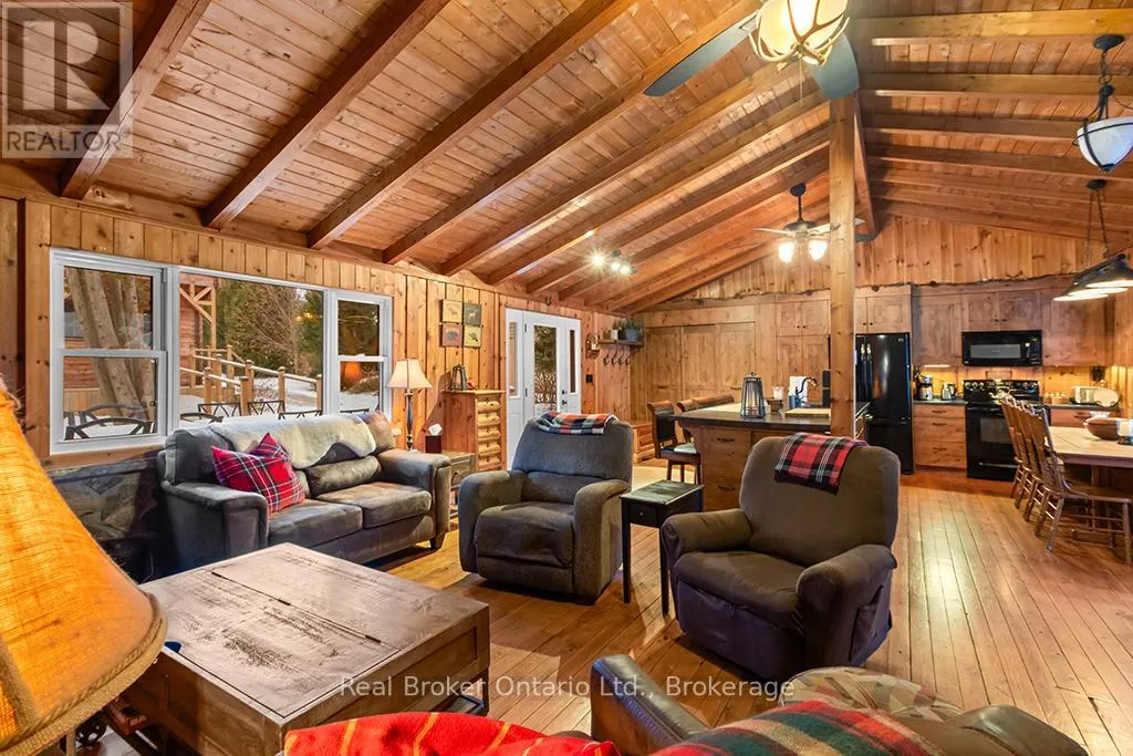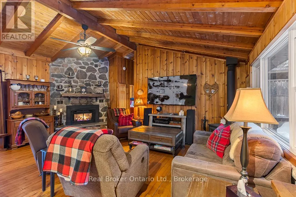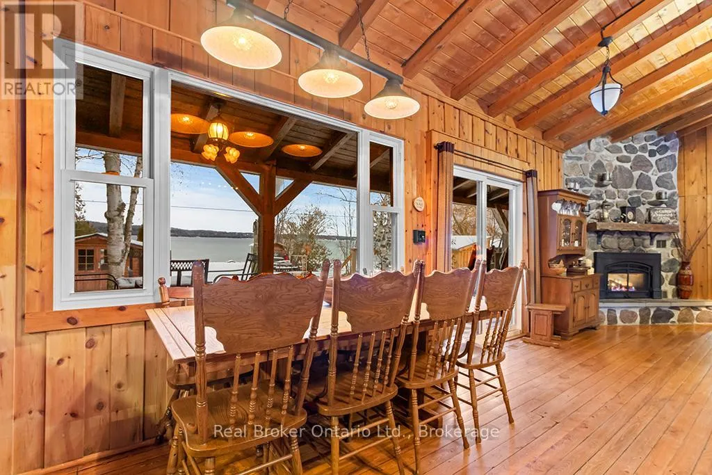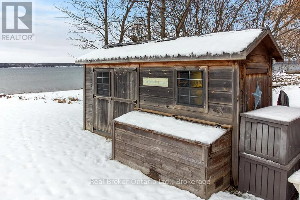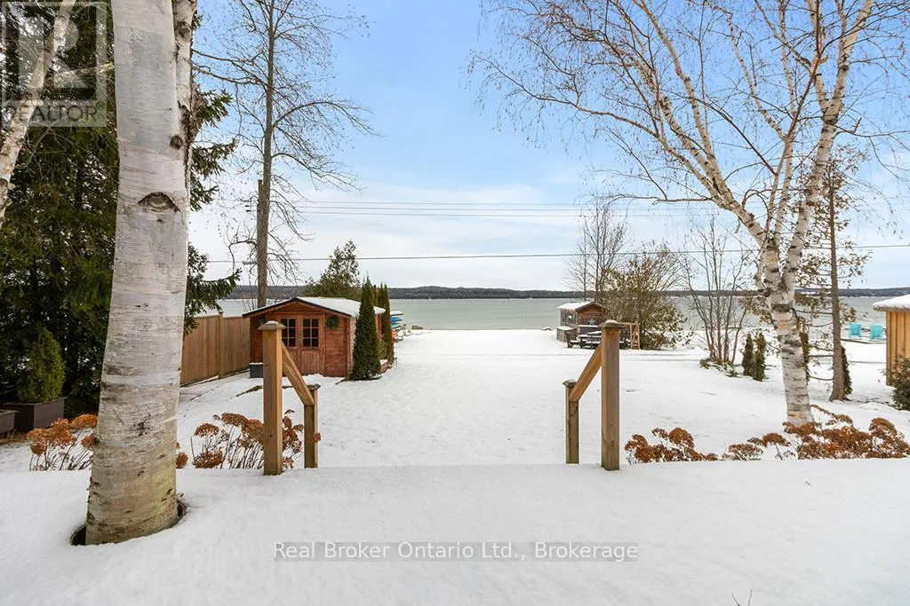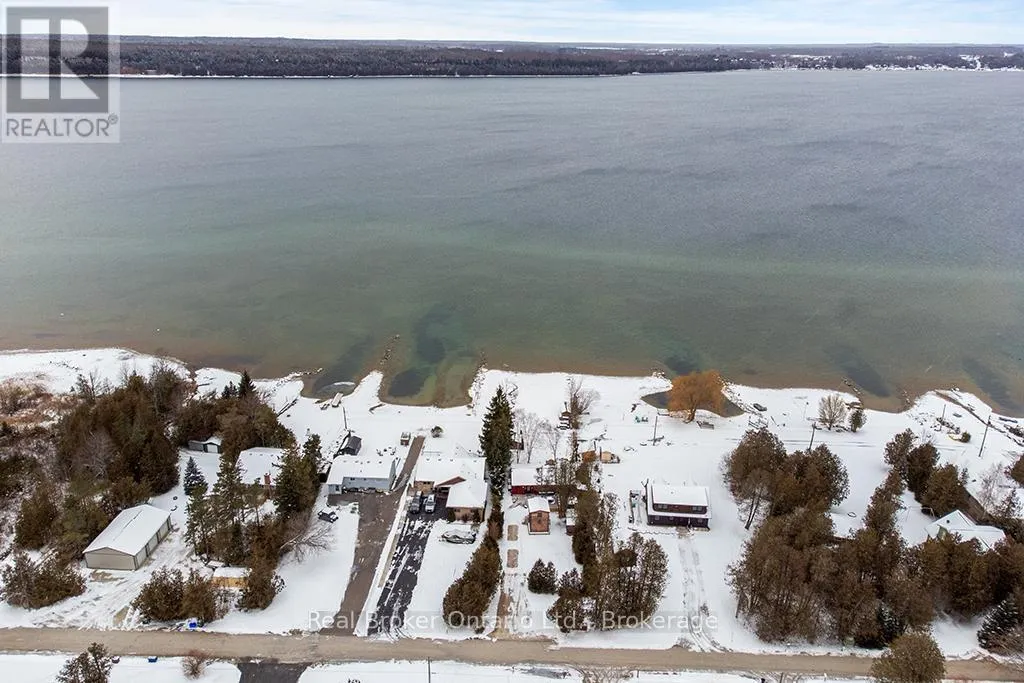 Lake Rd & Wilson Dr Discover the ultimate four-season waterfront retreat at 111 Wilson Drive, an immaculately maintained and fully renovated property set on the pristine shoreline of Colpoys Bay in Georgian Bluffs. Nestled on a private, flat, tree-lined 70' x 204' lot with breathtaking views of the Niagara Escarpment, this turn-key property offers a sandy walk-out beach, a handcrafted docking system accommodating a 26' boat, multiple watercraft racks, a beach firepit, and a fully equipped Beach House-creating an unmatched setting for swimming, paddling, boating, and family fun. The beautifully updated 1,000 sq ft main home showcases cedar and pine construction, high ceilings, refinished original wood floors, a stunning stone gas fireplace, a high-functioning wood-burning stove, and an open-concept kitchen with custom cabinetry, premium appliances, and a 9'4" island. Thoughtfully upgraded throughout, the home features new windows and doors, insulated steel roofing, municipal water with RO system, hot-water-on-demand, a 2018 septic system, updated electrical and plumbing, fully refinished bathroom, extensive insulation, tile drainage, and a Napoleon natural gas furnace for year-round comfort. Expansive outdoor decking, an 8'x8' deluxe outdoor shower, a designated outdoor cooking deck, an 8-person hot tub, and multiple outbuildings-including a Cabin, a two-level Fort, a Utility Cabin, and the Beach House-enhance the lifestyle experience. Located just minutes from Wiarton, close to golf, trails, beaches, and marinas, this rare offering combines peaceful seclusion with exceptional recreation. A truly turn-key waterfront paradise where memories are made and cherished for generations. (id:27476)