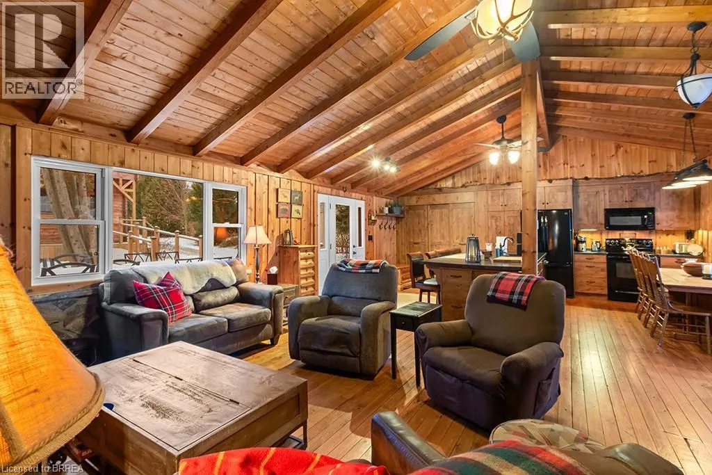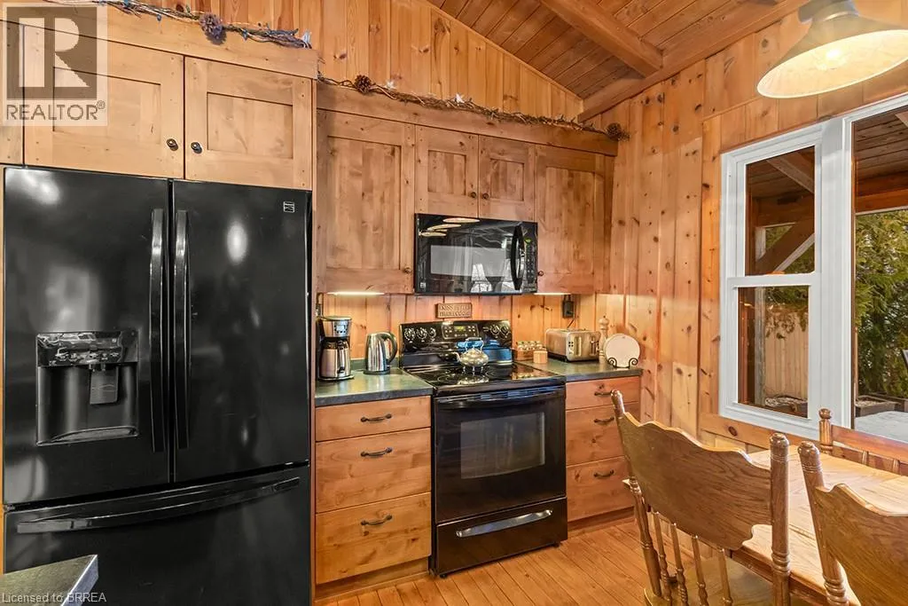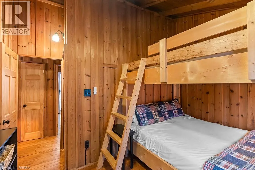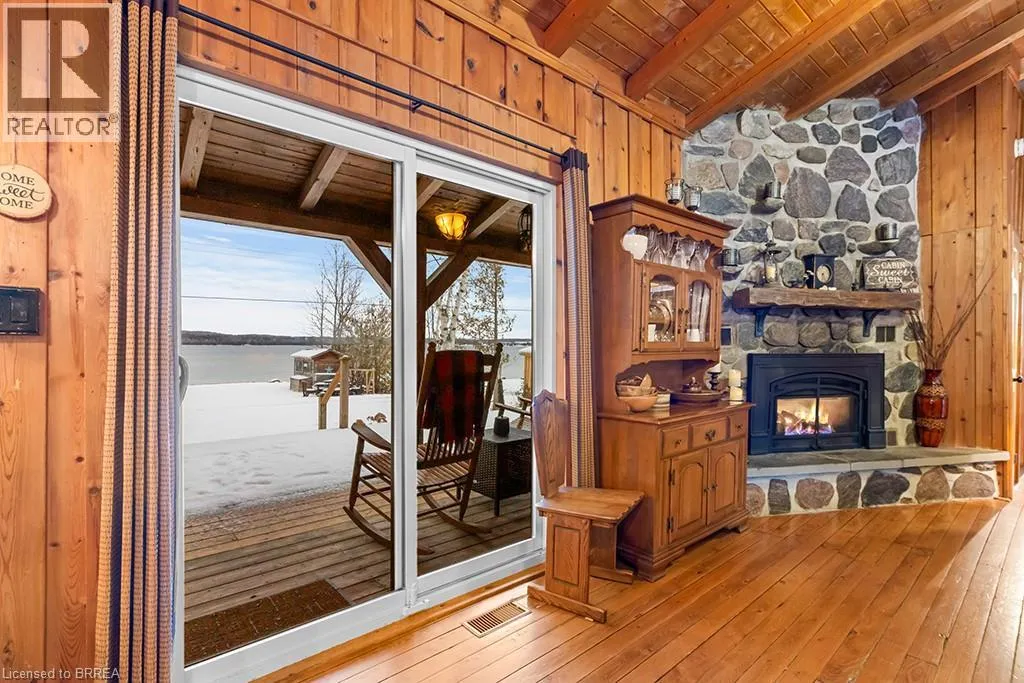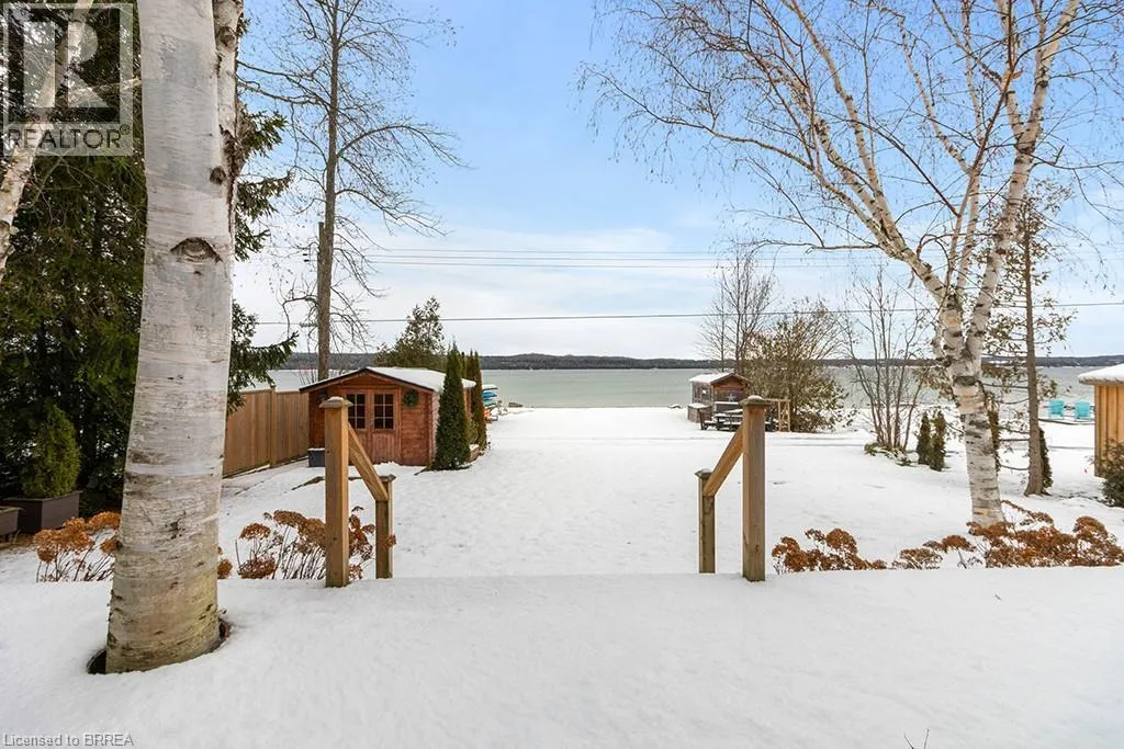 Lake Rd & Wilson Dr Discover the ultimate four-season waterfront retreat at 111 Wilson Drive, an immaculately maintained and fully renovated property set on the pristine shoreline of Colpoys Bay in Georgian Bluffs. Nestled on a private, flat, tree-lined 70' x 204' lot with breathtaking views of the Niagara Escarpment, this turn-key property offers a sandy walk-out beach, a handcrafted docking system accommodating a 26' boat, multiple watercraft racks, a beach firepit, and a fully equipped Beach House-creating an unmatched setting for swimming, paddling, boating, and family fun. The beautifully updated 1,000 sq ft main home showcases cedar and pine construction, high ceilings, refinished original wood floors, a stunning stone gas fireplace, a high-functioning wood-burning stove, and an open-concept kitchen with custom cabinetry, premium appliances, and a 9'4 island. Thoughtfully upgraded throughout, the home features new windows and doors, insulated steel roofing, municipal water with RO system, hot-water-on-demand, a 2018 septic system, updated electrical and plumbing, fully refinished bathroom, extensive insulation, tile drainage, and a Napoleon natural gas furnace for year-round comfort. Expansive outdoor decking, an 8'x8' deluxe outdoor shower, a designated outdoor cooking deck, an 8-person hot tub, and multiple outbuildings-including a Cabin, a two-level Fort, a Utility Cabin, and the Beach House-enhance the lifestyle experience. Located just minutes from Wiarton, close to golf, trails, beaches, and marinas, this rare offering combines peaceful seclusion with exceptional recreation. A truly turn-key waterfront paradise where memories are made and cherished for generations. (id:27476)